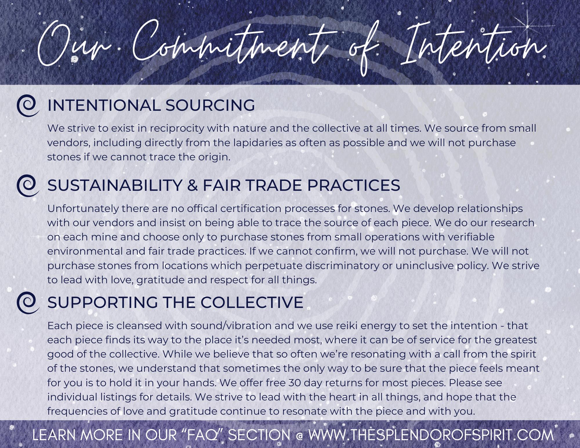 - *We work hard to ensure all pieces are sourced ethically, to the best of our ability. Please see our βEthical Stone Information,β Part I & II in our βFAQβ section for information on our sourcing practices.