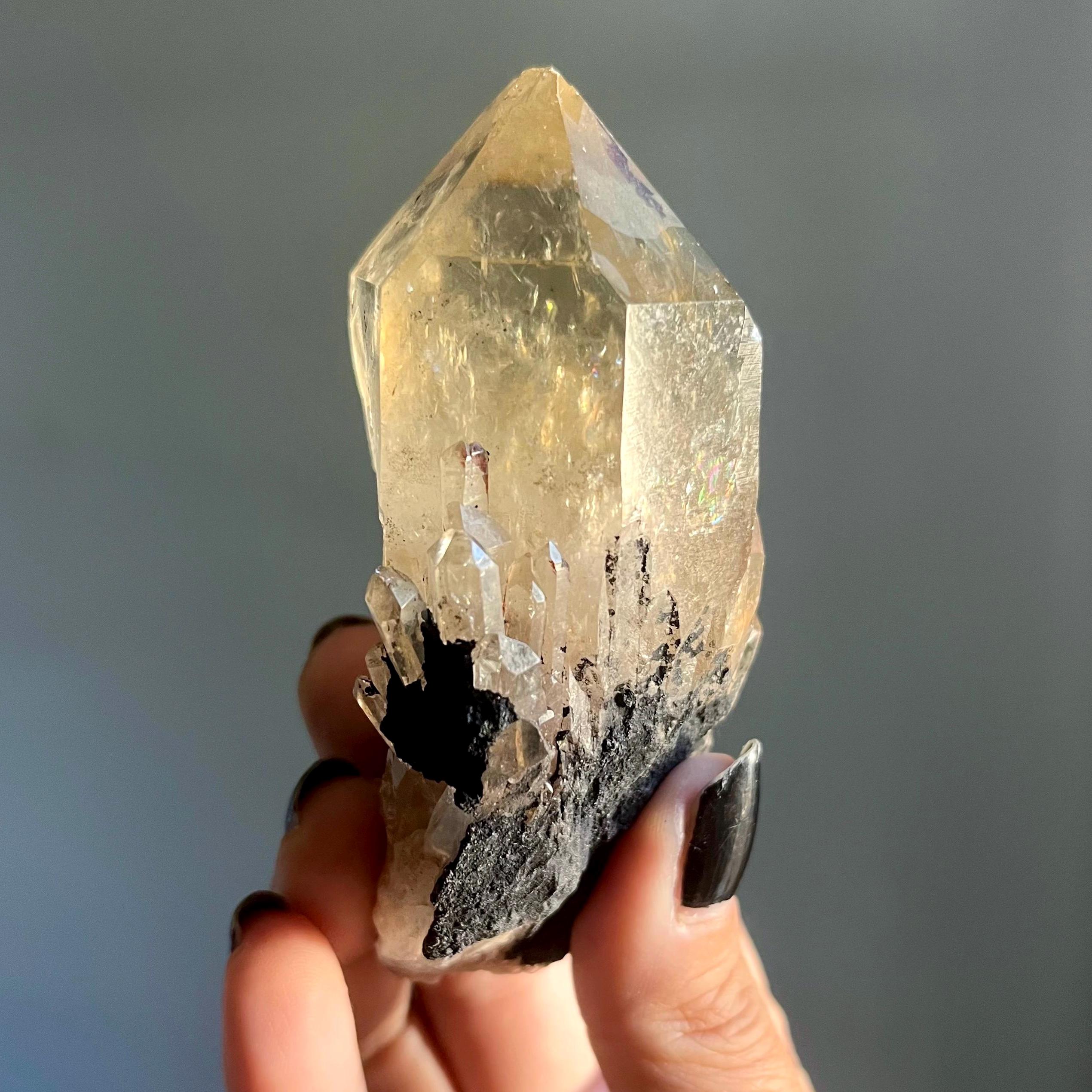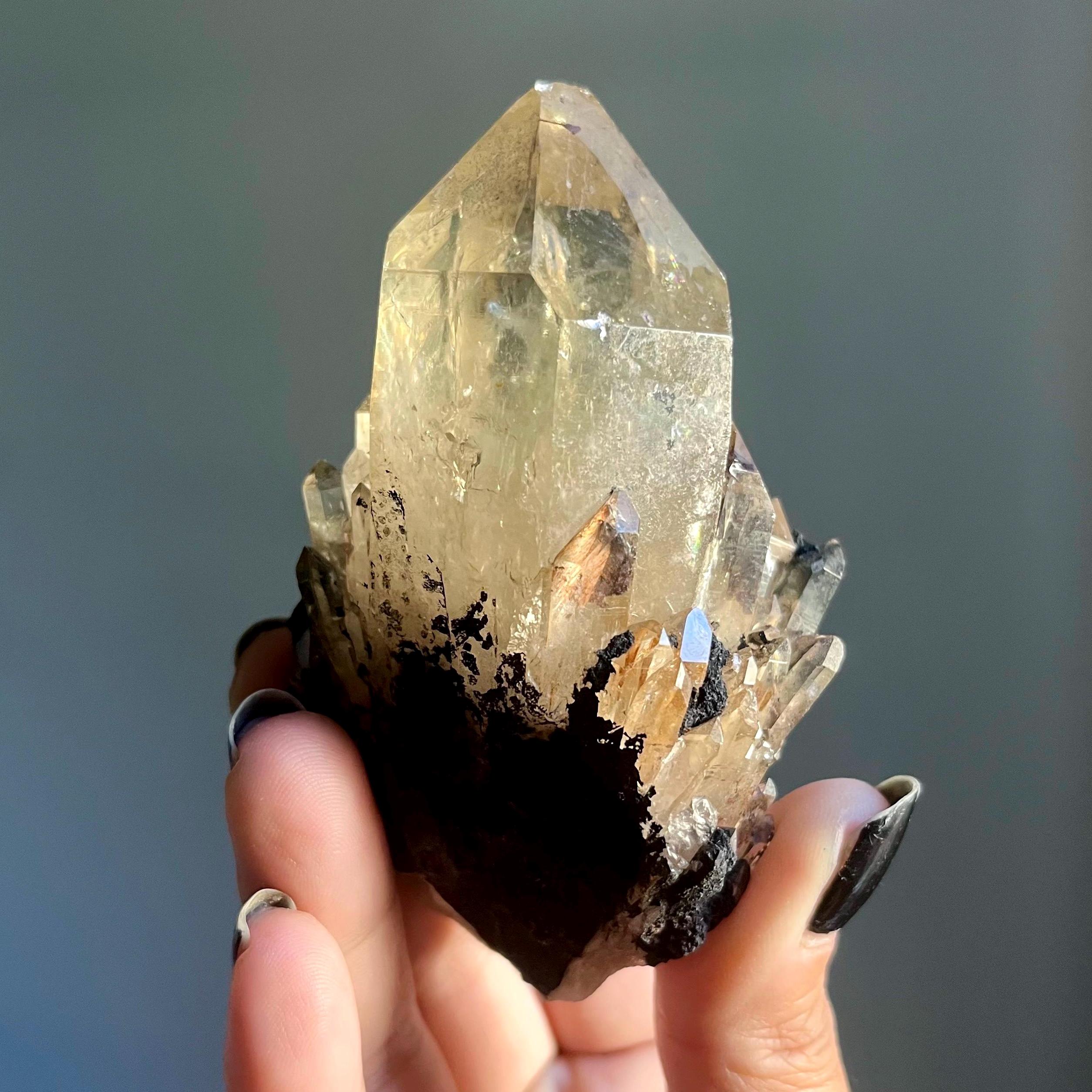 This wild stone embodies the alchemy of light and shadow, the abundance of rich, golden terminations radiating energy out in all directions.