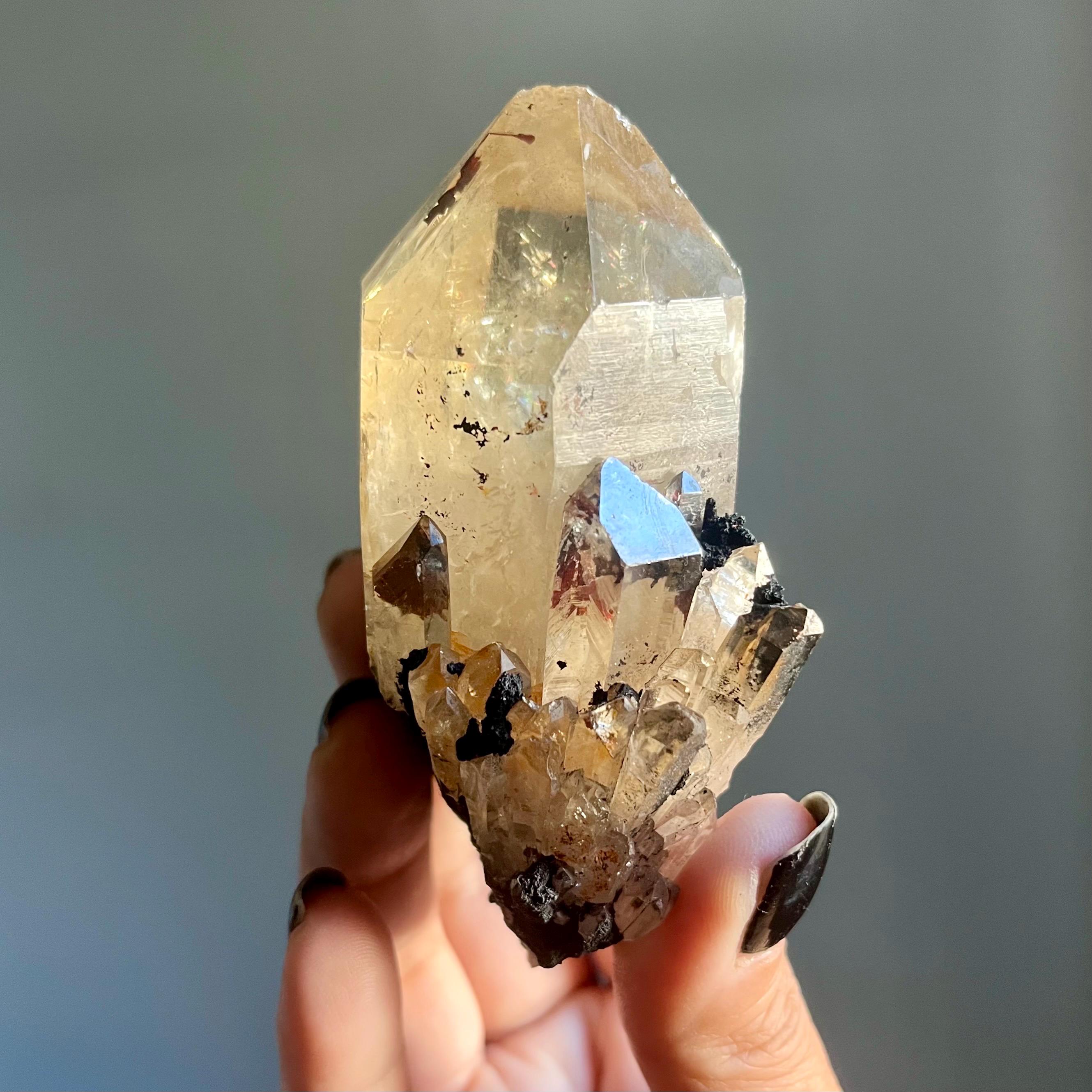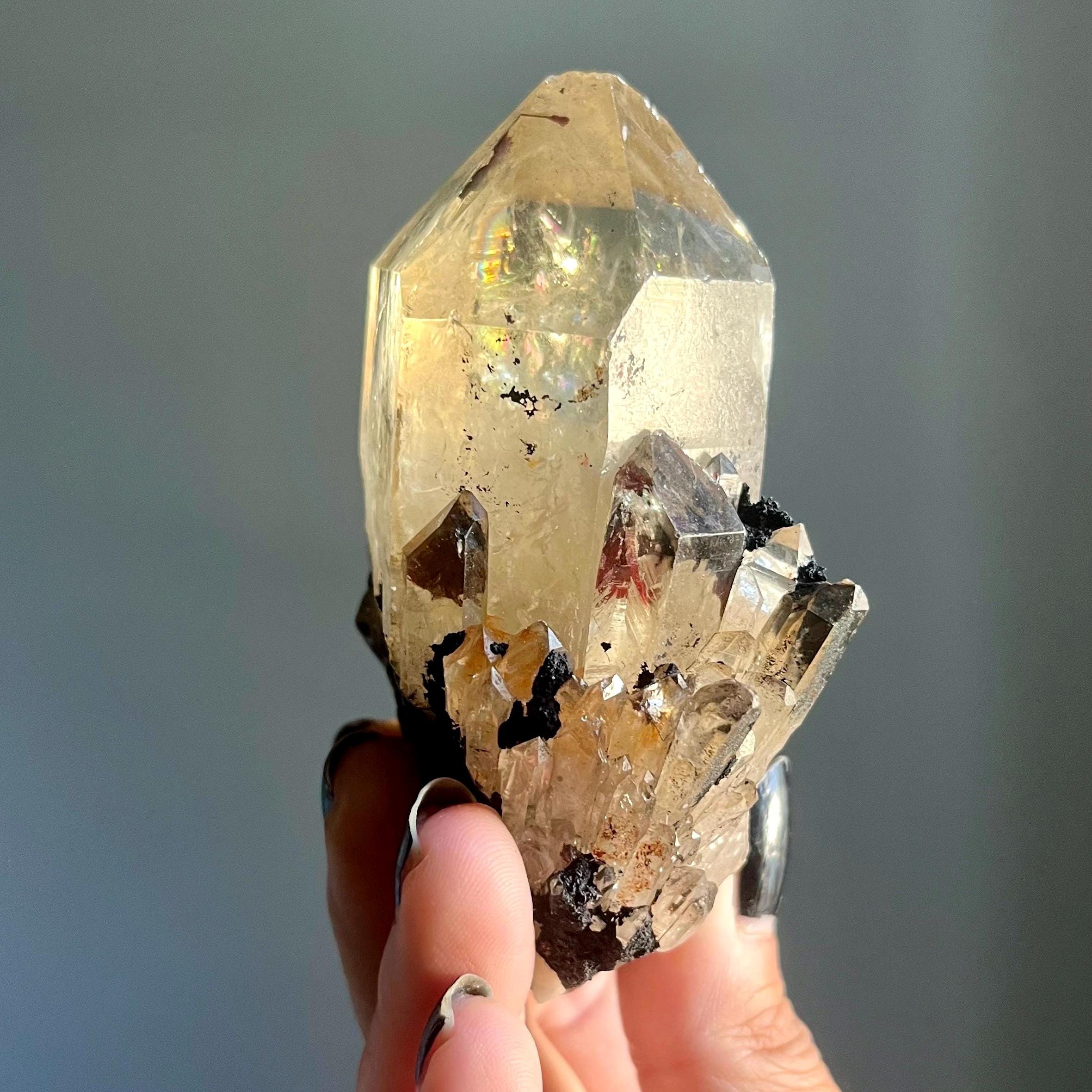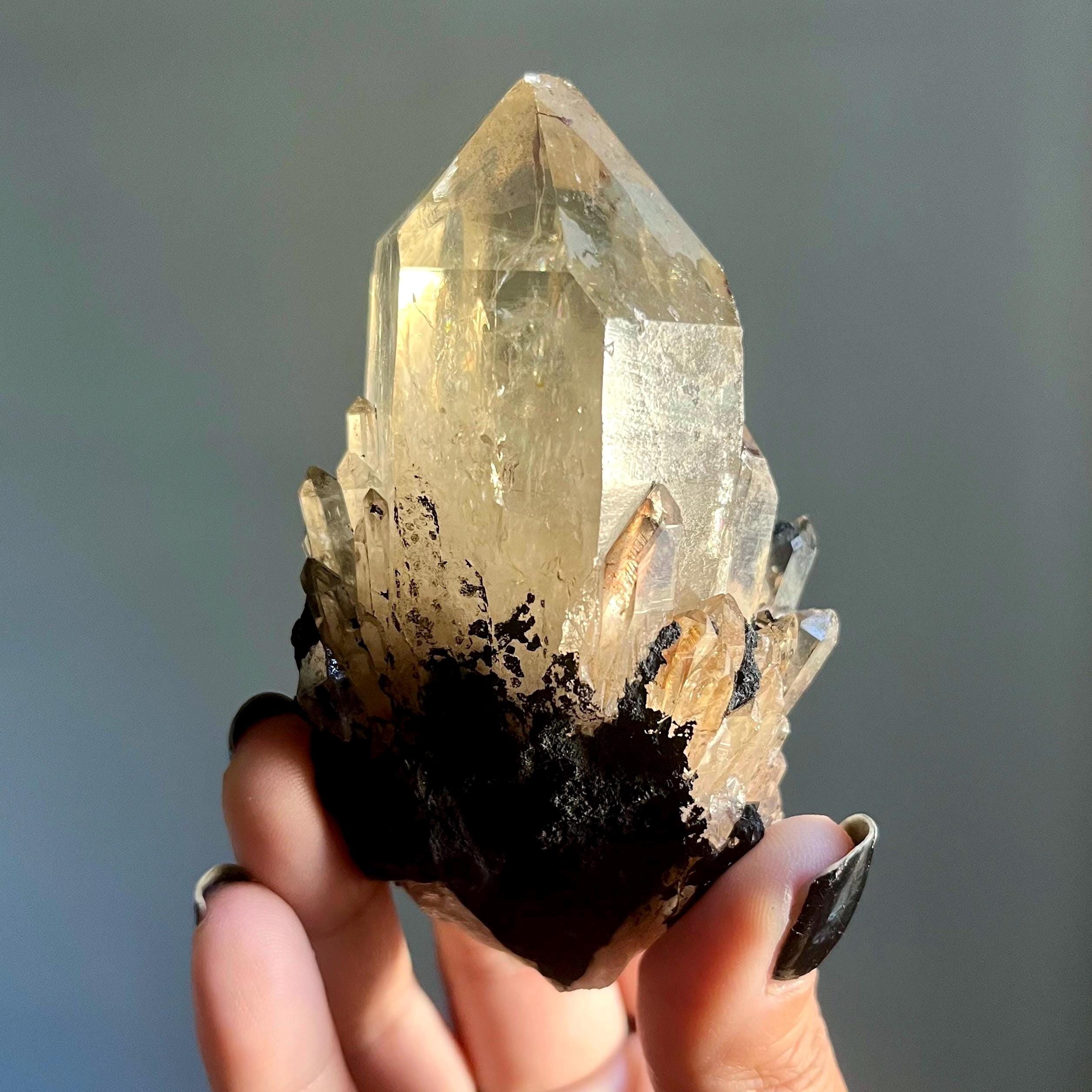This piece is particularly large for a primarily singular kundalini quartz crystal. Feral, there are natural flaws in the termination, a reminder that this stone is wild and untouched.