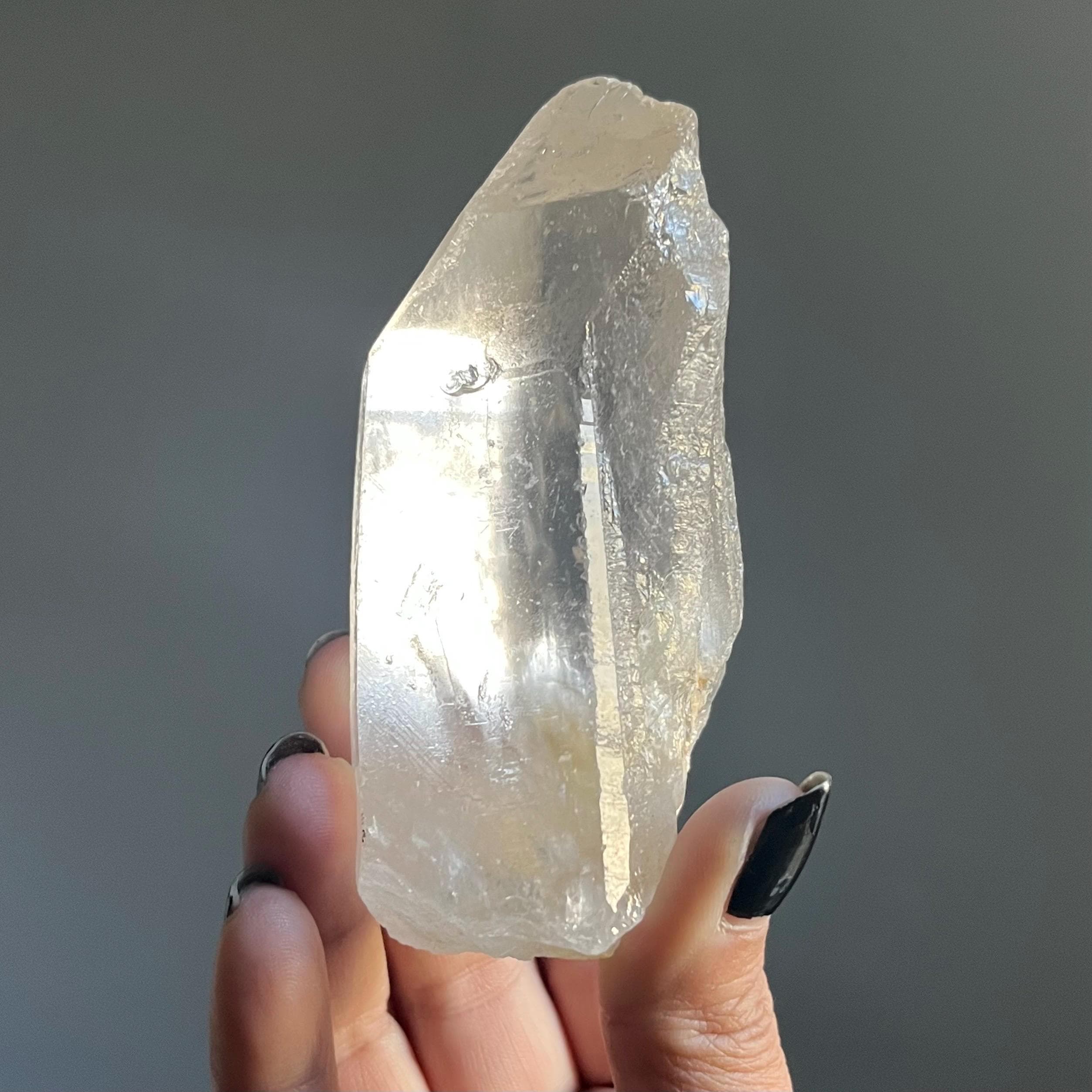 Sacred geometry steps forward in tactile form, the natural, five sided manifest spirit isis quartz crystal face embodying the spaces between, where spirit and matter overlap.