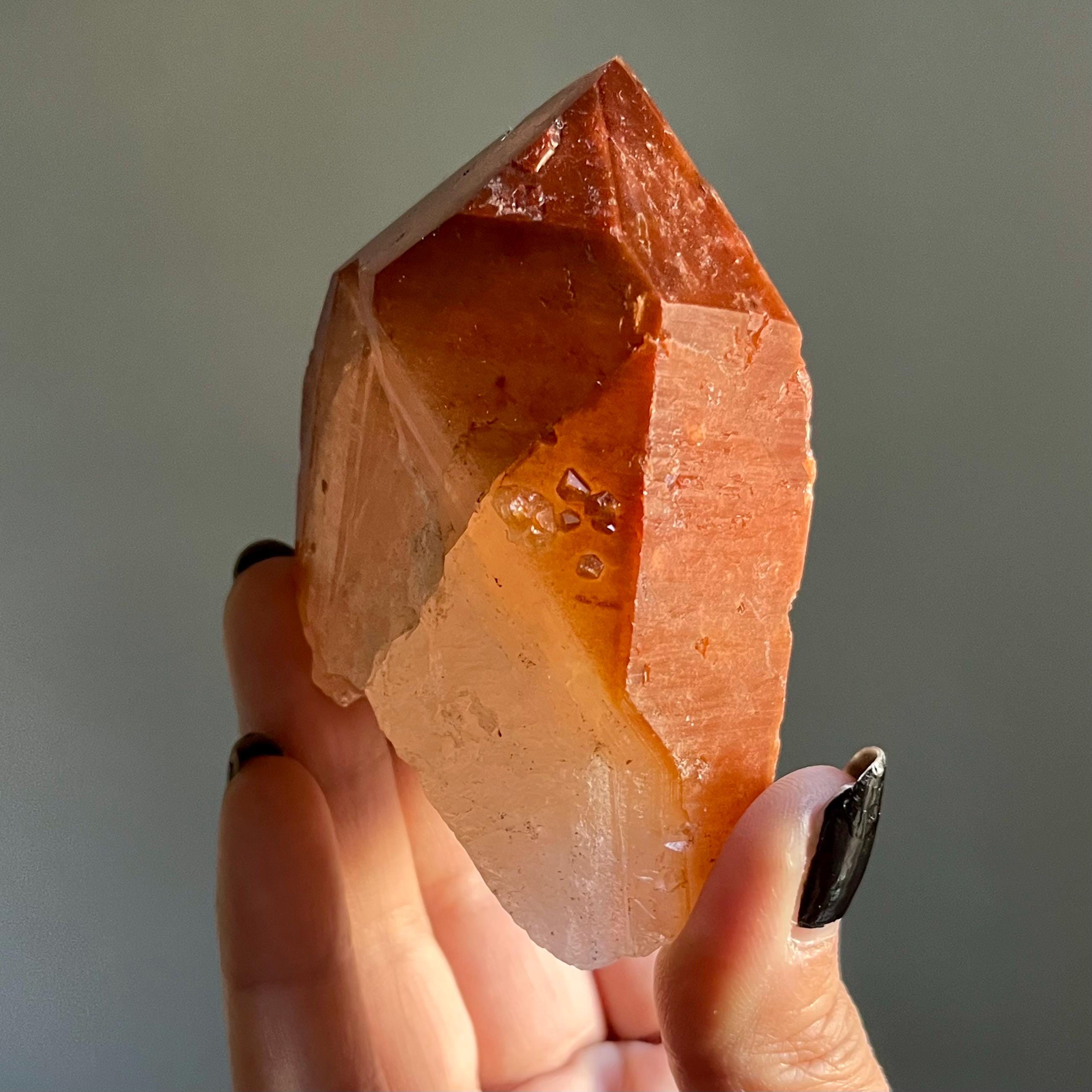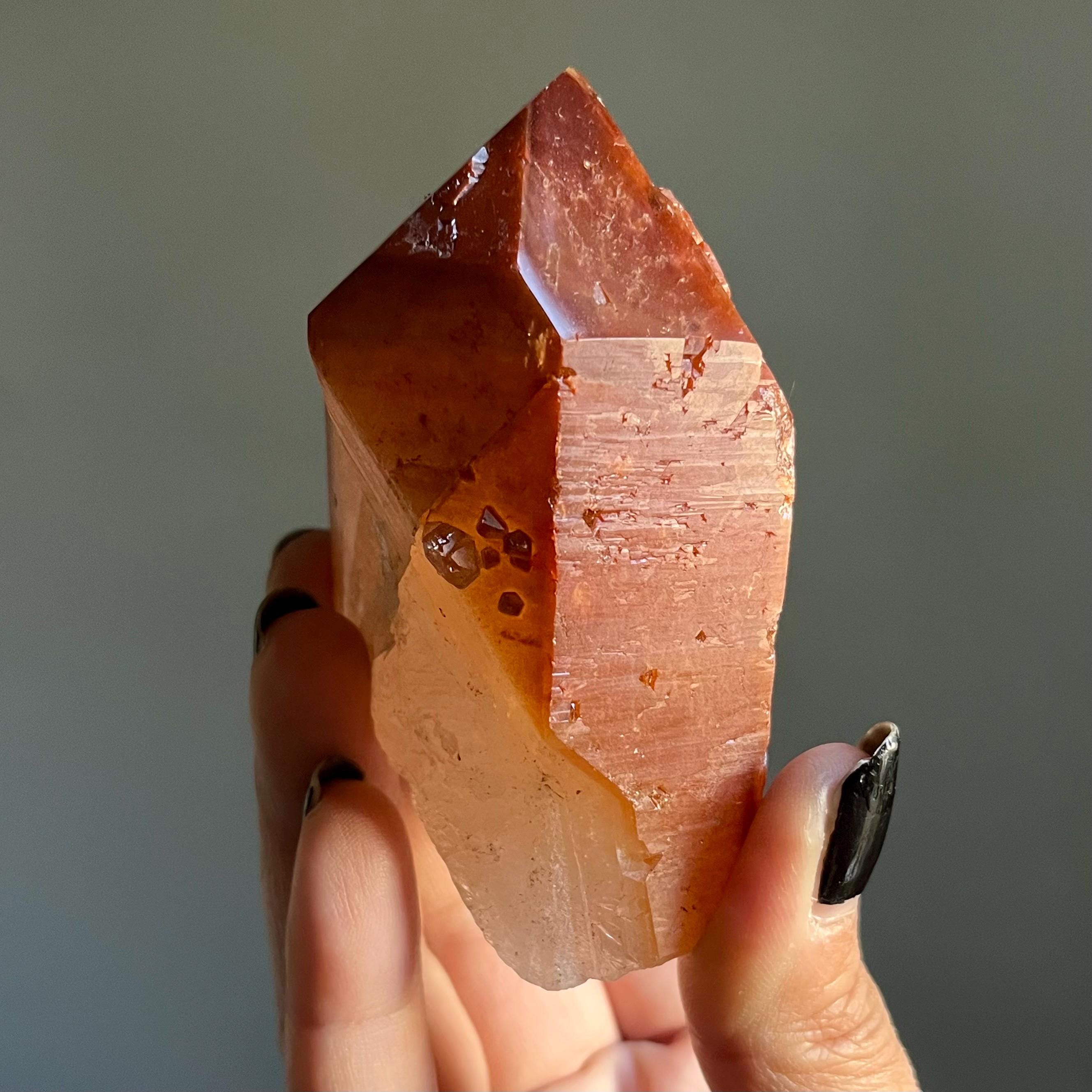 Wild + rare, this extraordinary red dreamcoat lemurian quartz crystal point manifests as an isis quartz master record keeper.