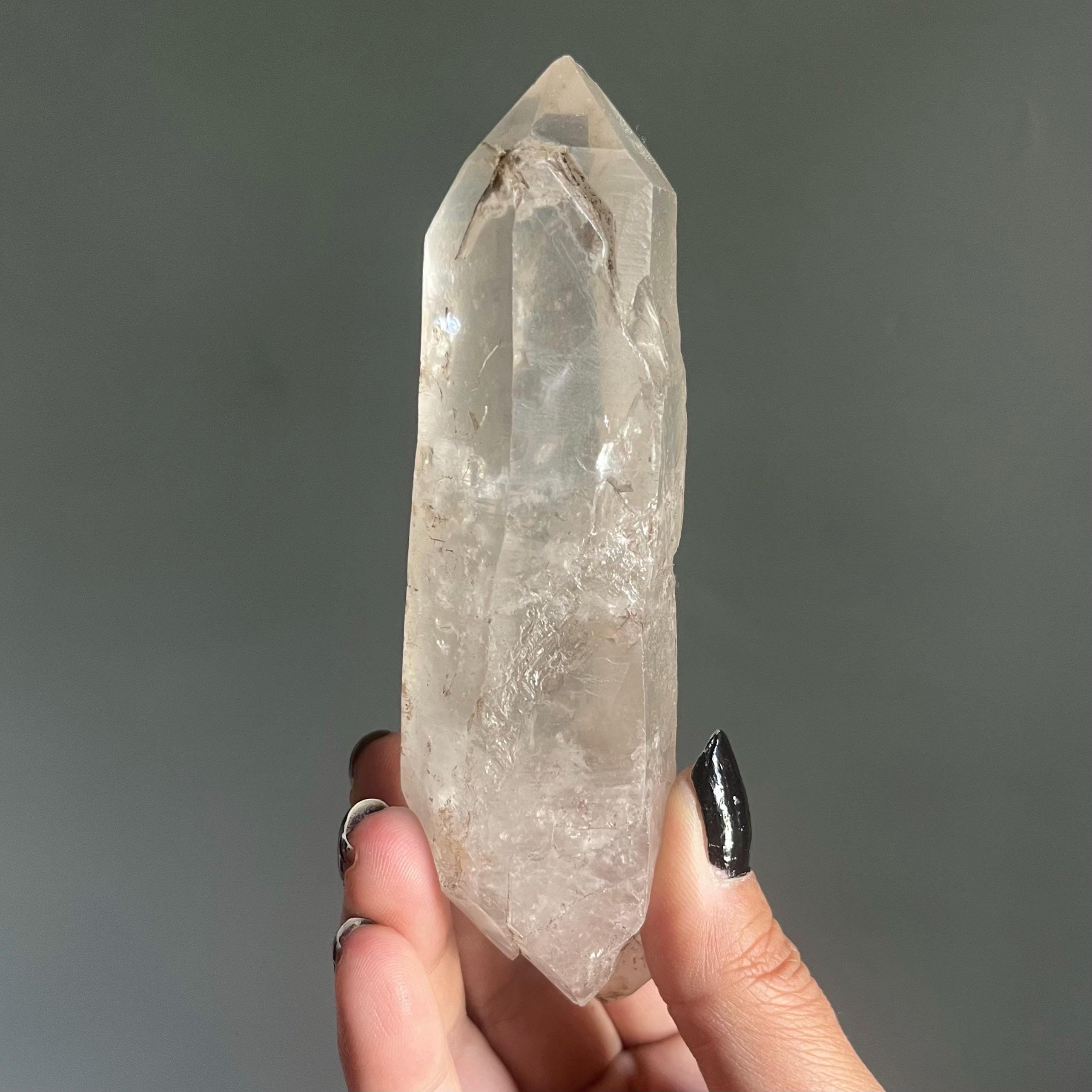 A master teacher, this self healed quartz both supports our journey though the shadows and calls in the energy of light to illuminate any splintered parts of self.
