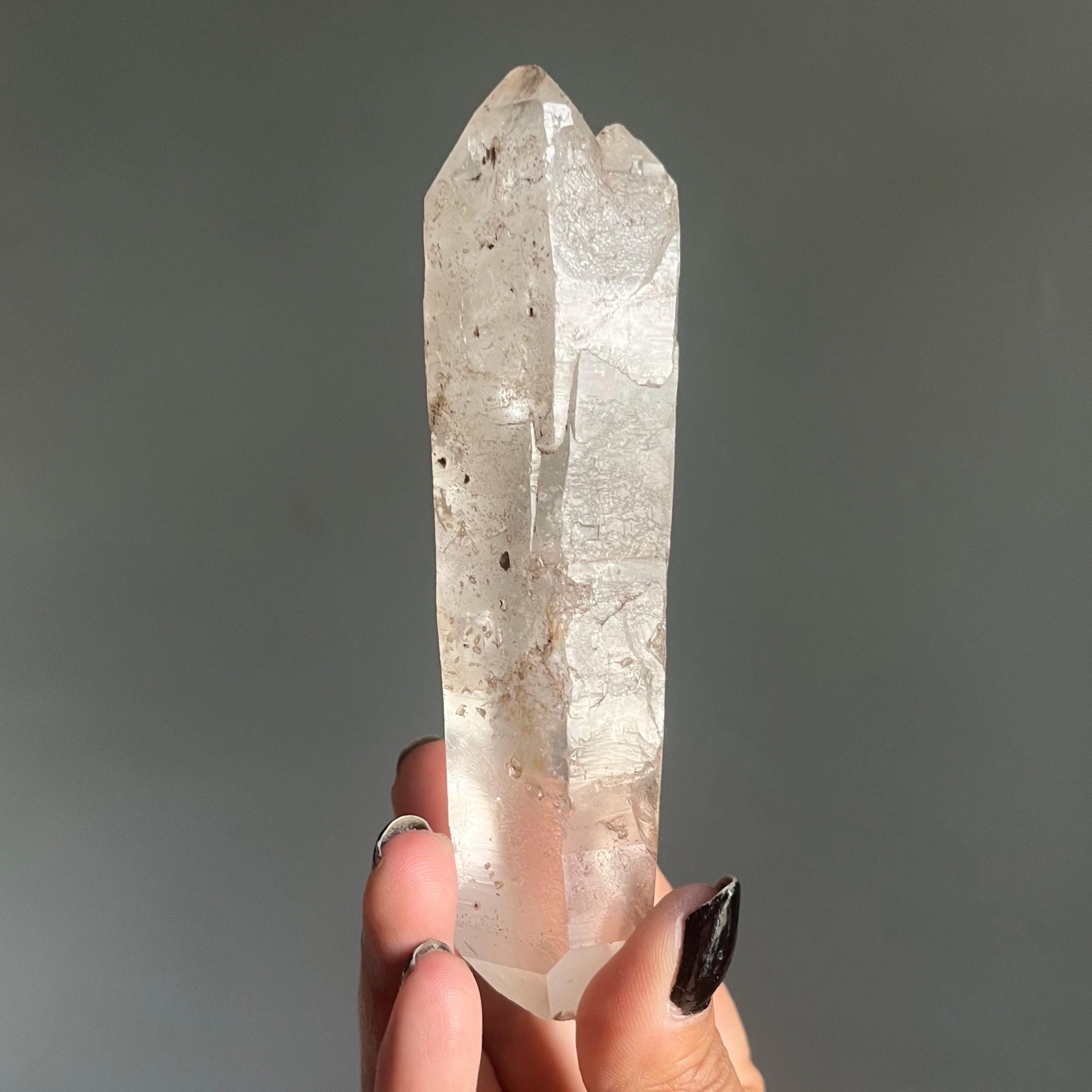 The master number 222 speaks to the universal nature of balance, this energetic intention reflected throughout the large double terminated quartz wand.
