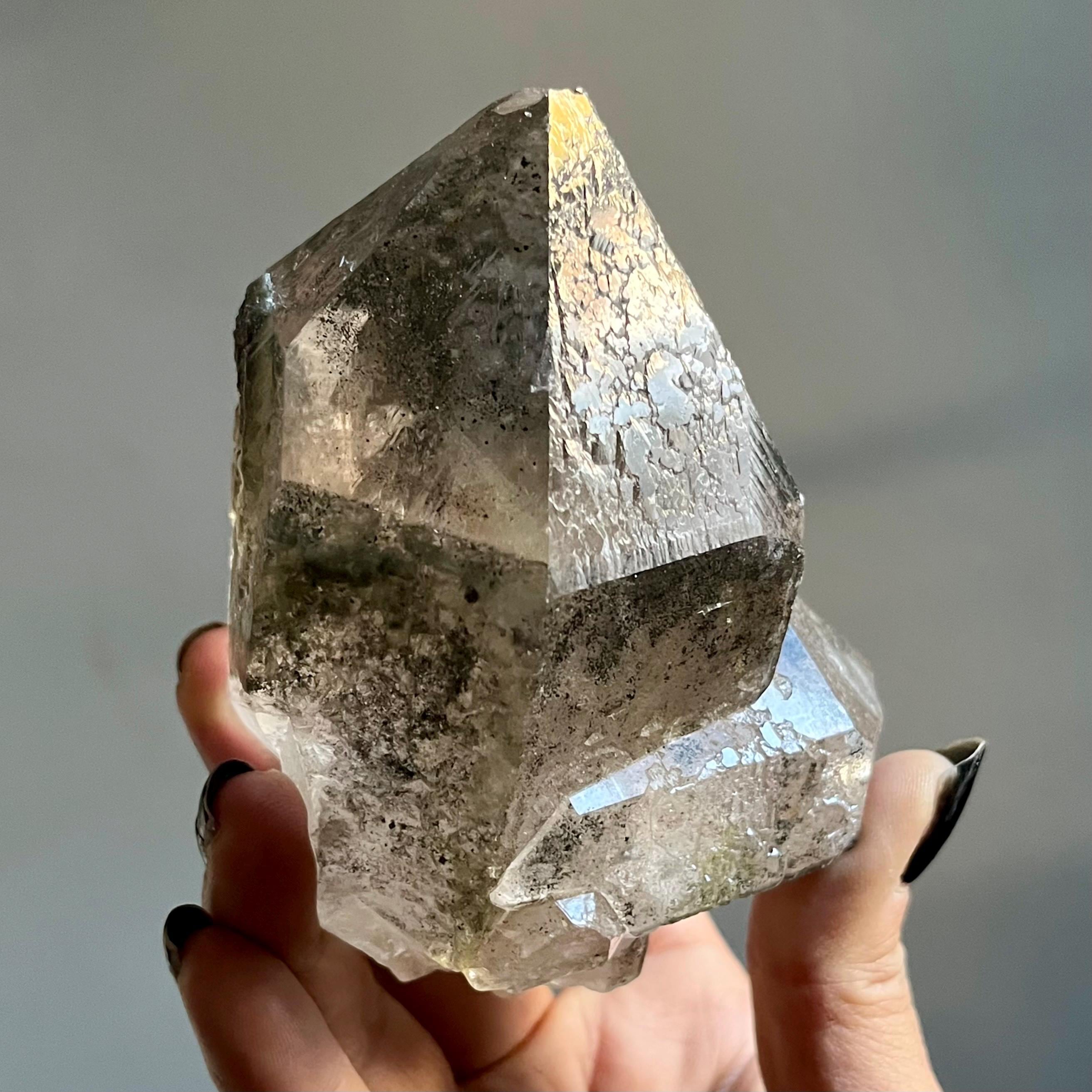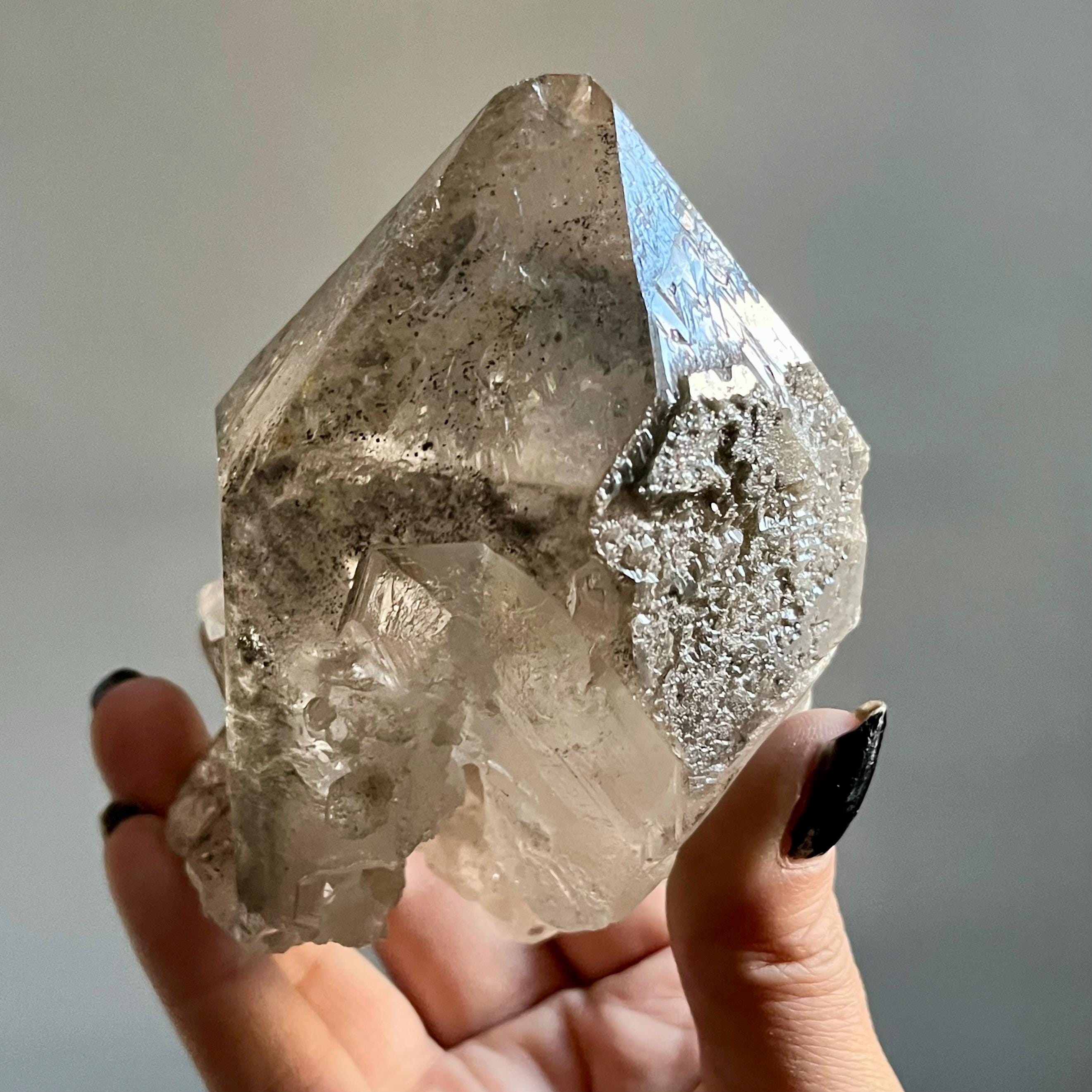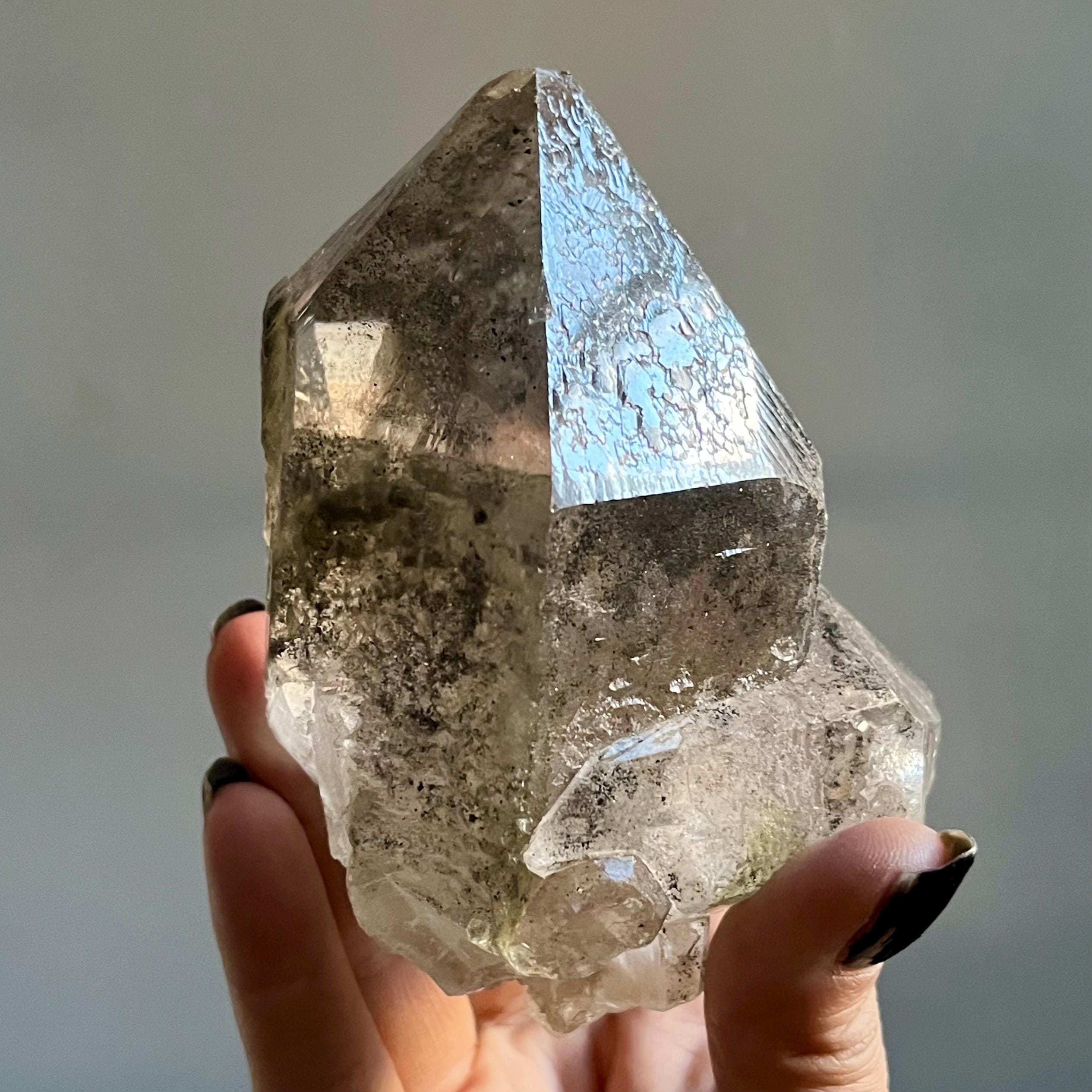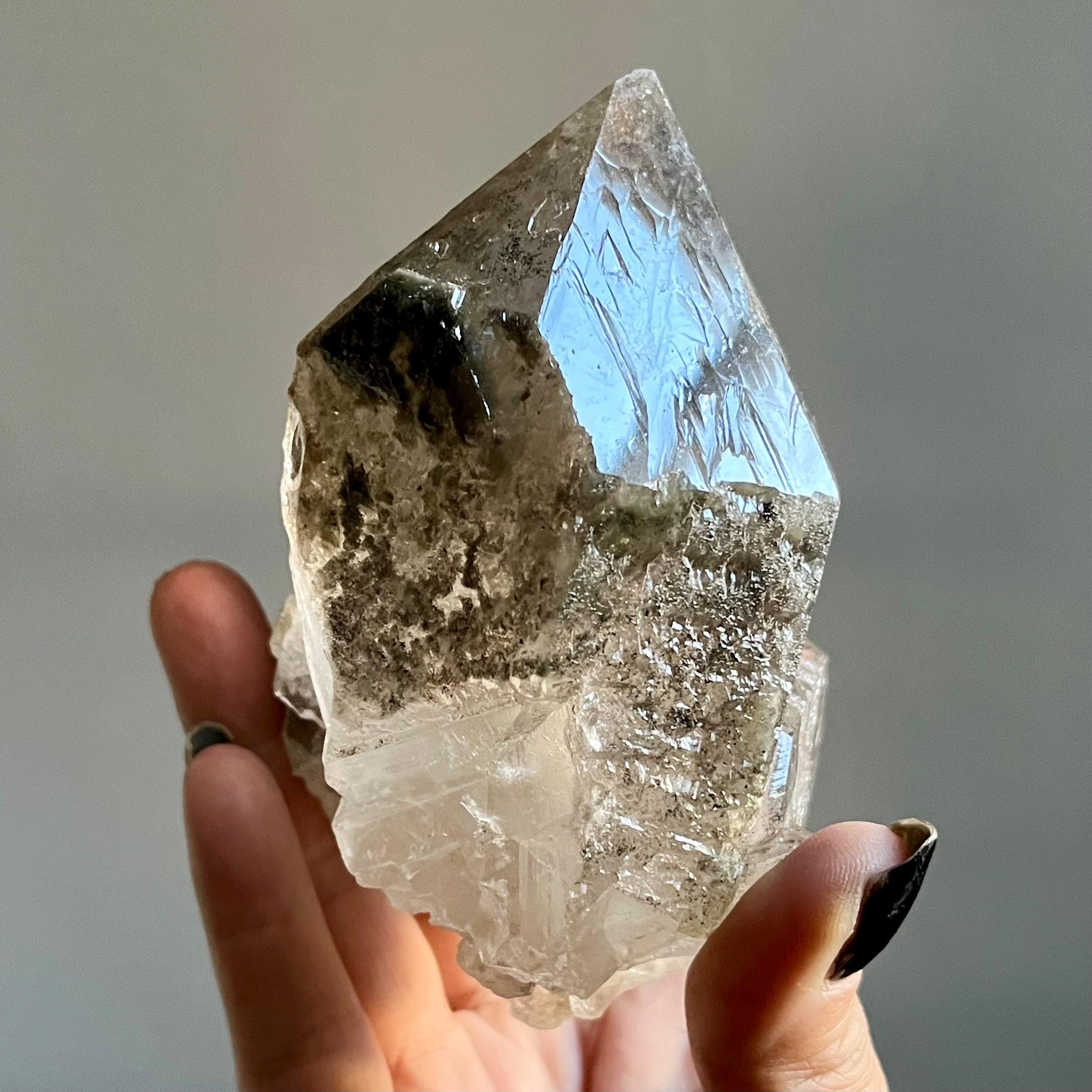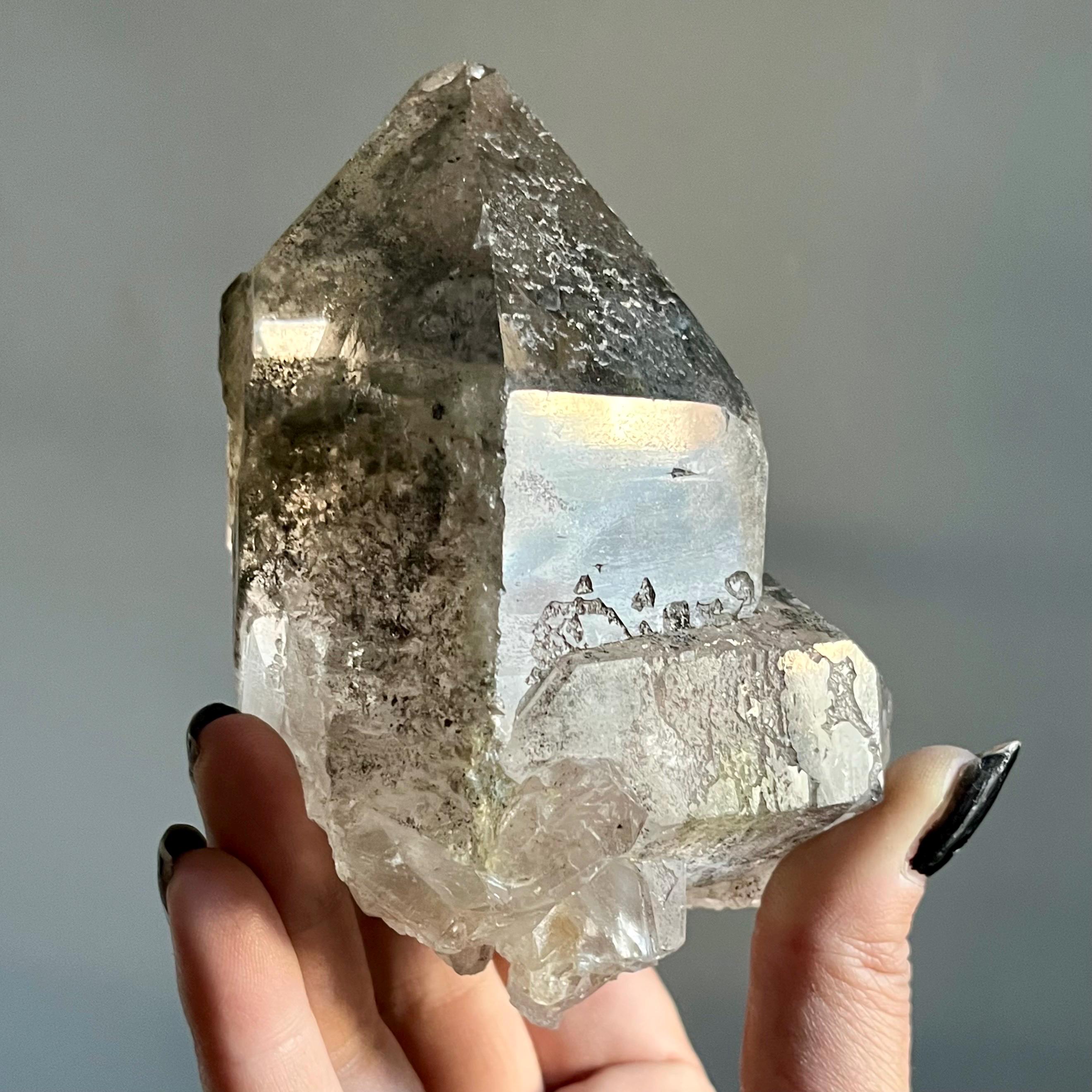 Phantom quartz embodies the cyclical nature of existence, supporting us to both honor and integrate our own unique lifetimes, moving us towards an alchemized expression of our physical and higher manifestations of self.