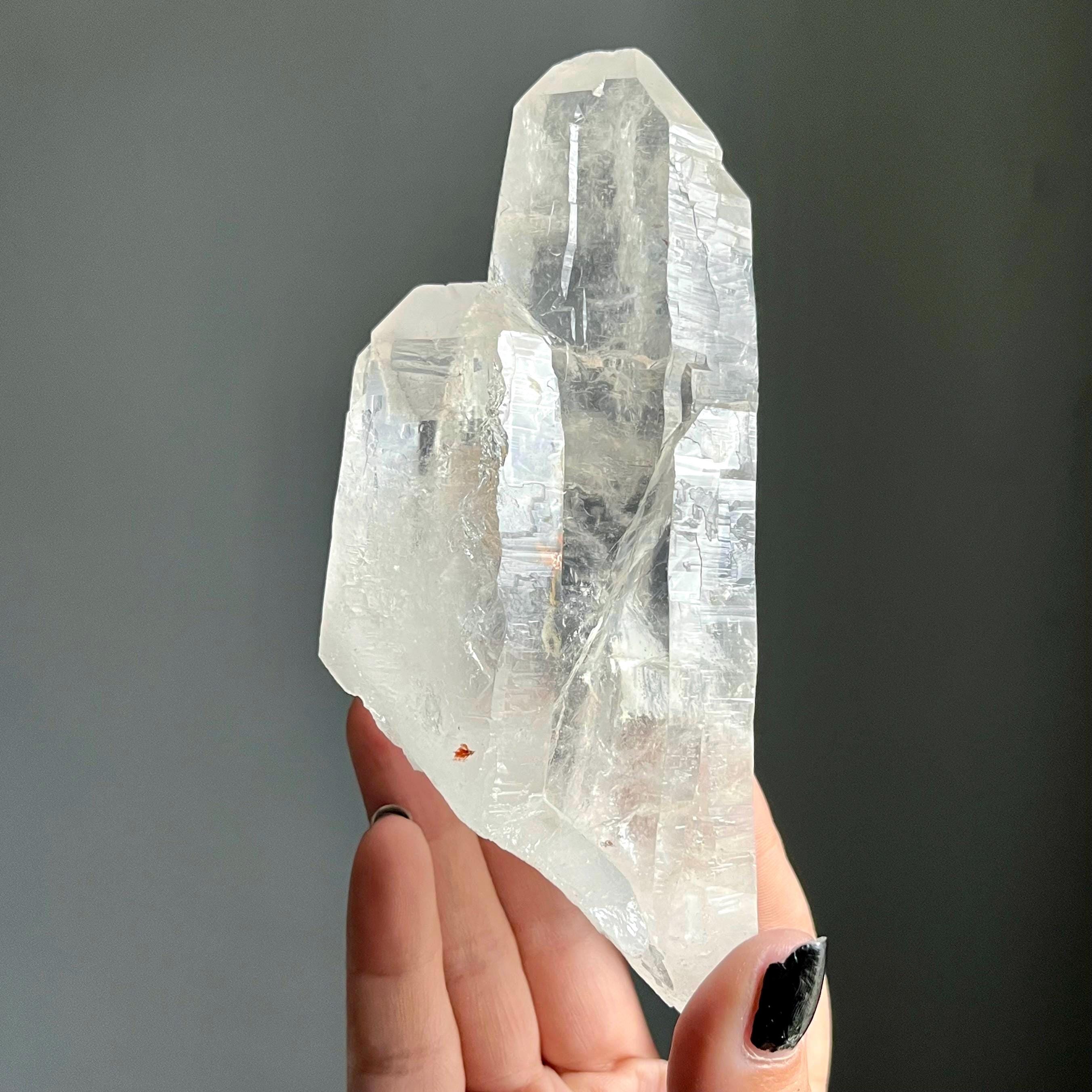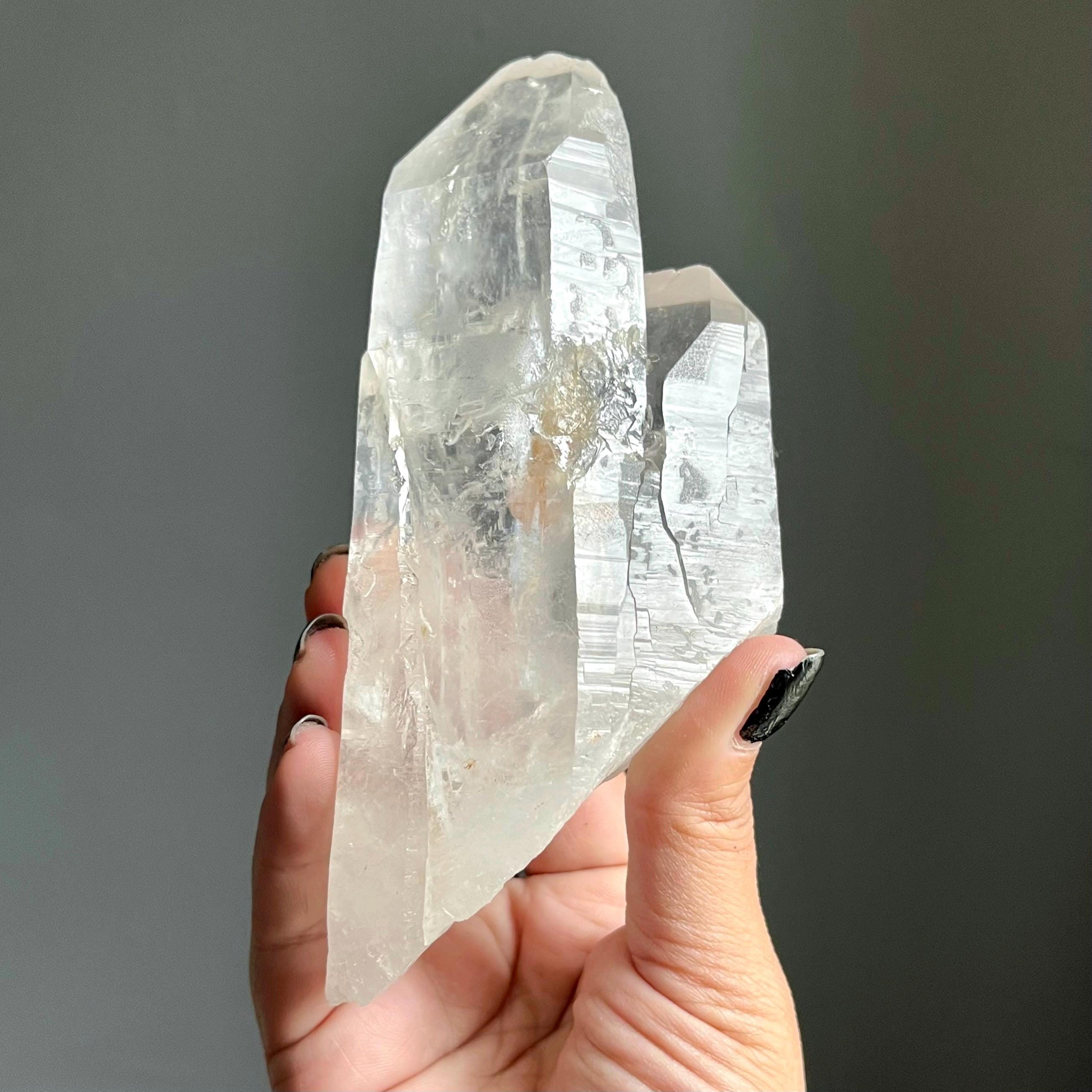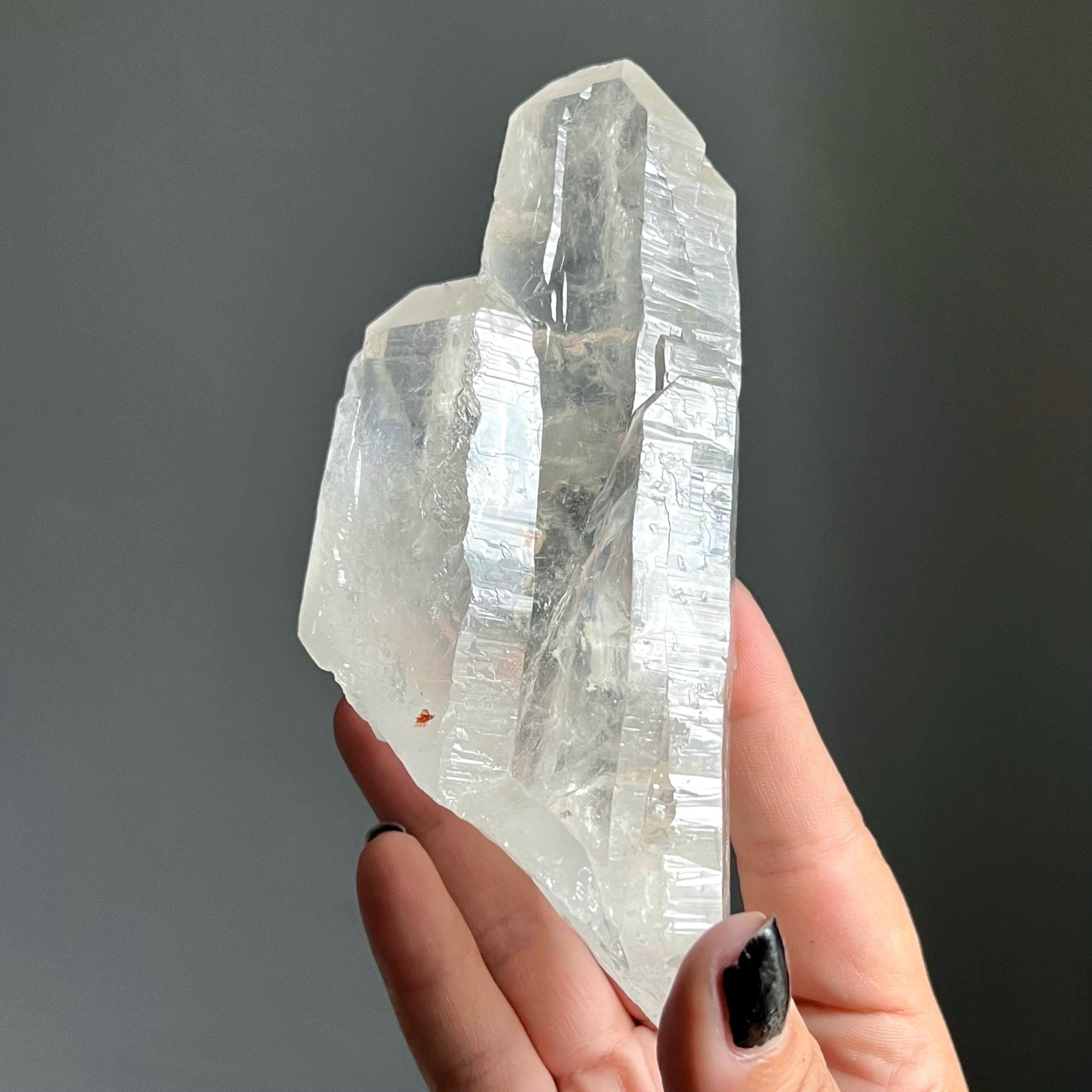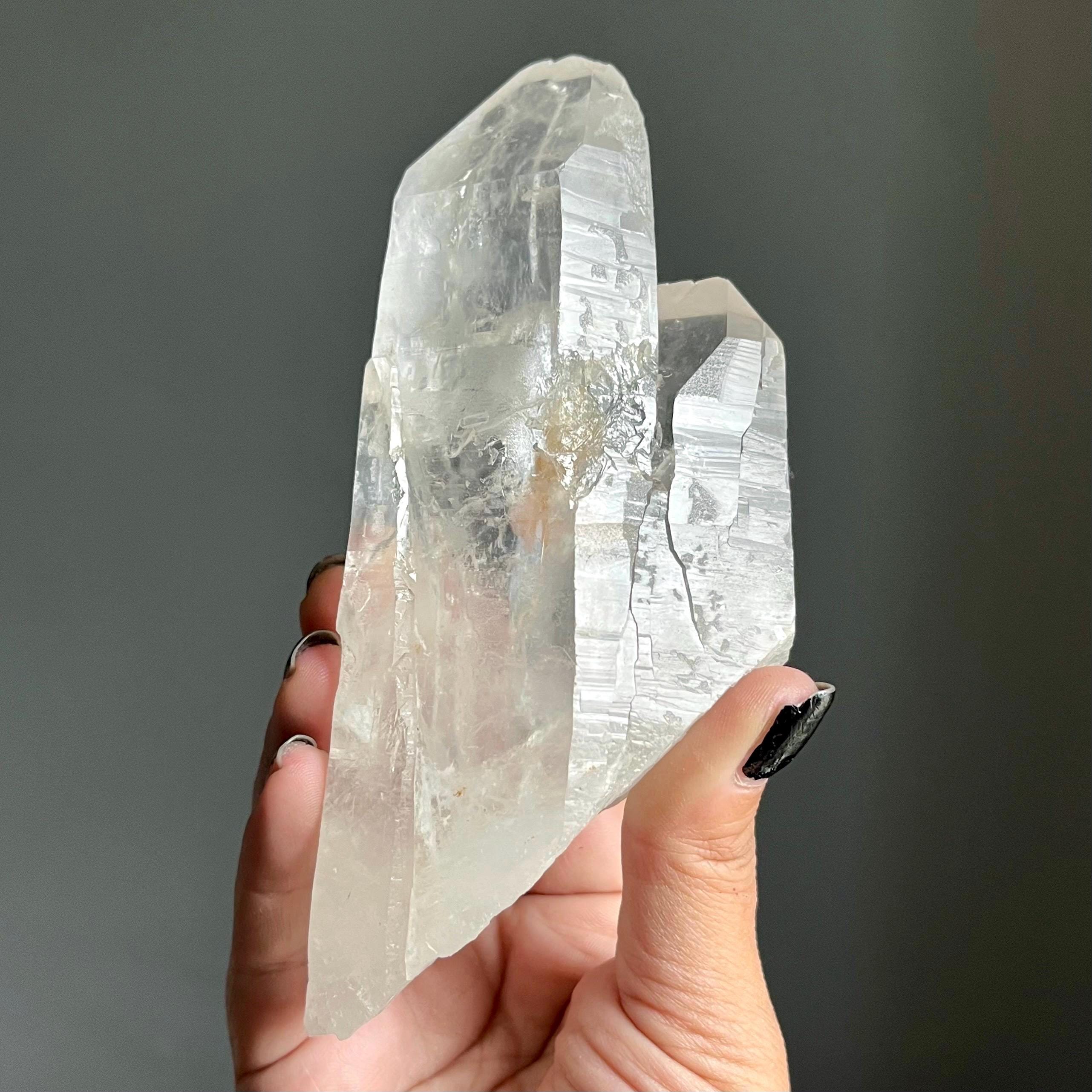 Weighing over a pound, this large crystal being is wild and untouched. Water clear, diamantina lemurian quartz beckons the light.