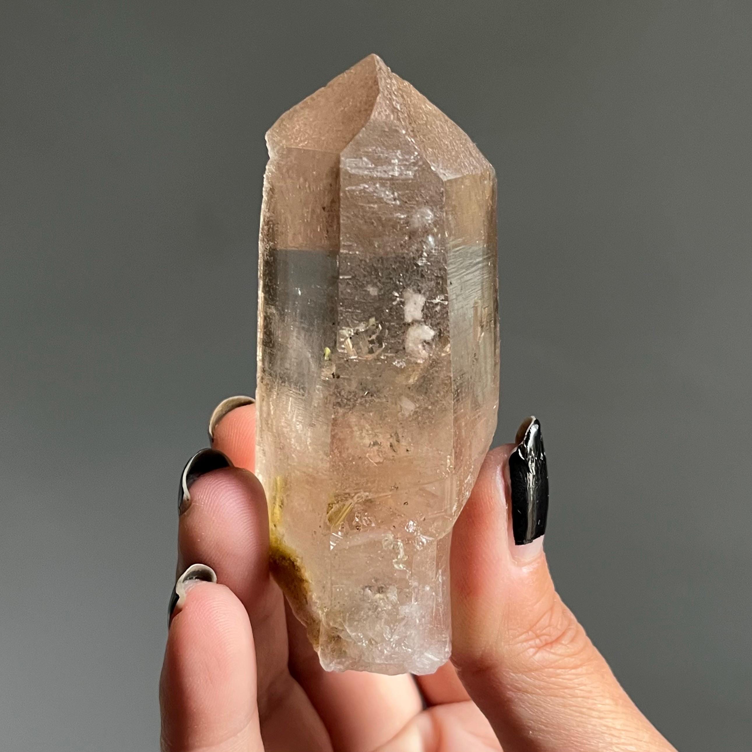 The alchemical sum of its parts, this crystal being is a stone of the transformational nature of self, guided by the wisdom of light and a tactile record of the ancient.