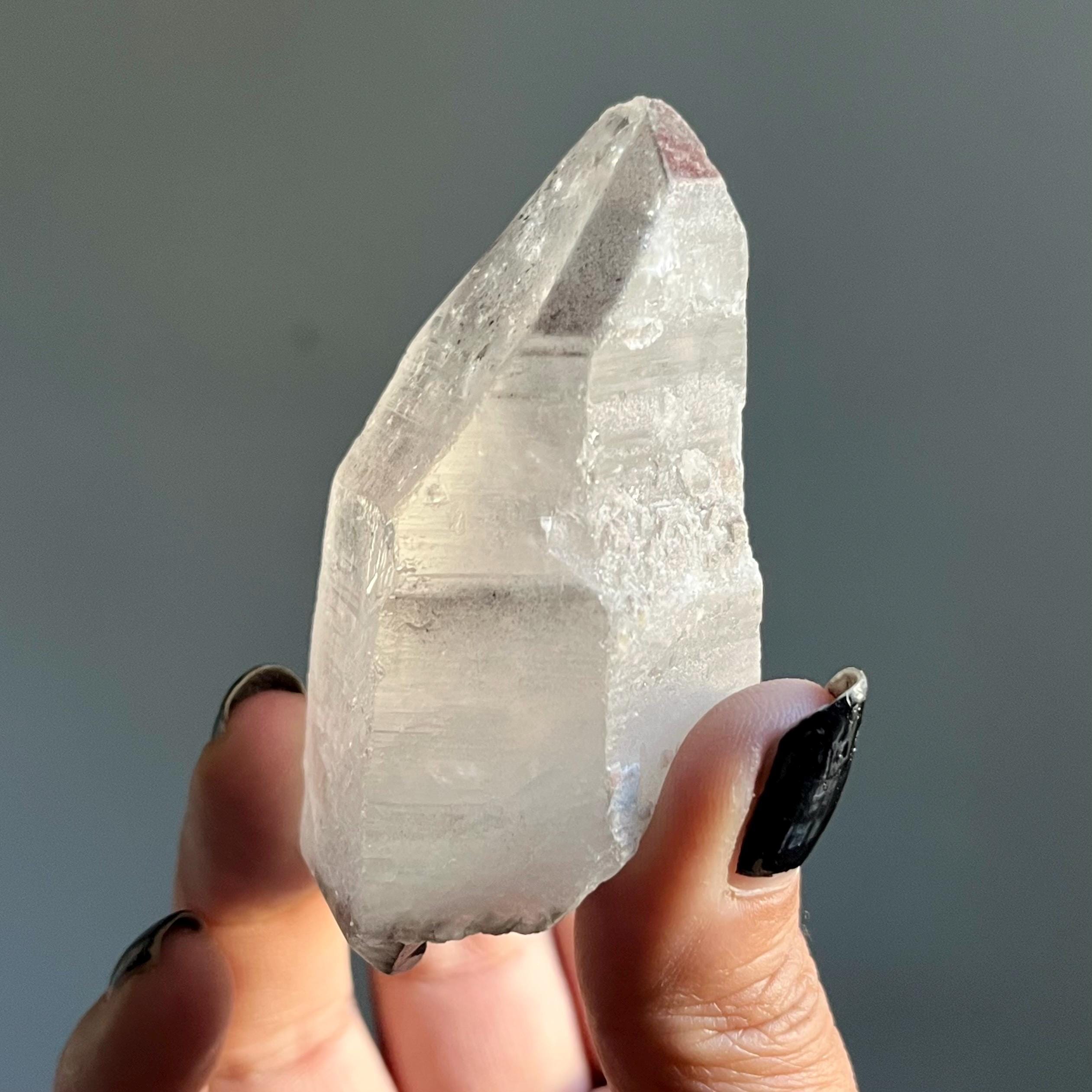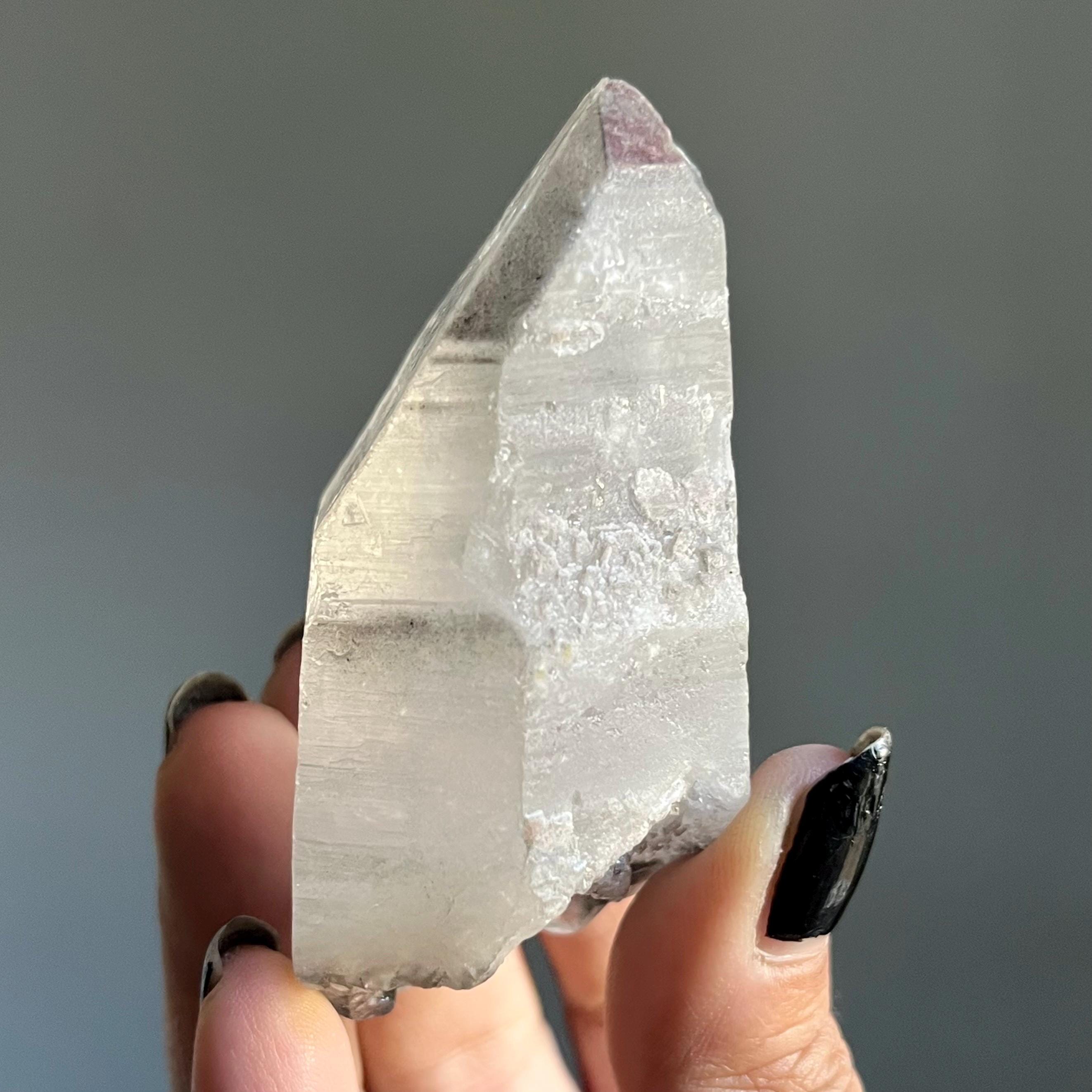 Alchemizing black tourmaline with pink lithium, the black tourmaline in this elusive crystal point steps forward as both phantom and inclusion quartz.