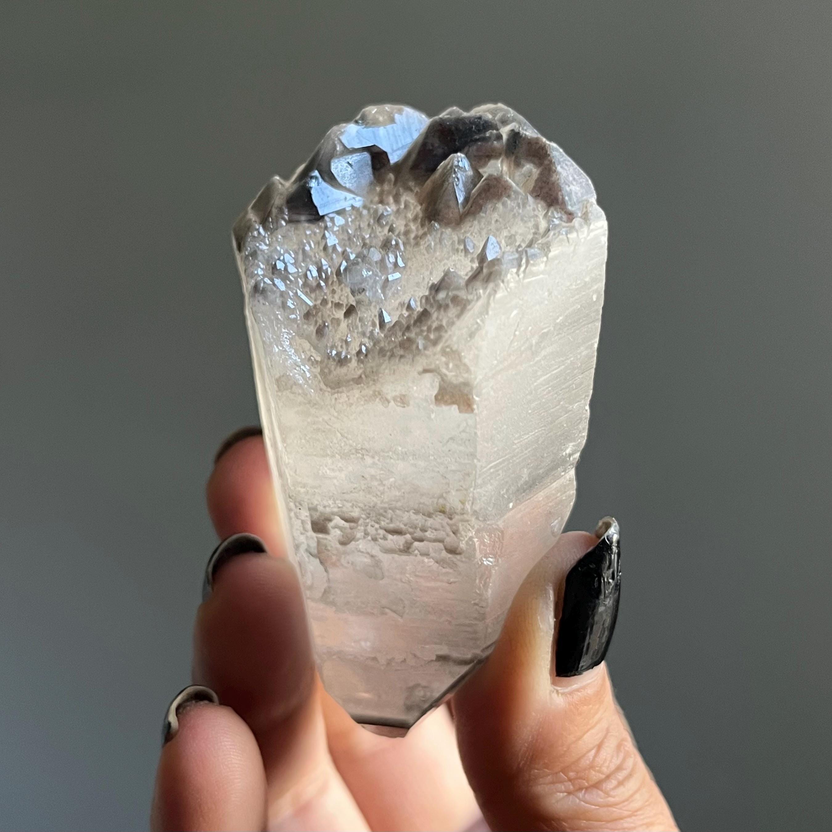 This remarkable crystal being is the alchemical sum of its parts. Existing in the space where light and shadow meet, the liminal space is expressed in tangible form.