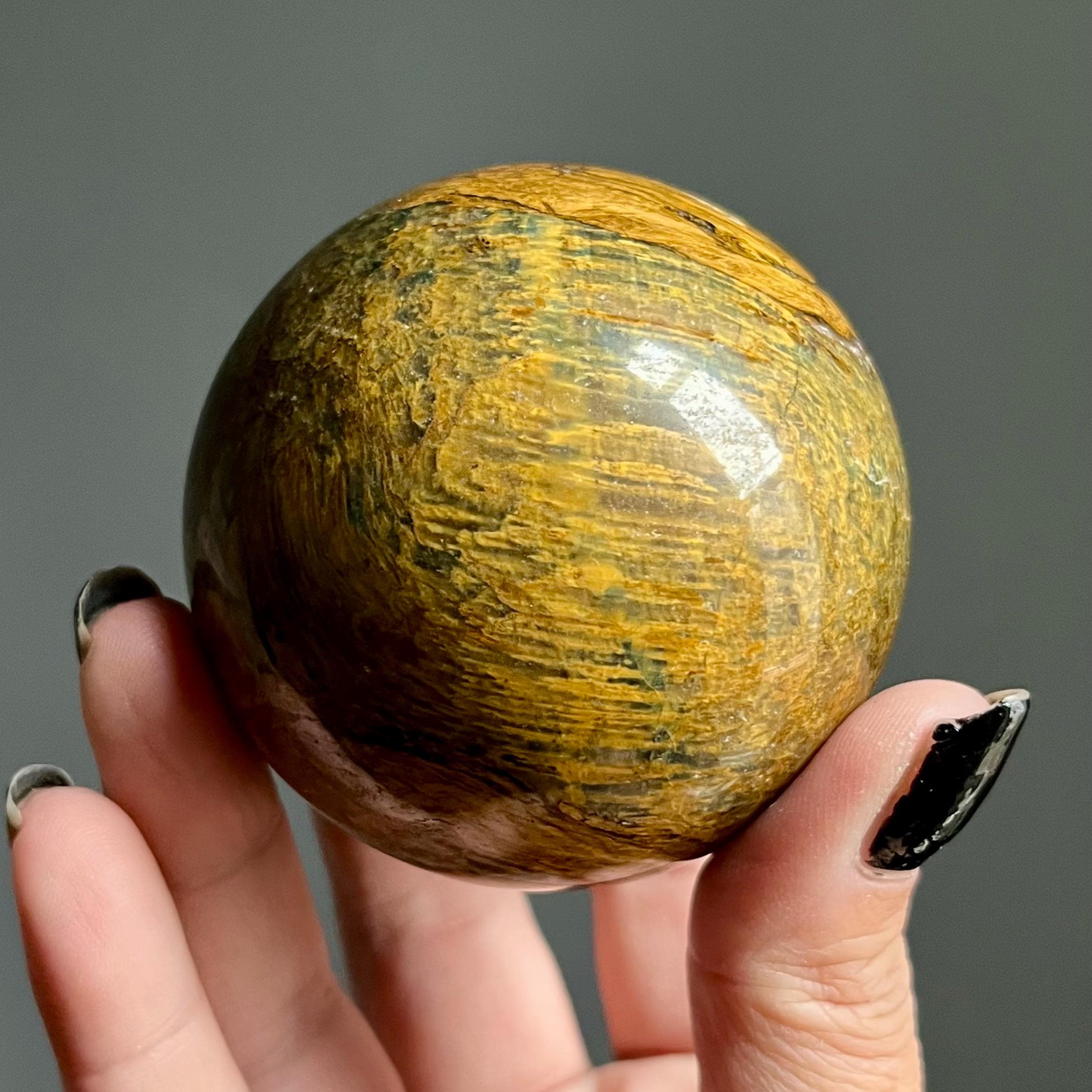 There is a tactile, energetic hum to this rare crystal sphere, the resonance of the piece made tangible by the push and pull, the ebb and flow of this wild stone.