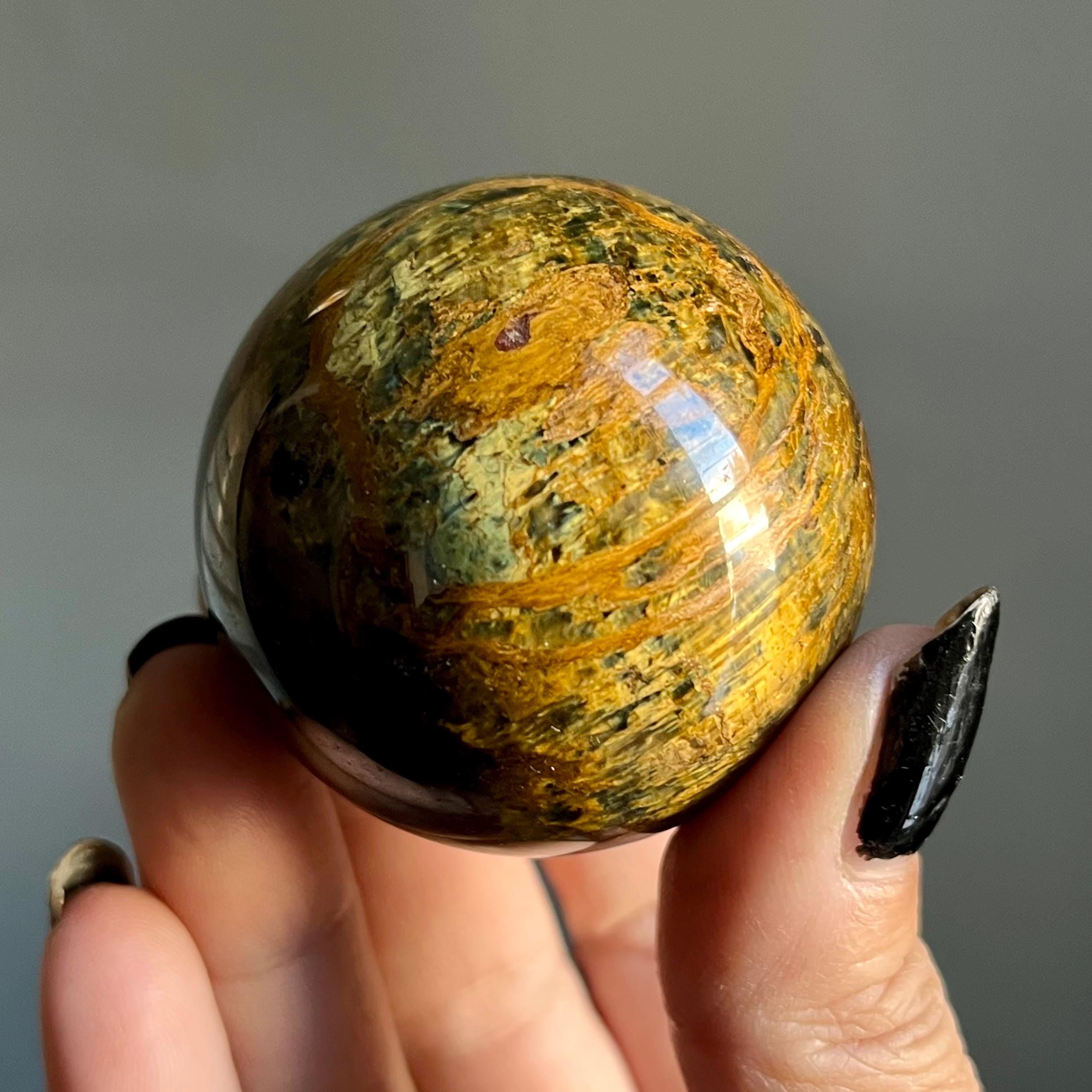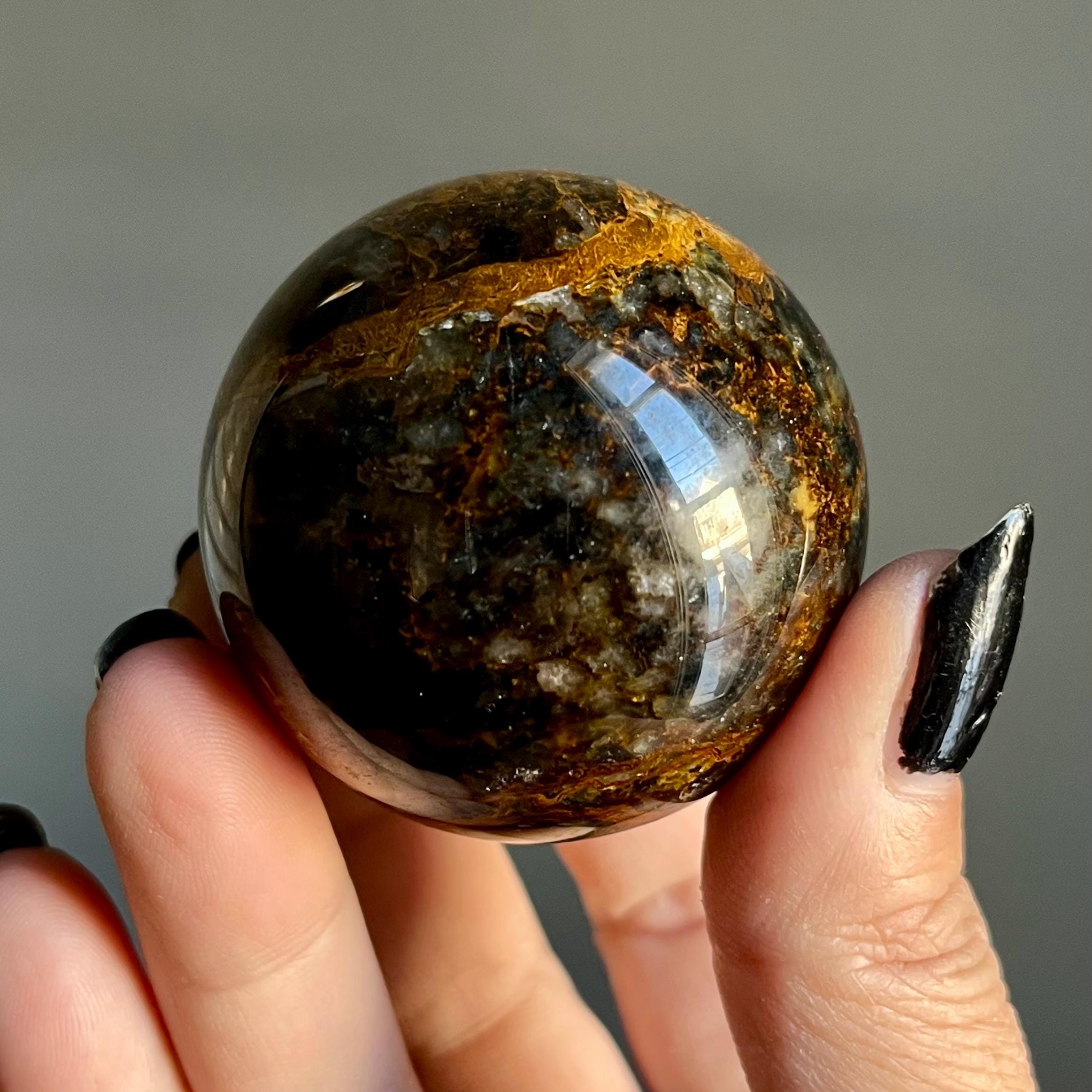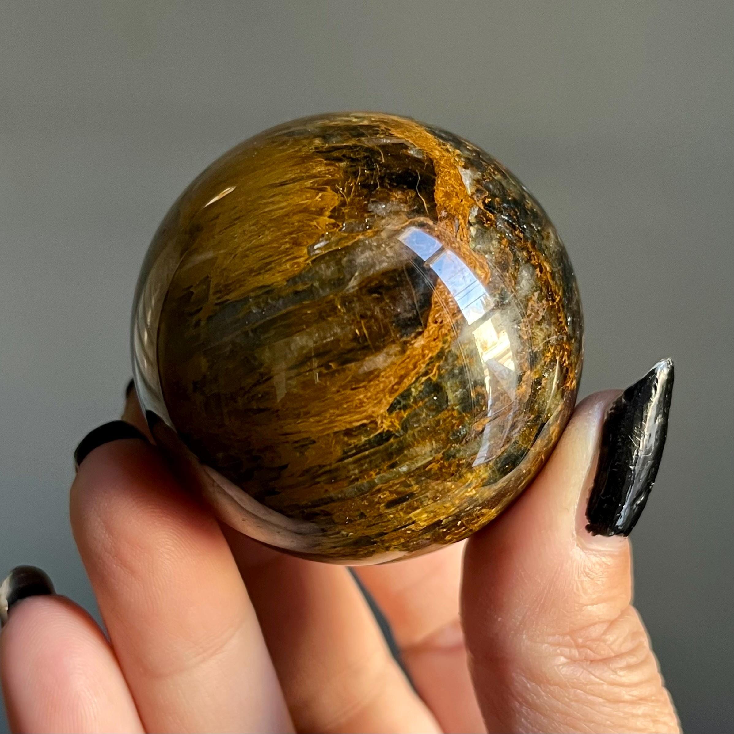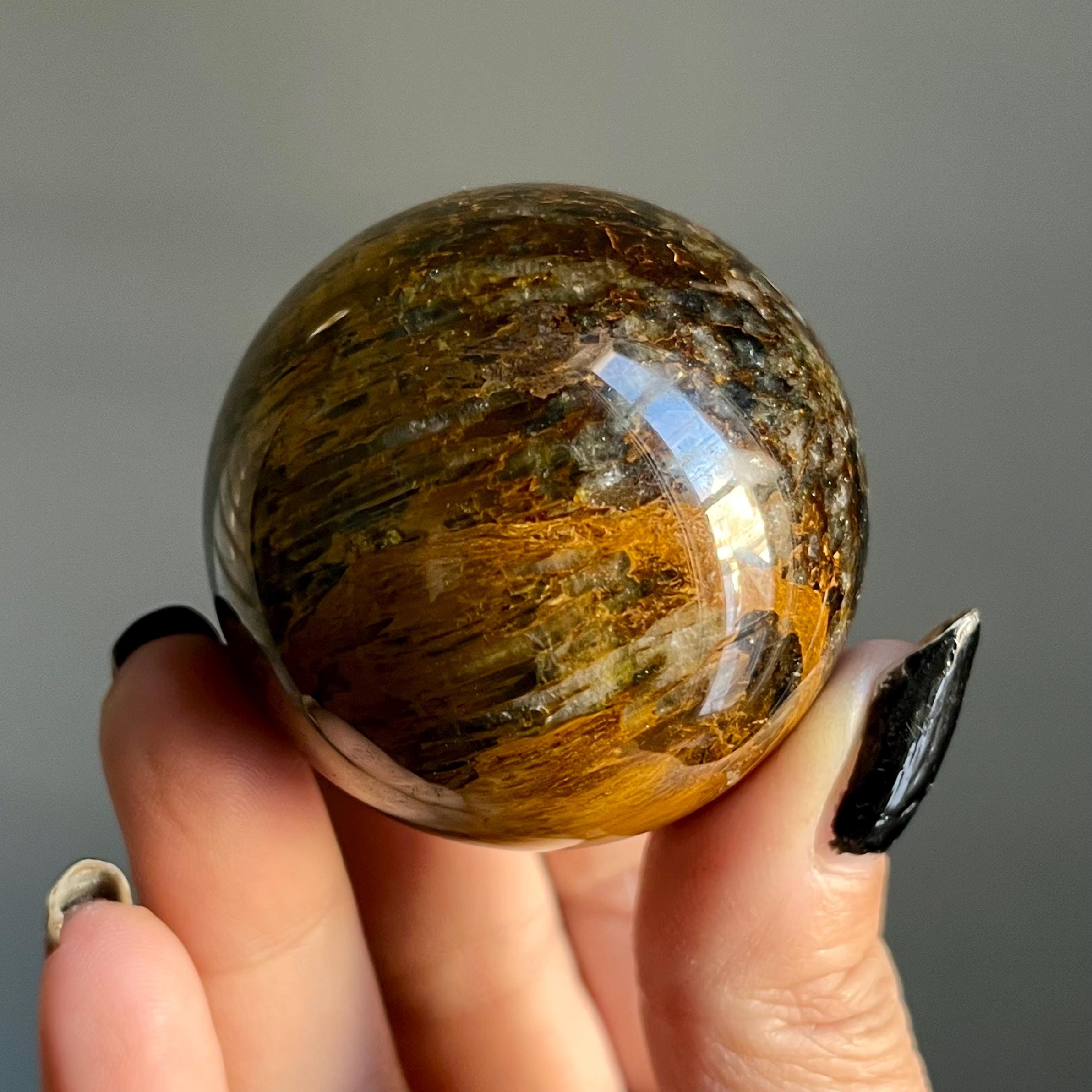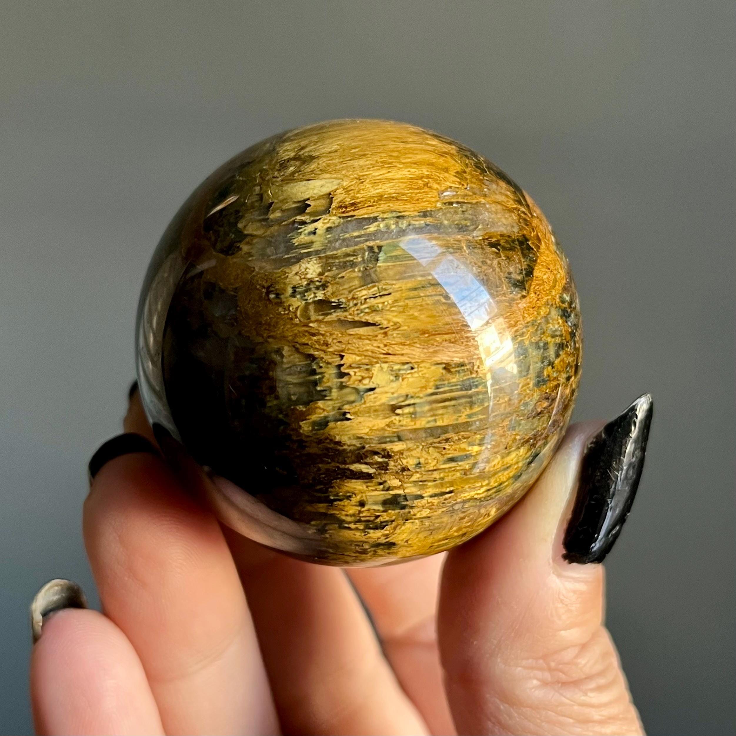 There is a tactile, energetic hum to this rare crystal sphere, the resonance of the piece made tangible by the push and pull, the ebb and flow of this wild stone.
