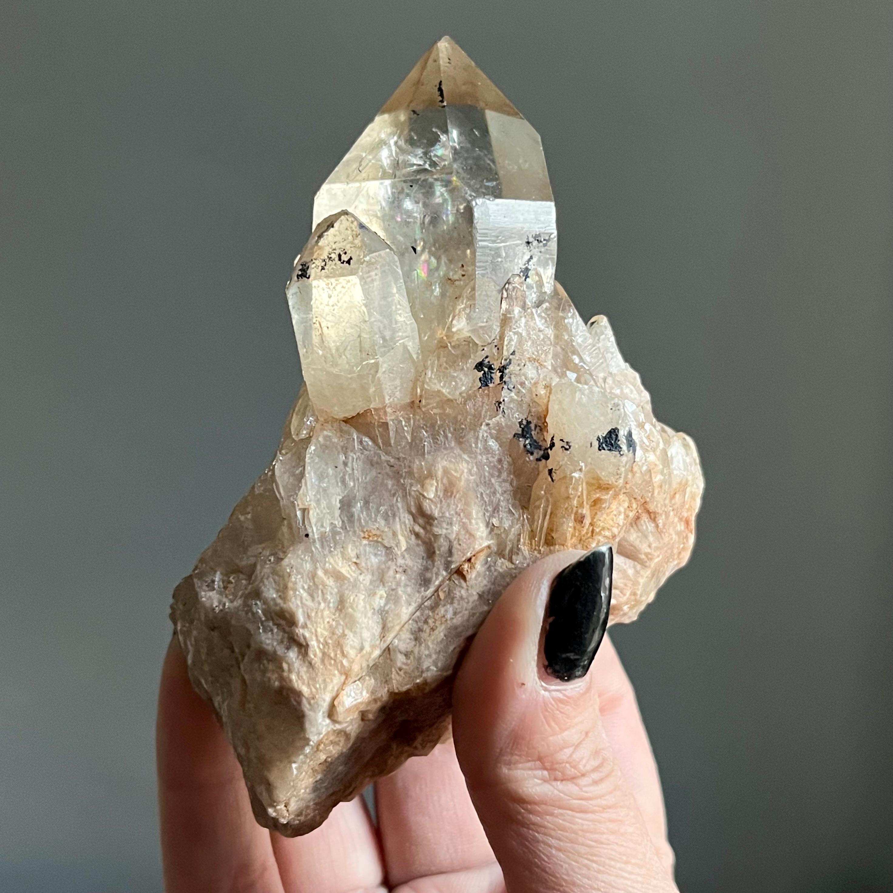 Photos donโt do the rainbow inclusions in this crystal being justice. Raditing from the inside out, they call to the energy of the full spectrum of prismatic light.
