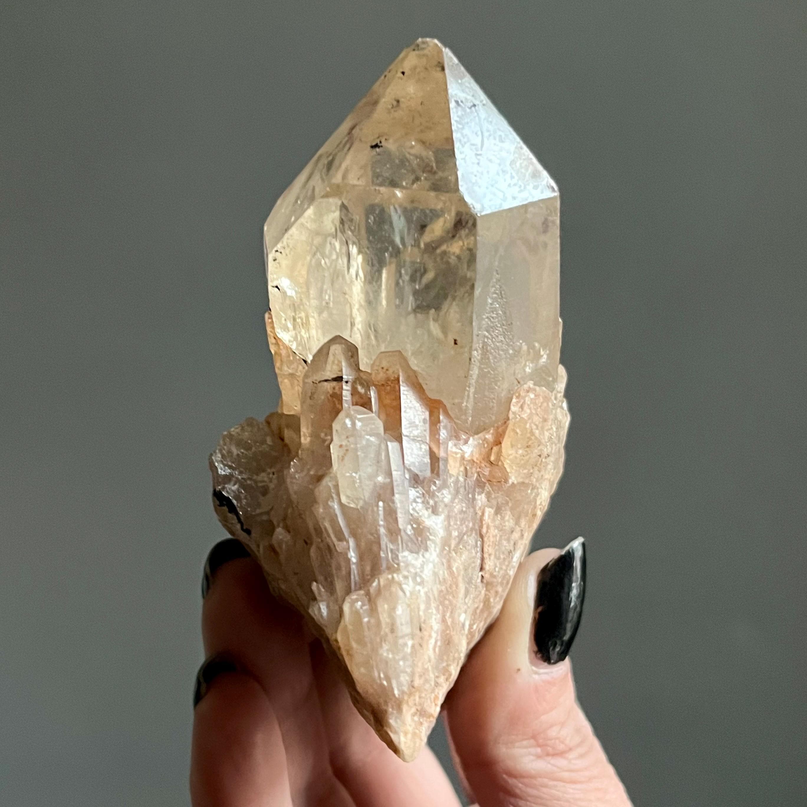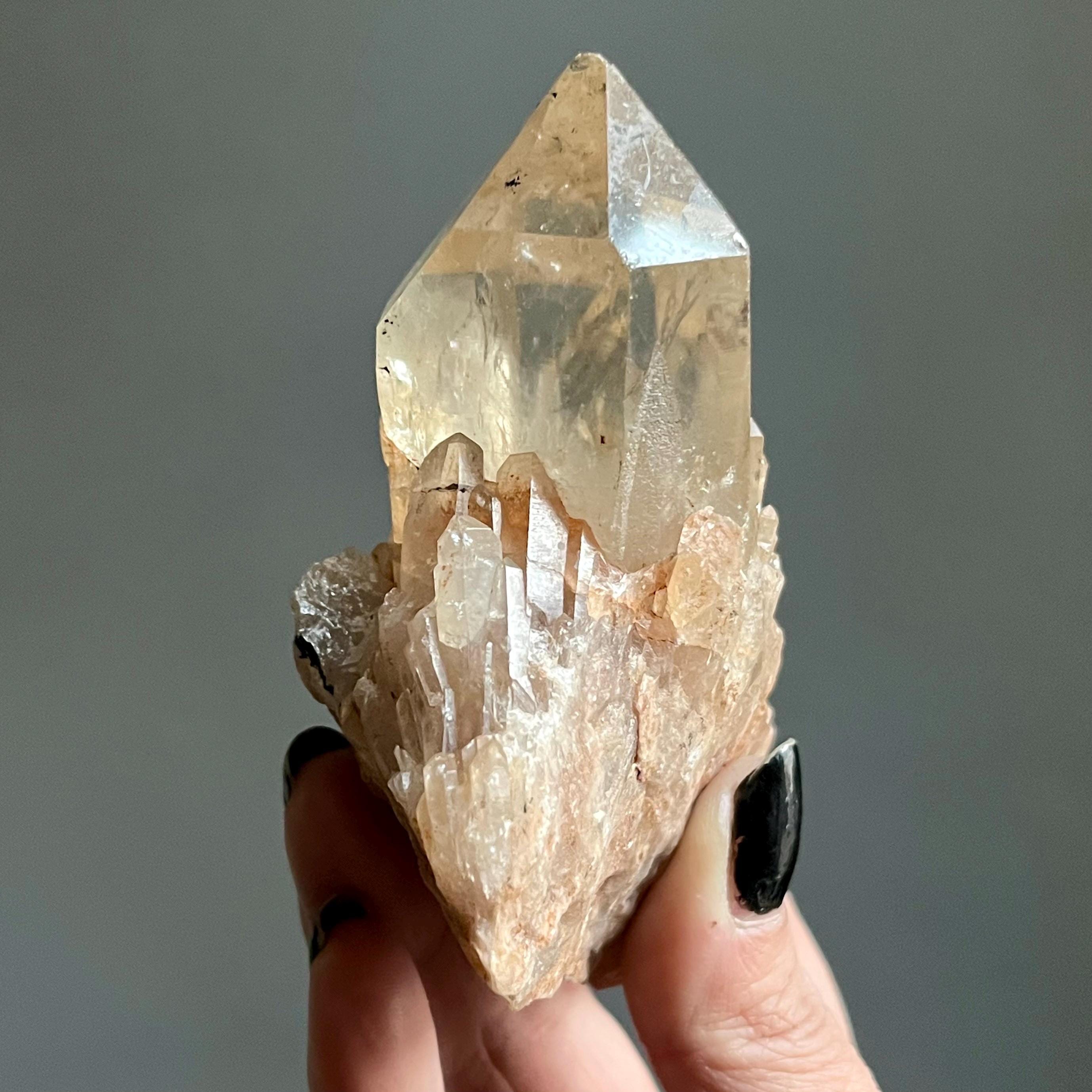Cathedral cascading quartz terminations wrap around this wild stone, the formation of the piece itself speaking to the stoneโs intention.