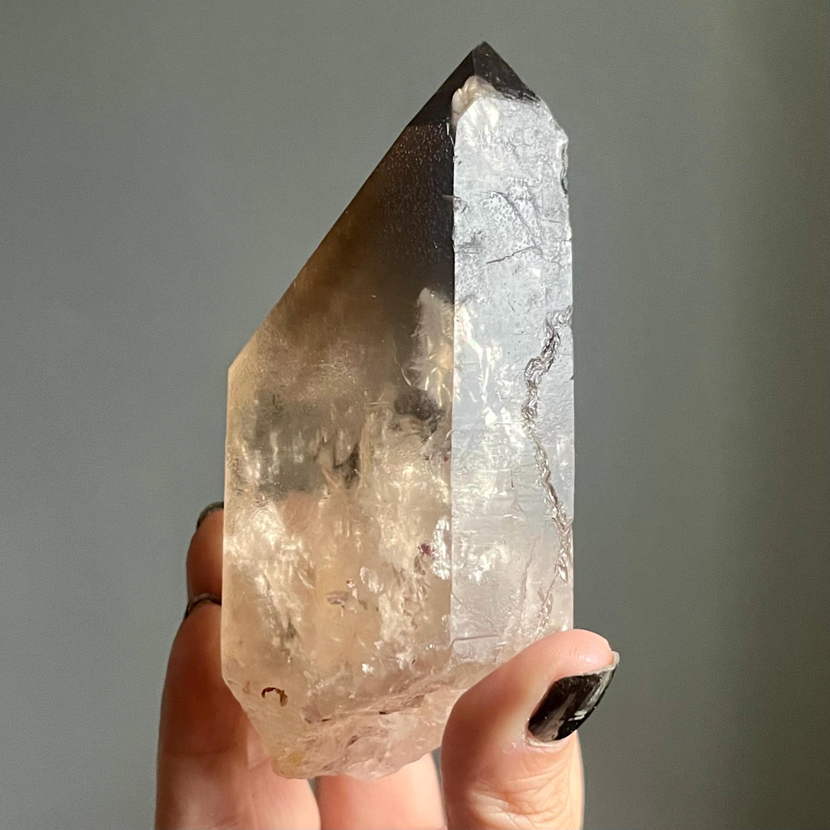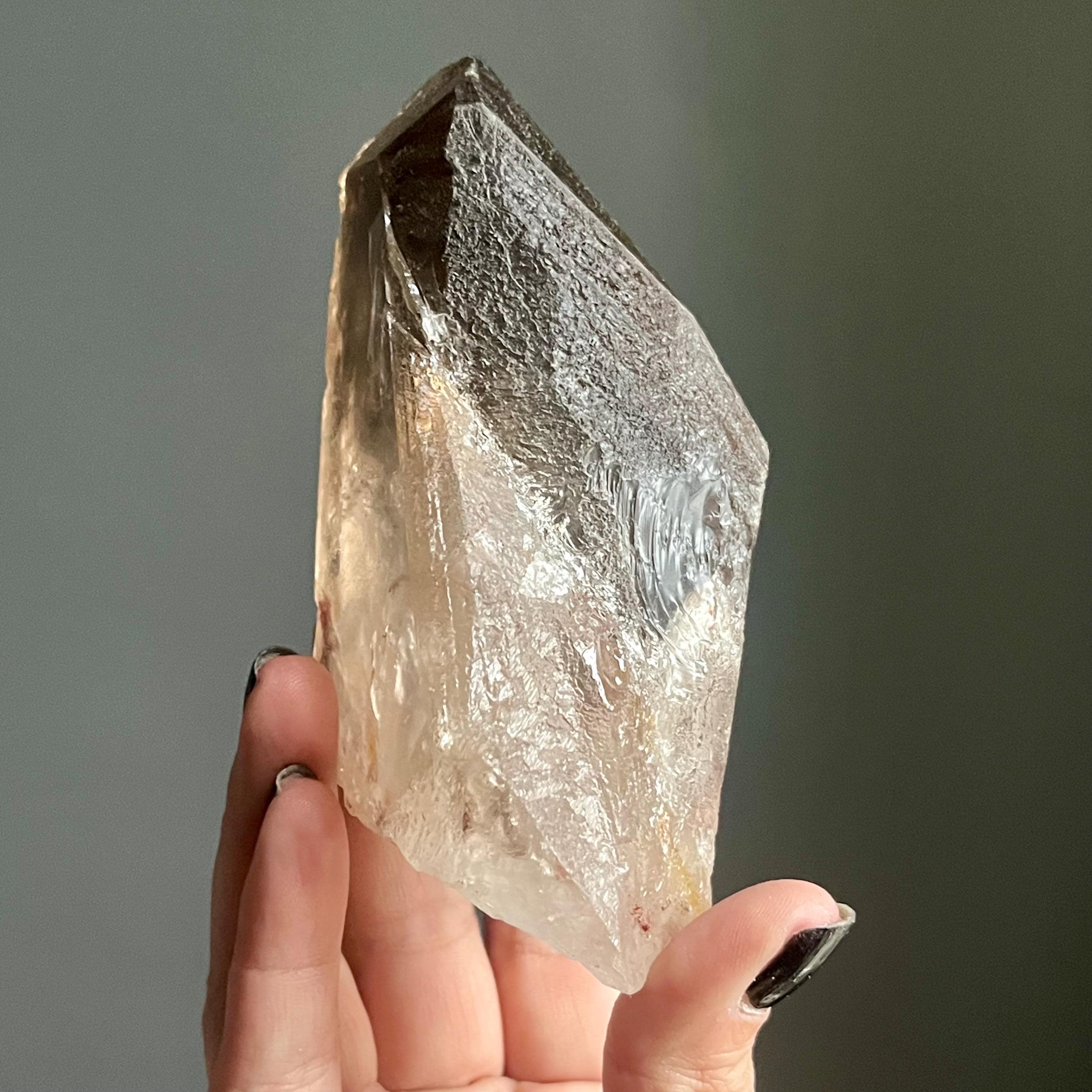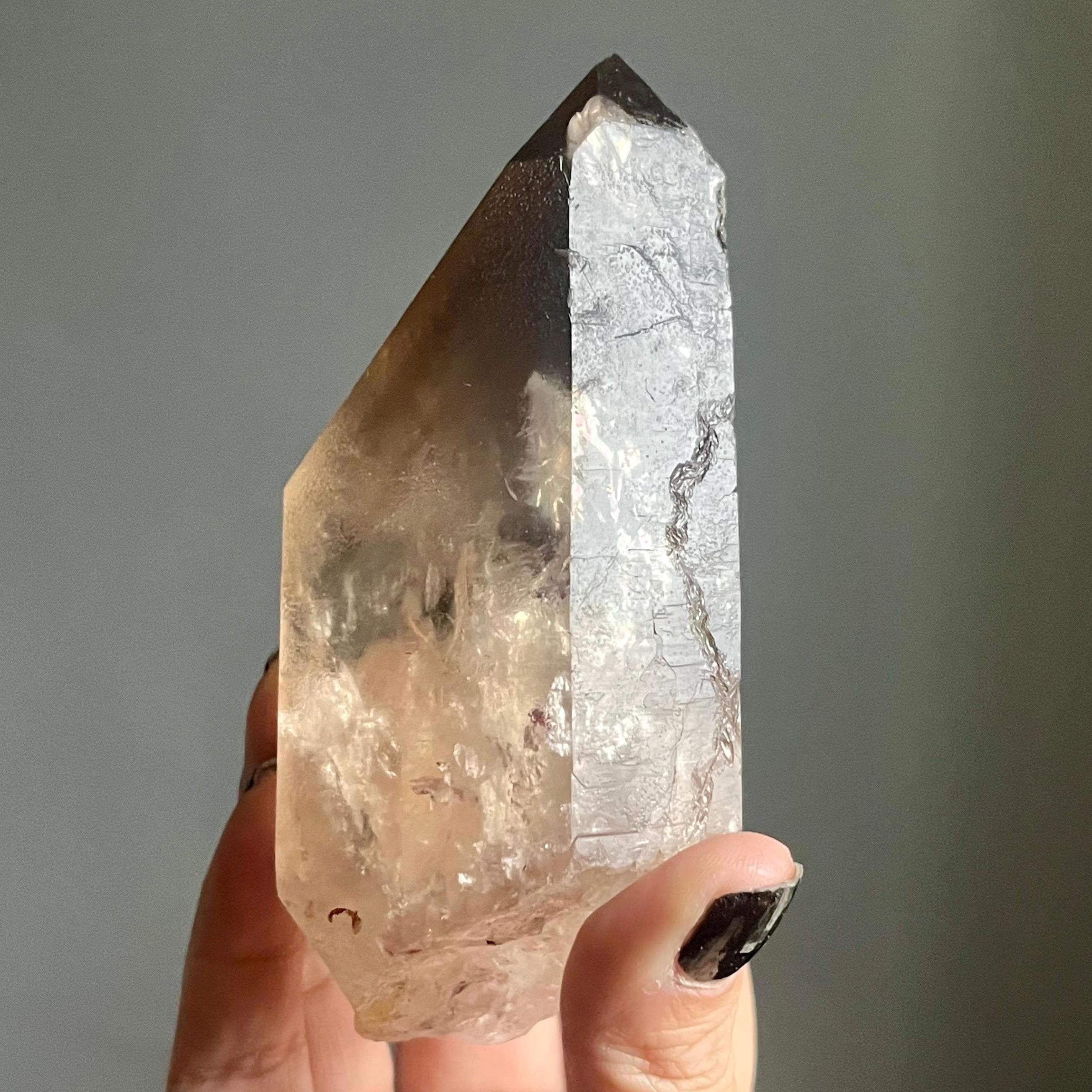 In the spaces where light an angle overlap, layers of generational smoky phantoms sing of this wild crystal’s evolution.