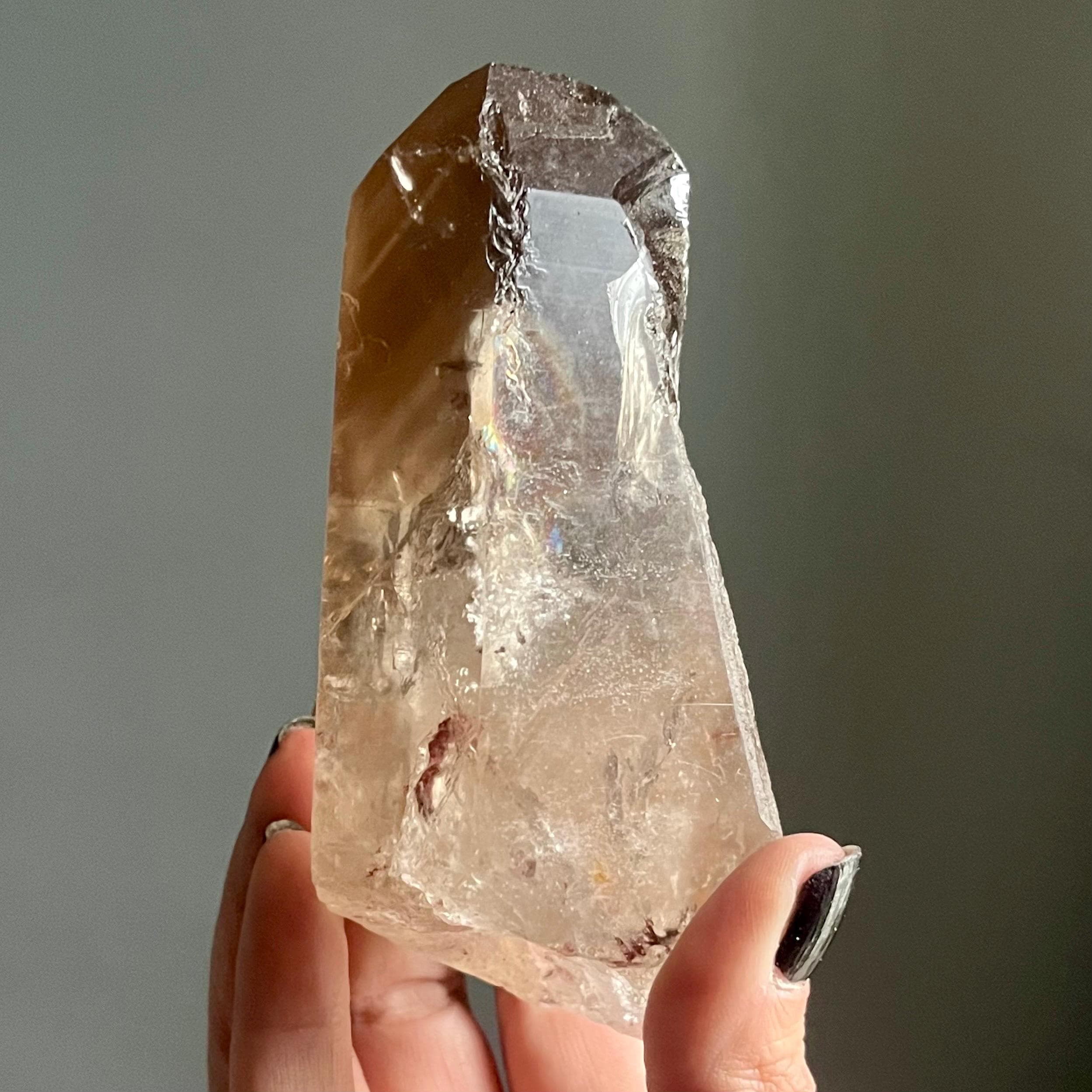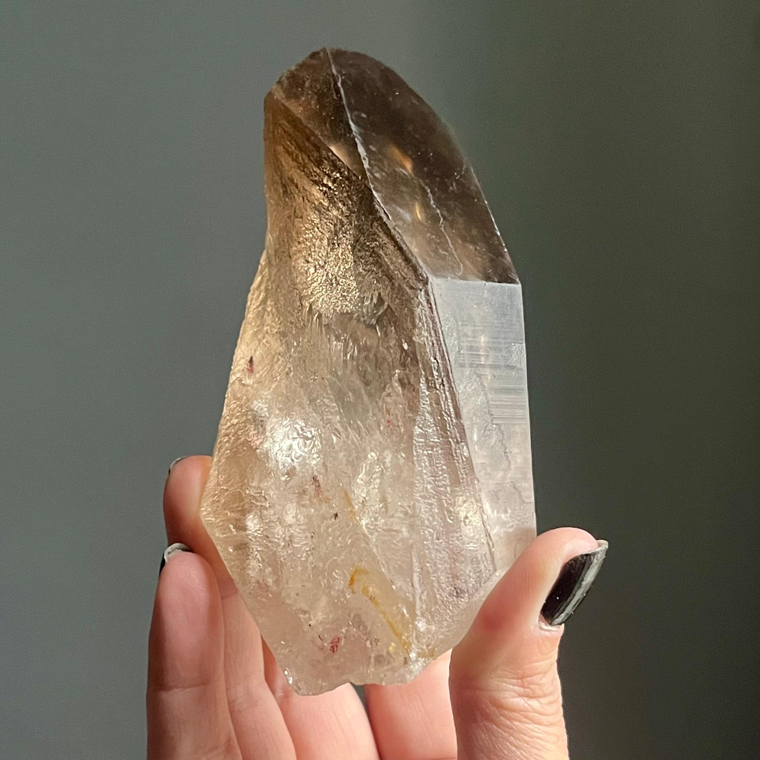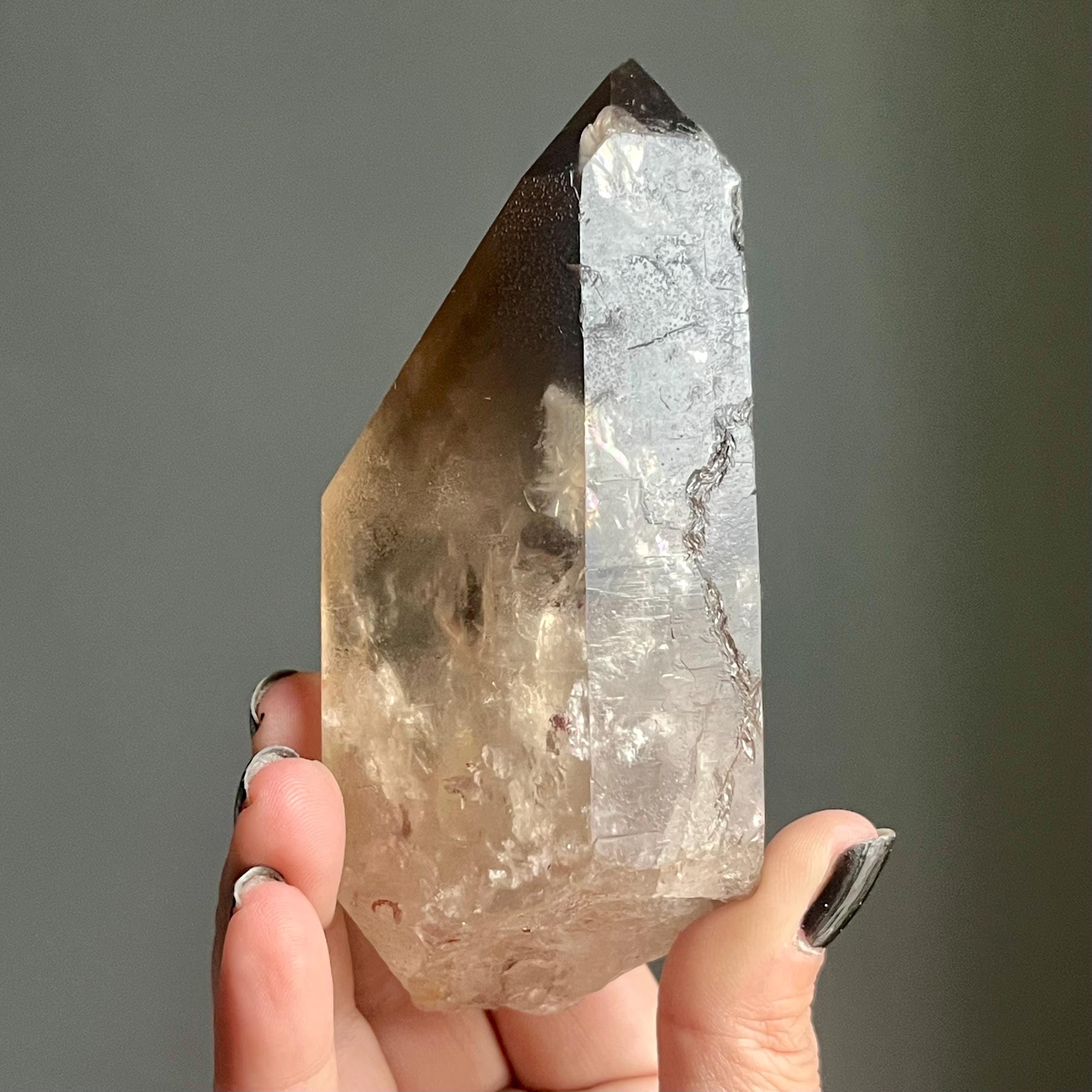 In the spaces where light an angle overlap, layers of generational smoky phantoms sing of this wild crystal’s evolution.