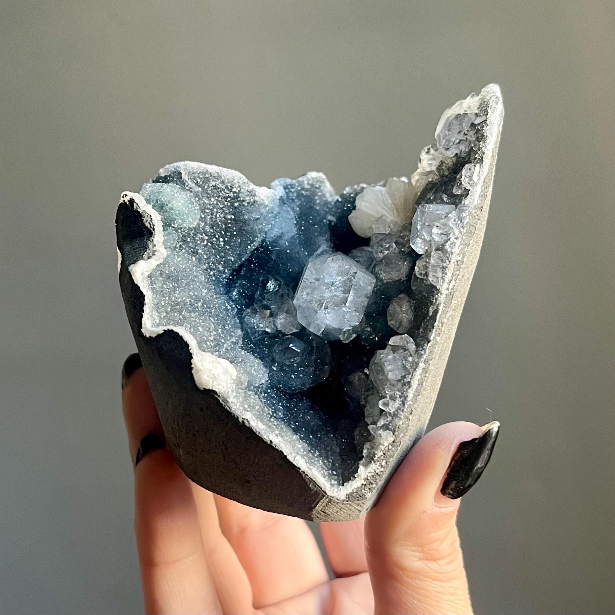 Blue chalcedony is a stone of truth, and itβs often said that the only real truth is love. It shows up to gentle Apophylliteβs high frequency.