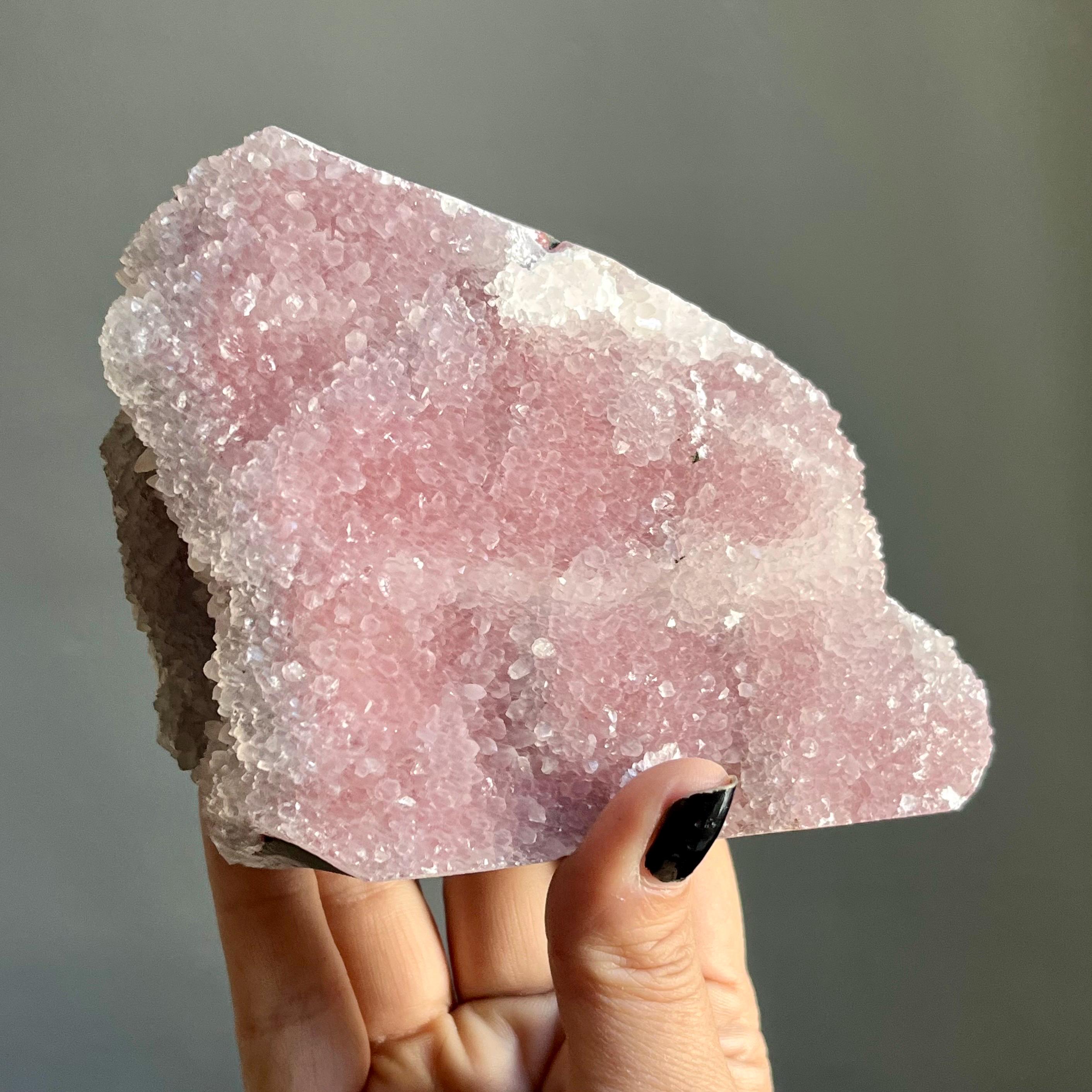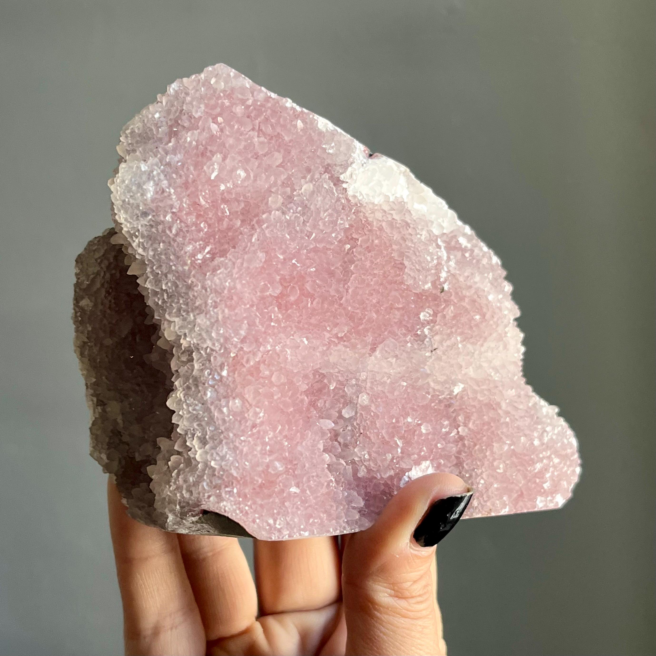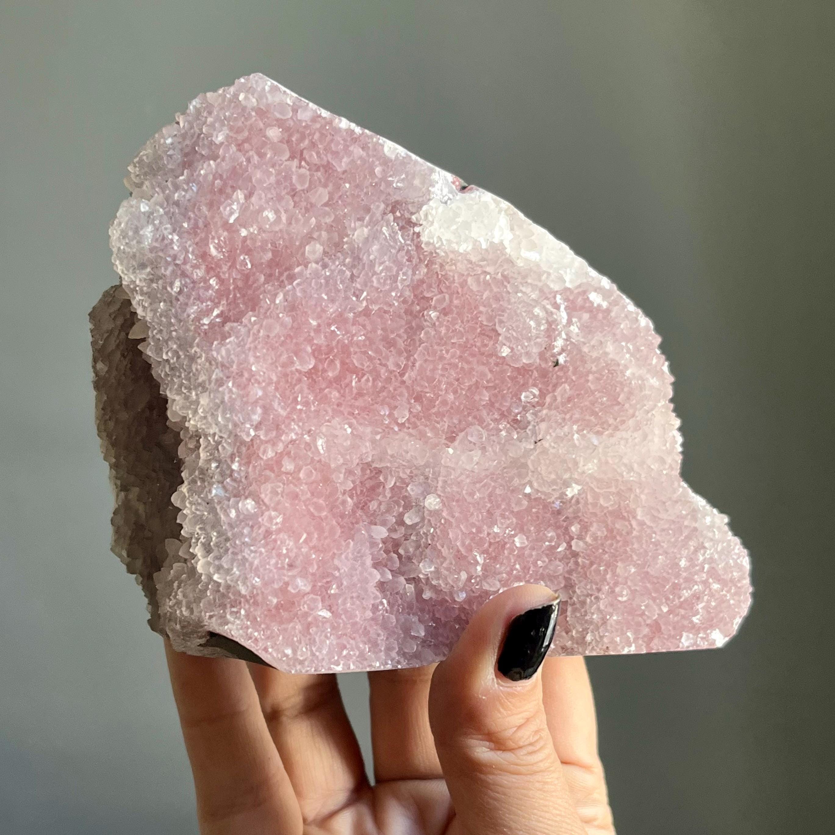 Pink chalcedony sings in the language of the heart, while calling in the energy of the earth. An invitation to show up in this moment, guided by the wisdom of our own internal compass.