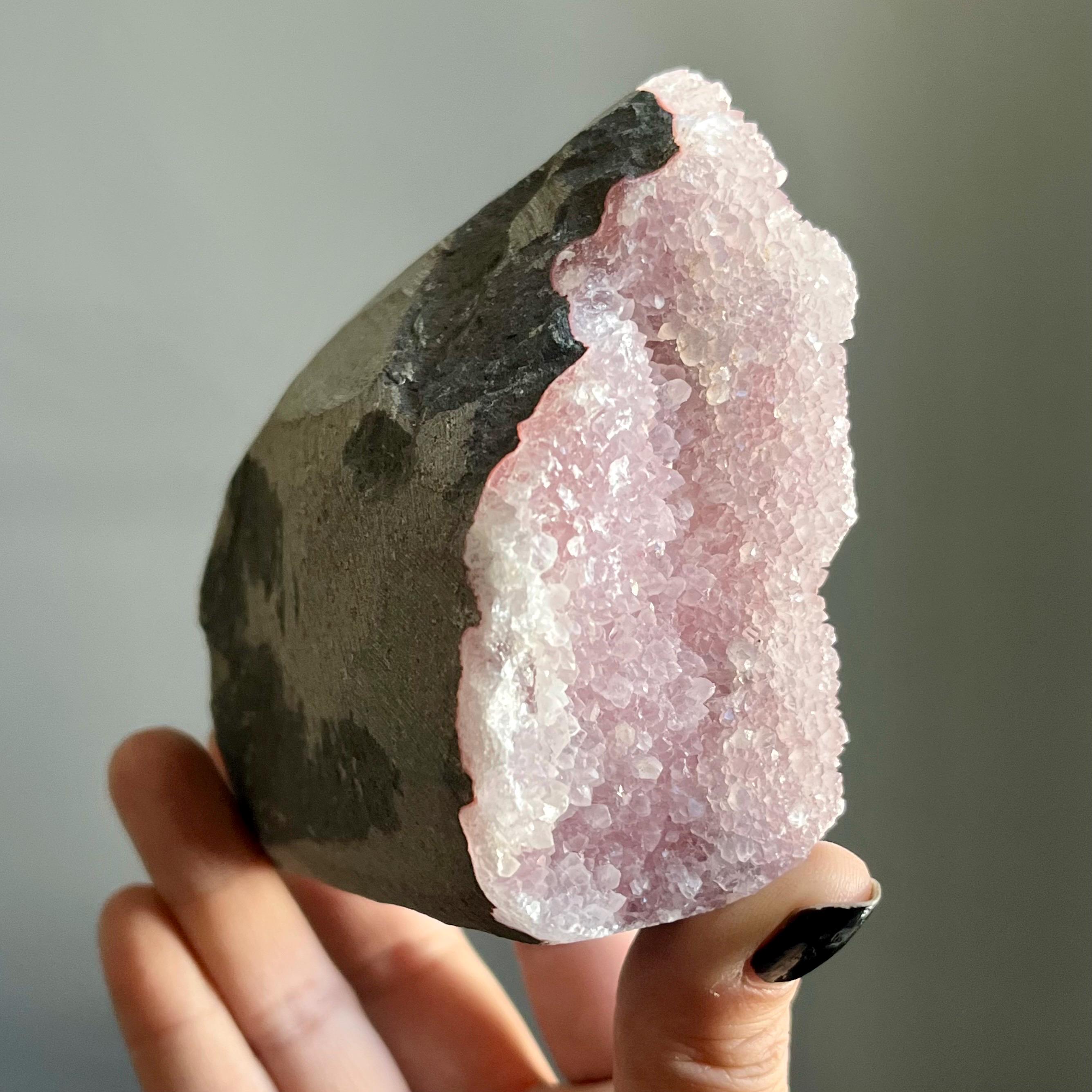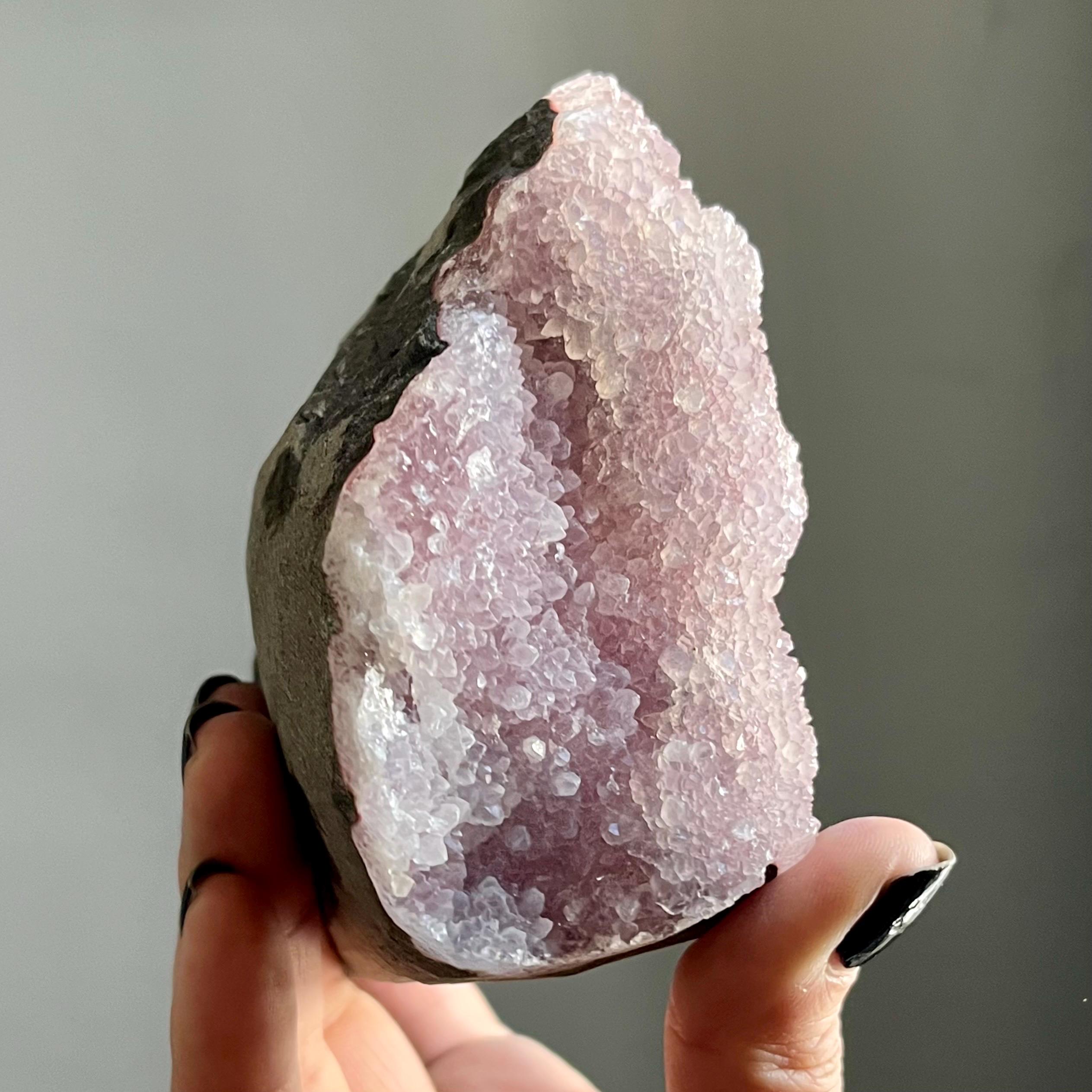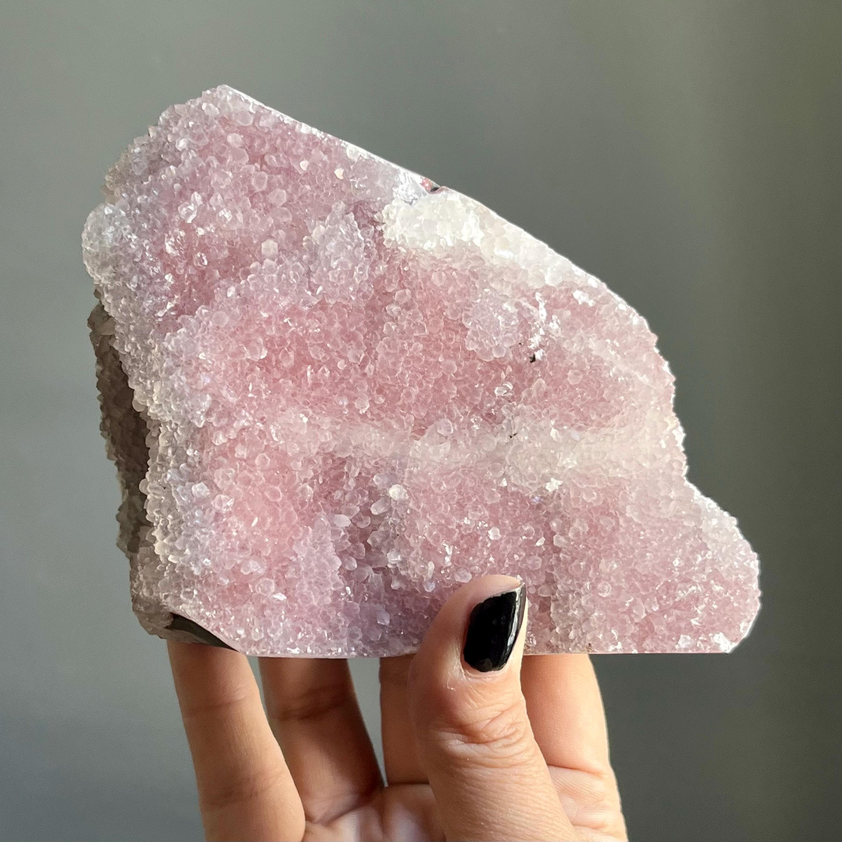 Pink chalcedony sings in the language of the heart, while calling in the energy of the earth. An invitation to show up in this moment, guided by the wisdom of our own internal compass.
