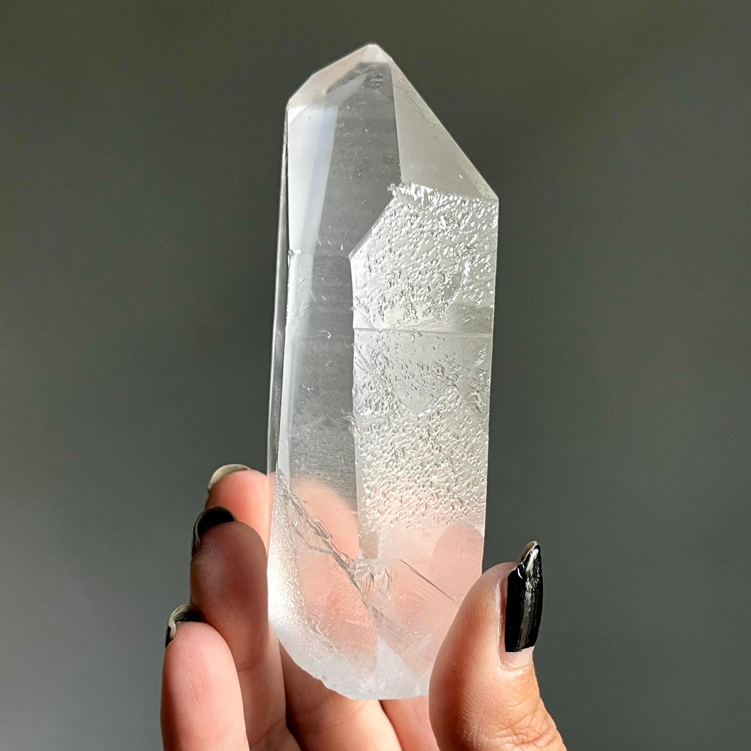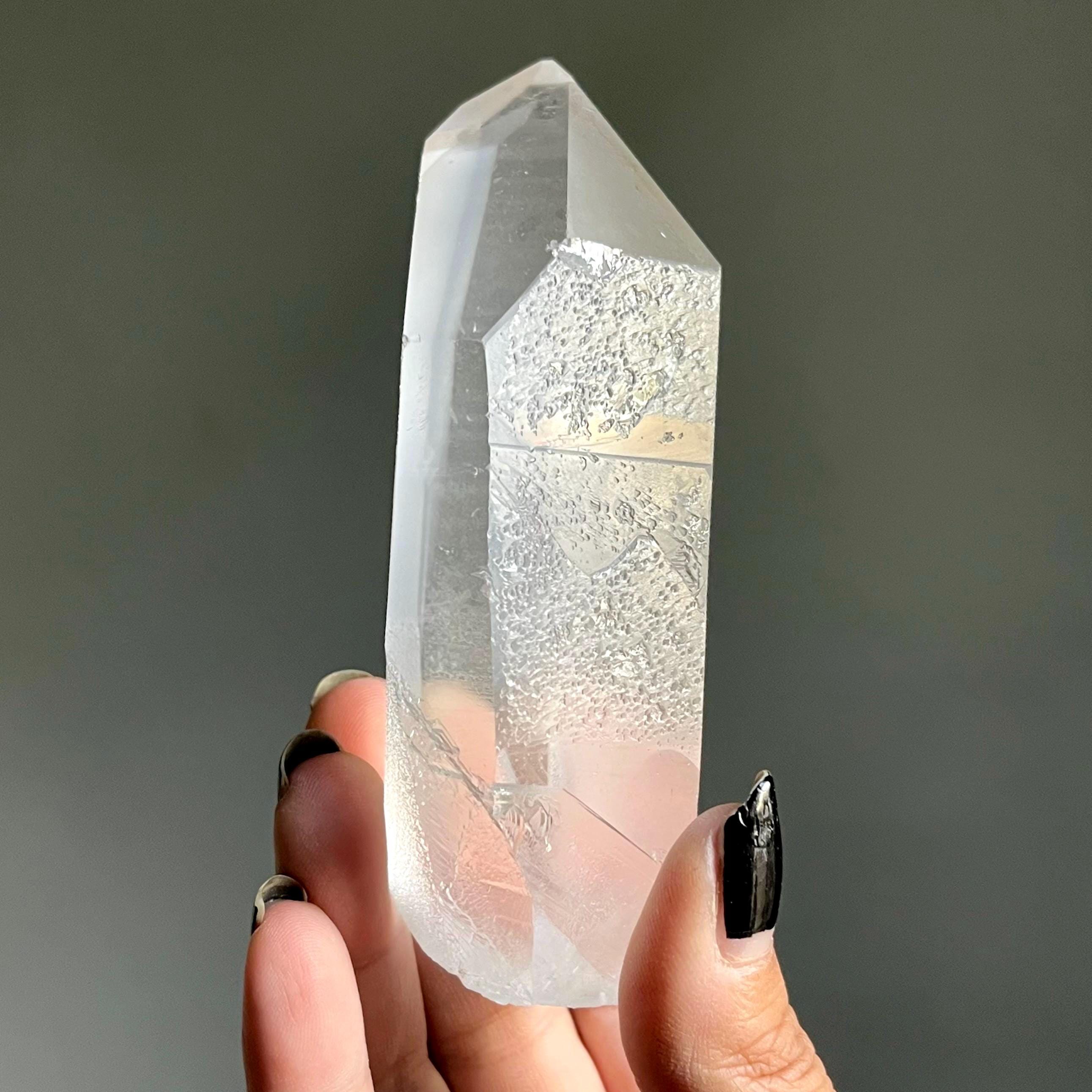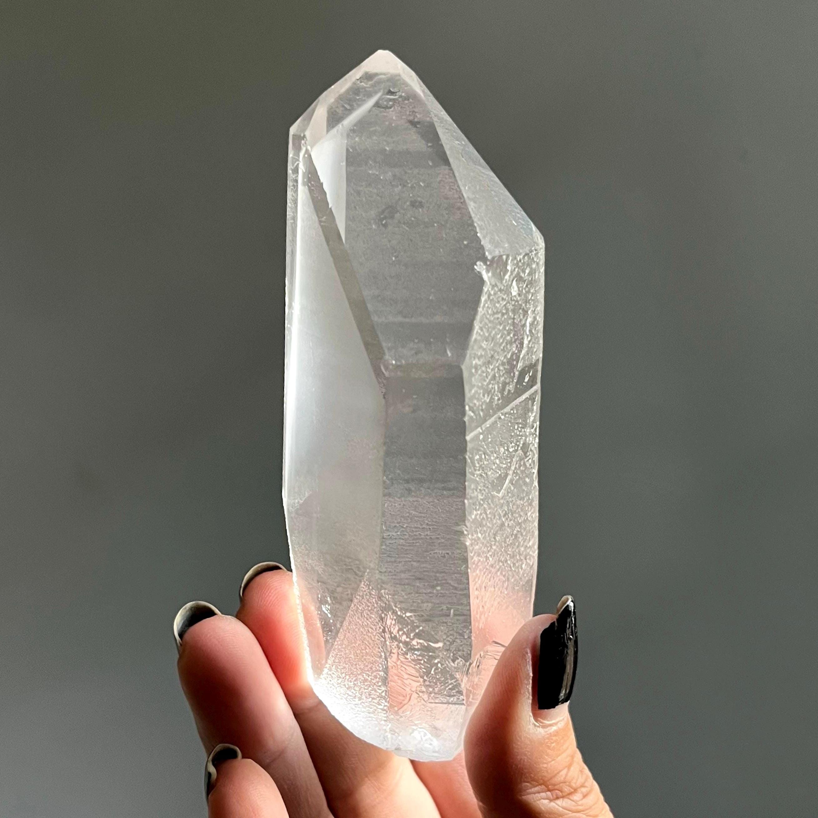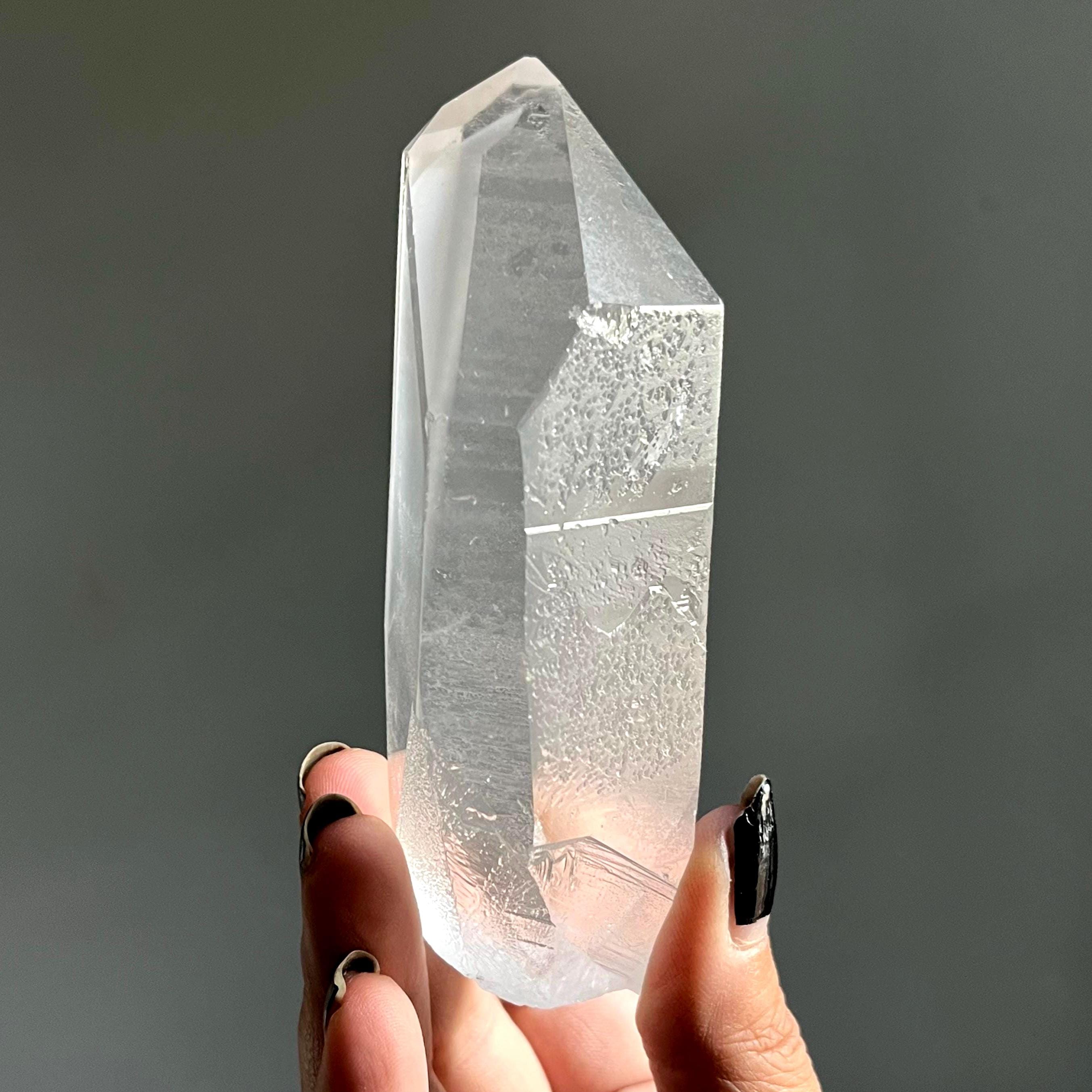 Weighing almost two pounds, this extraordinary lemurian quartz Crystal statement piece is wild and untouched, scrolled in the ancient language of sacred geometry.