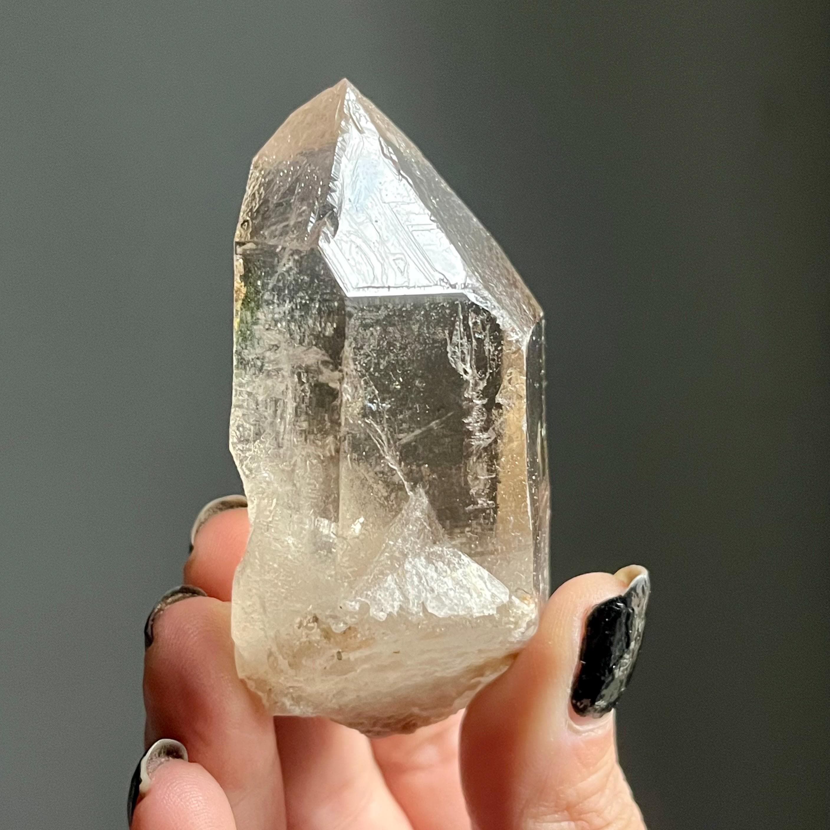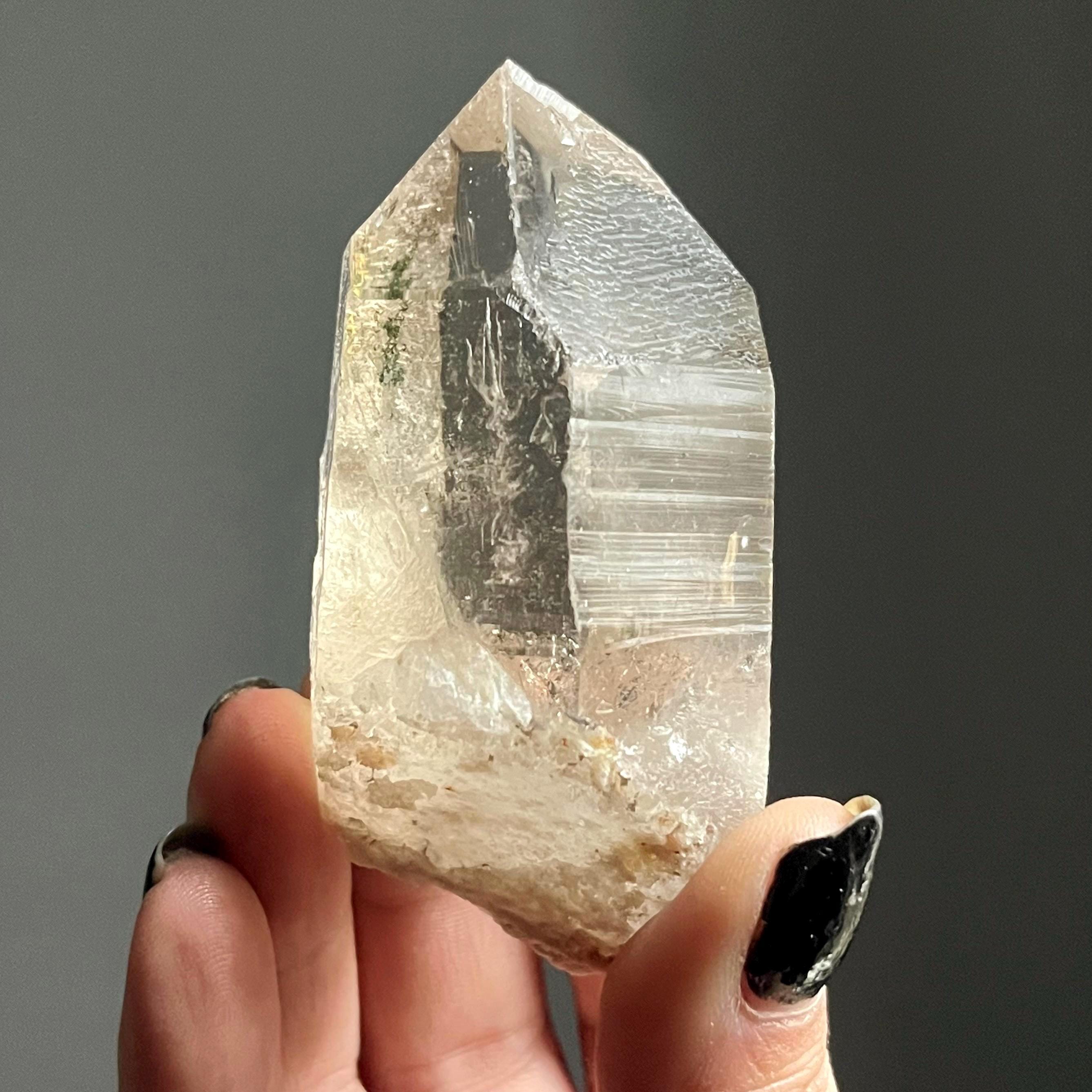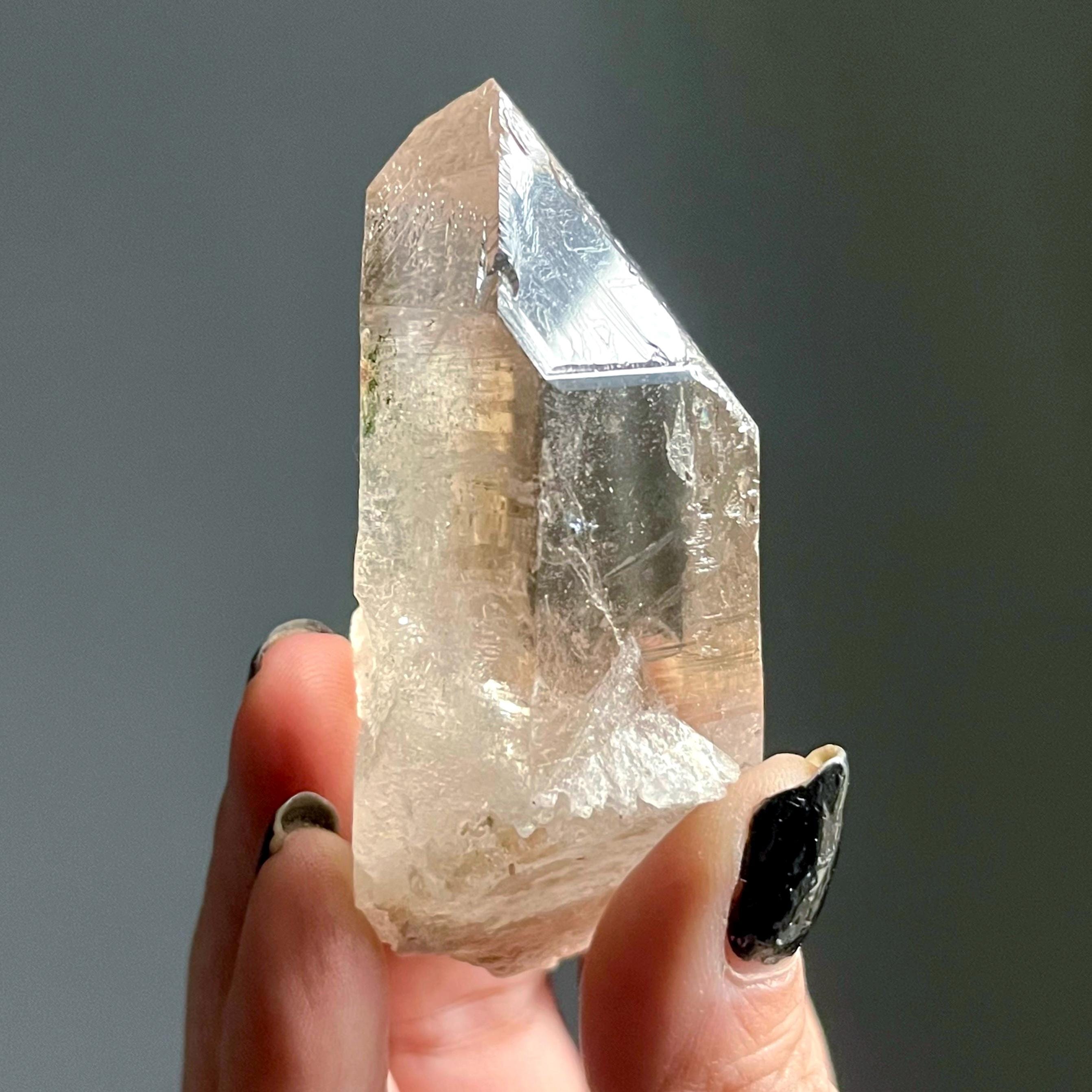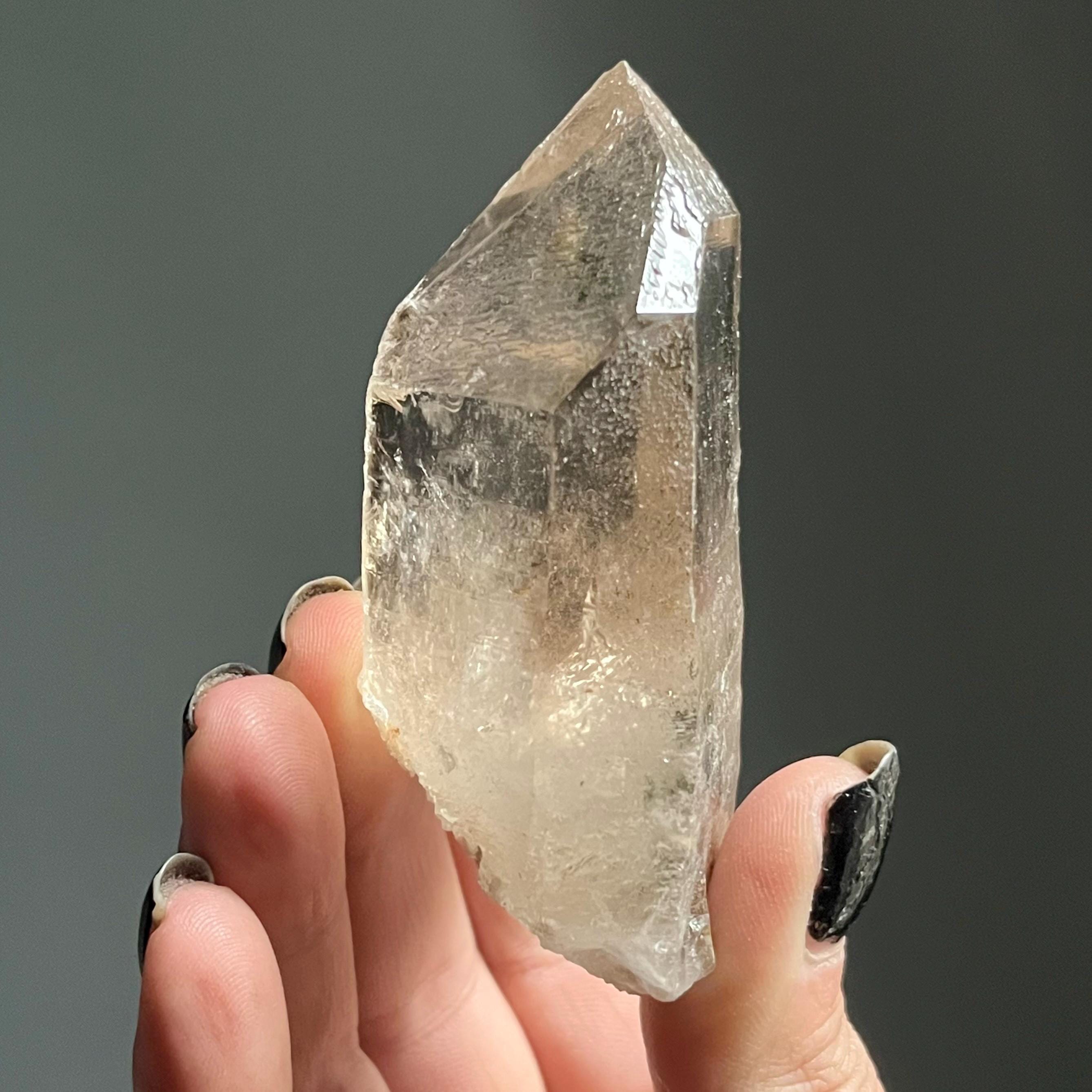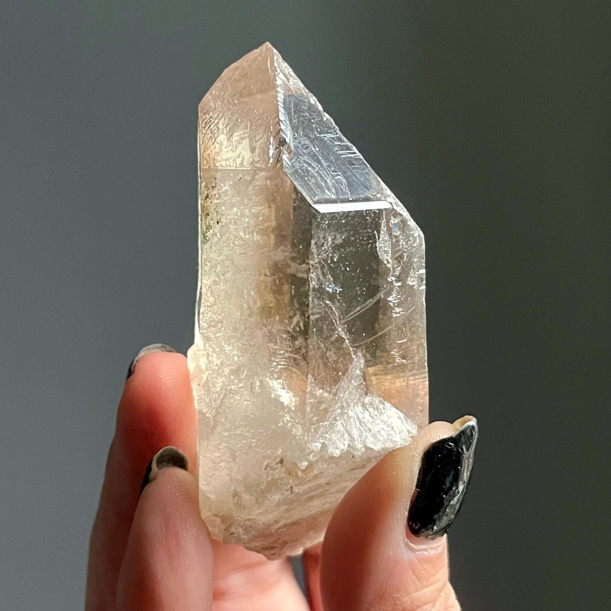 Wild and untreated, this wild stone manifests with a natural 7-3 channeling crystal termination. Channeling quartz is the first order in the master crystal triad.