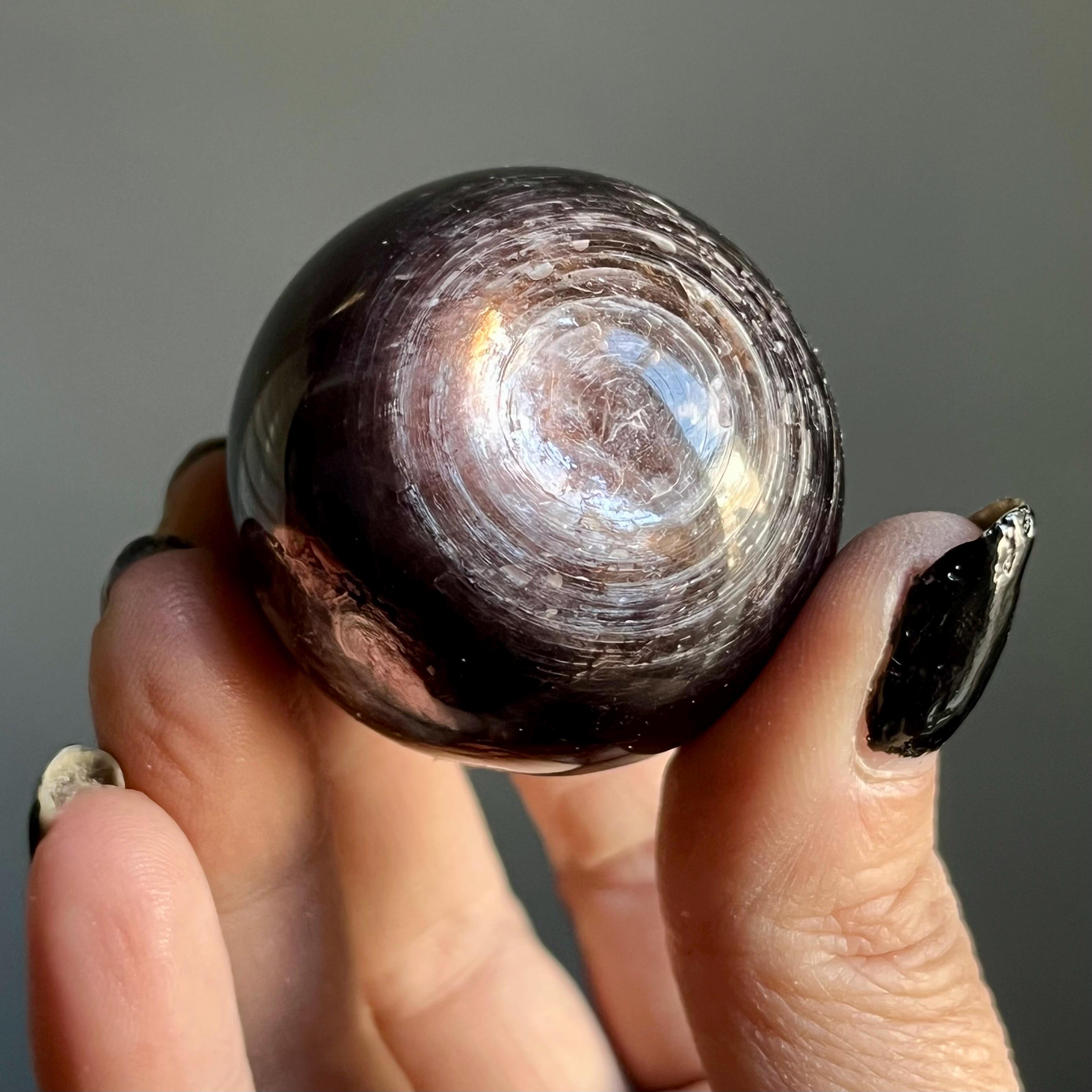 The spirit of any wild stone speaks differently to each of us. The story of this extraordinary, rare lepidolite crystal sphere embodies the language of light.