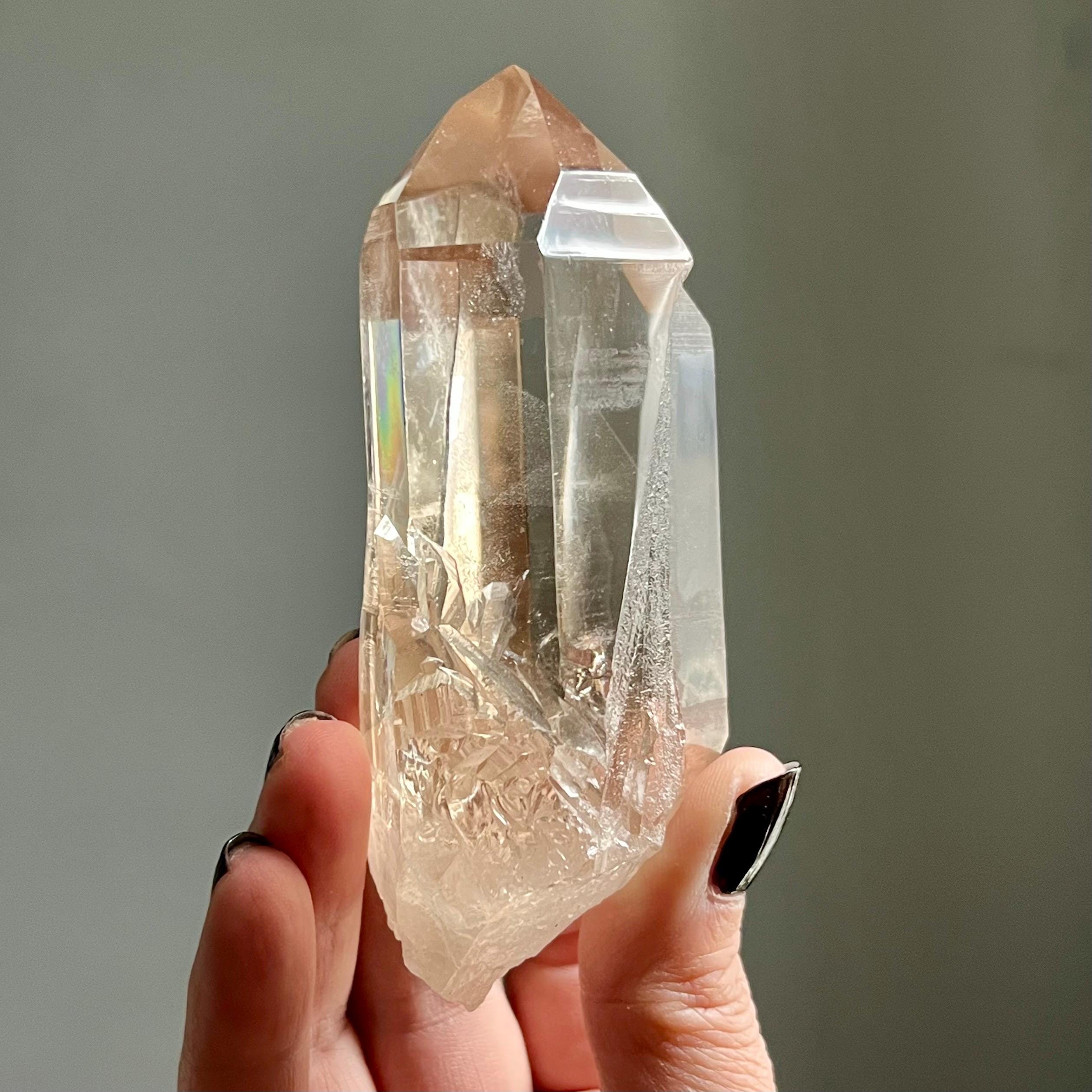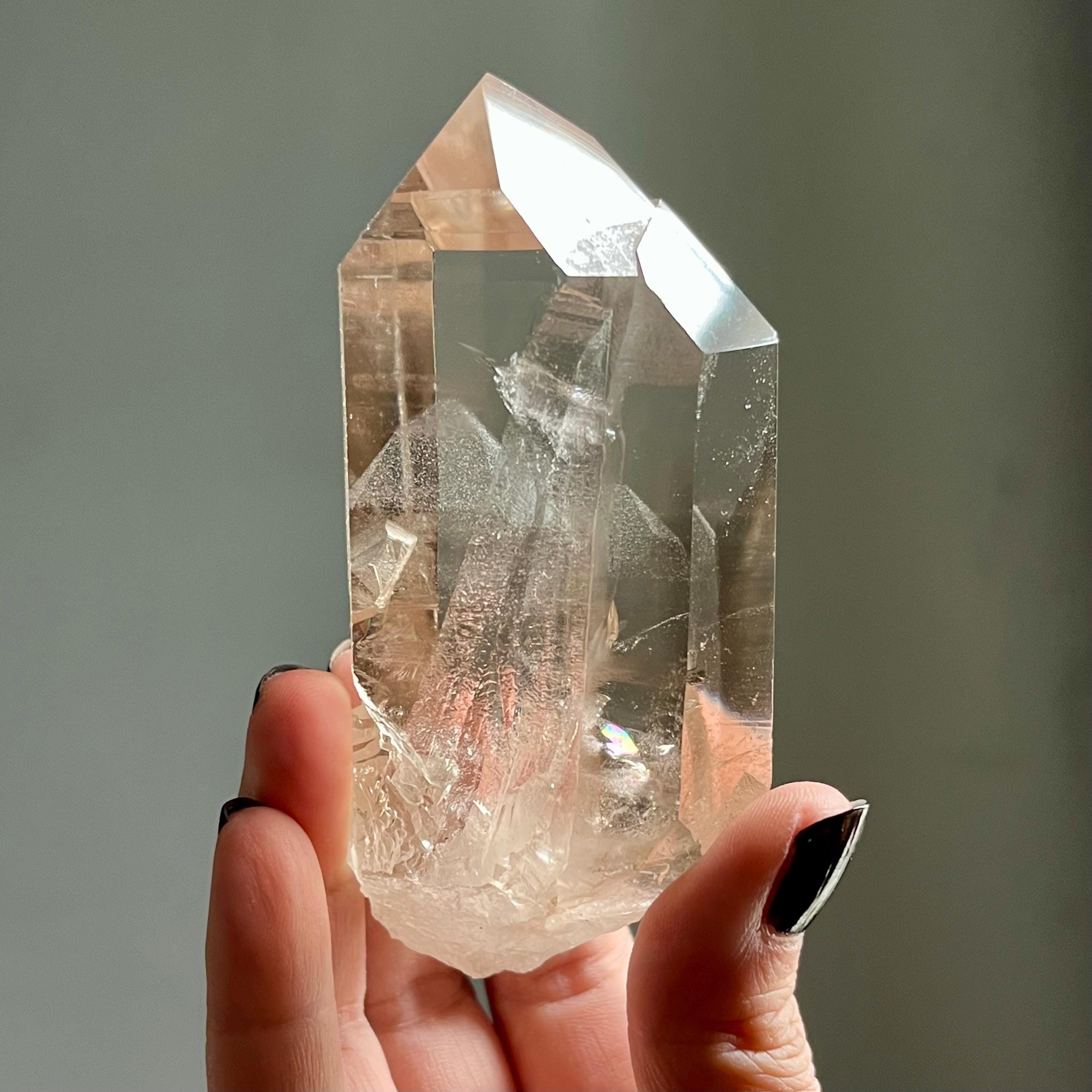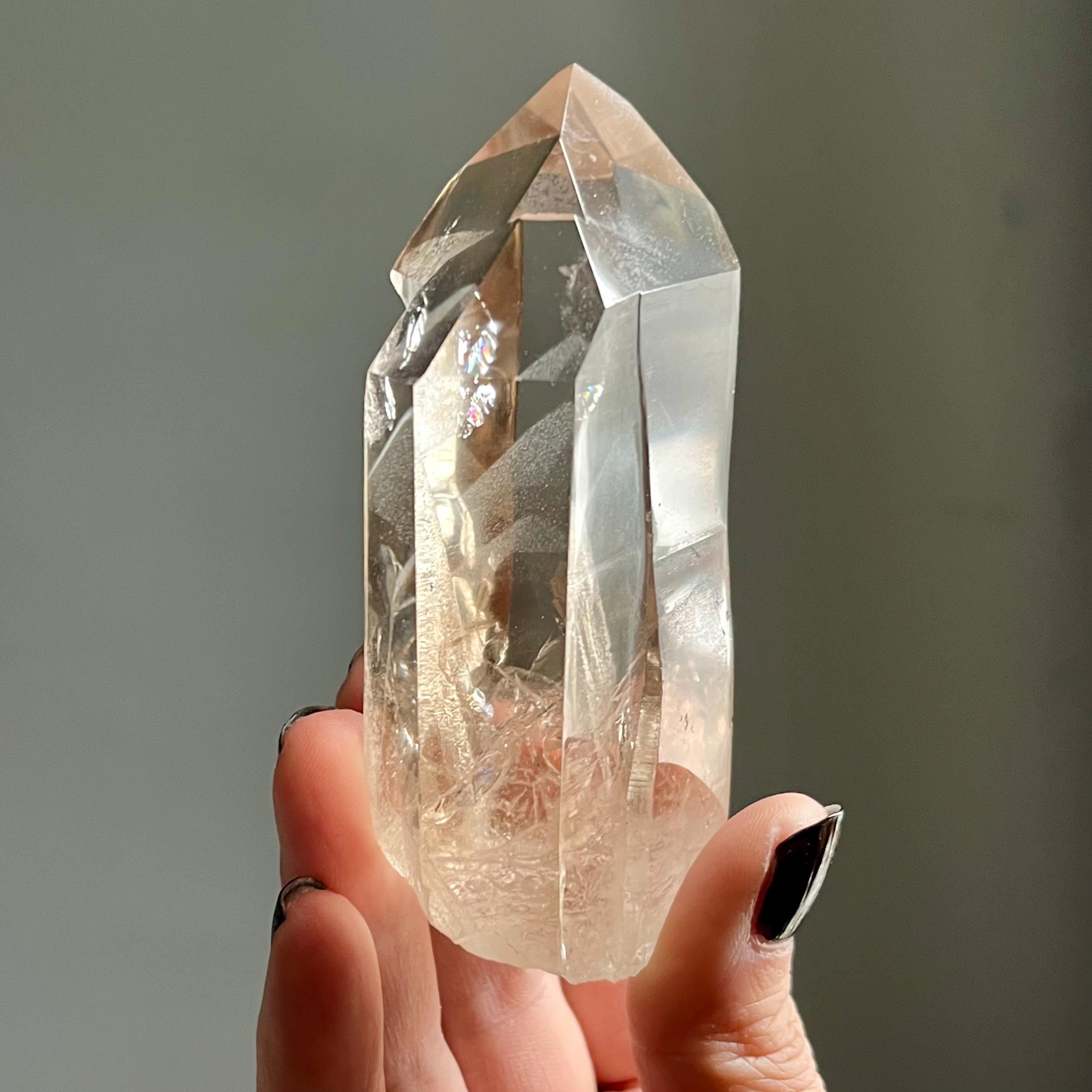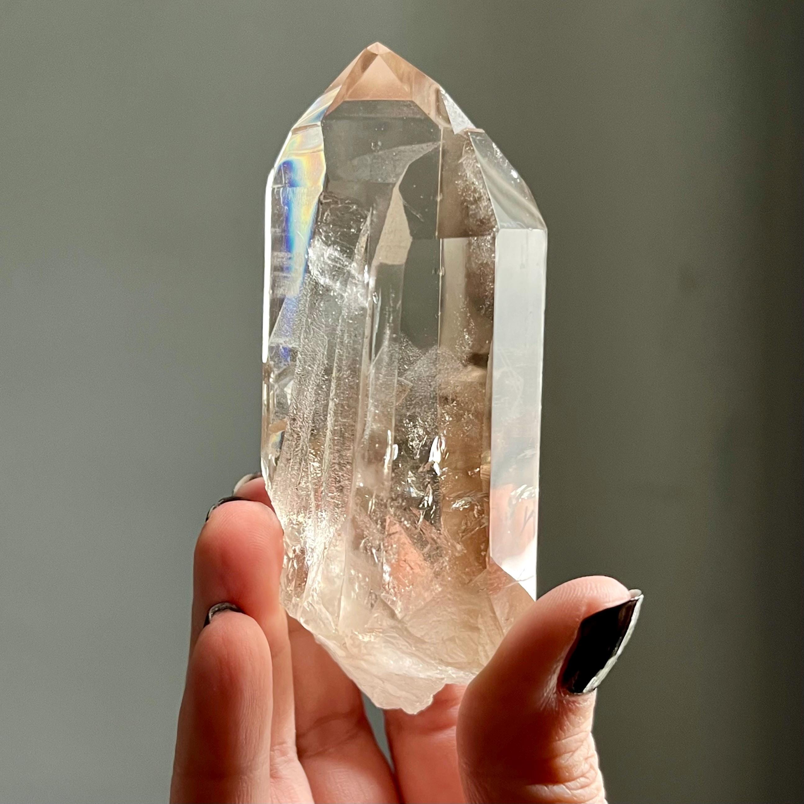 Natural prism quartz bends the light, breaks it down and then breaks it wide open. Calls in the full spectrum of prismatix color, which speaks to the whole of our energetic self.