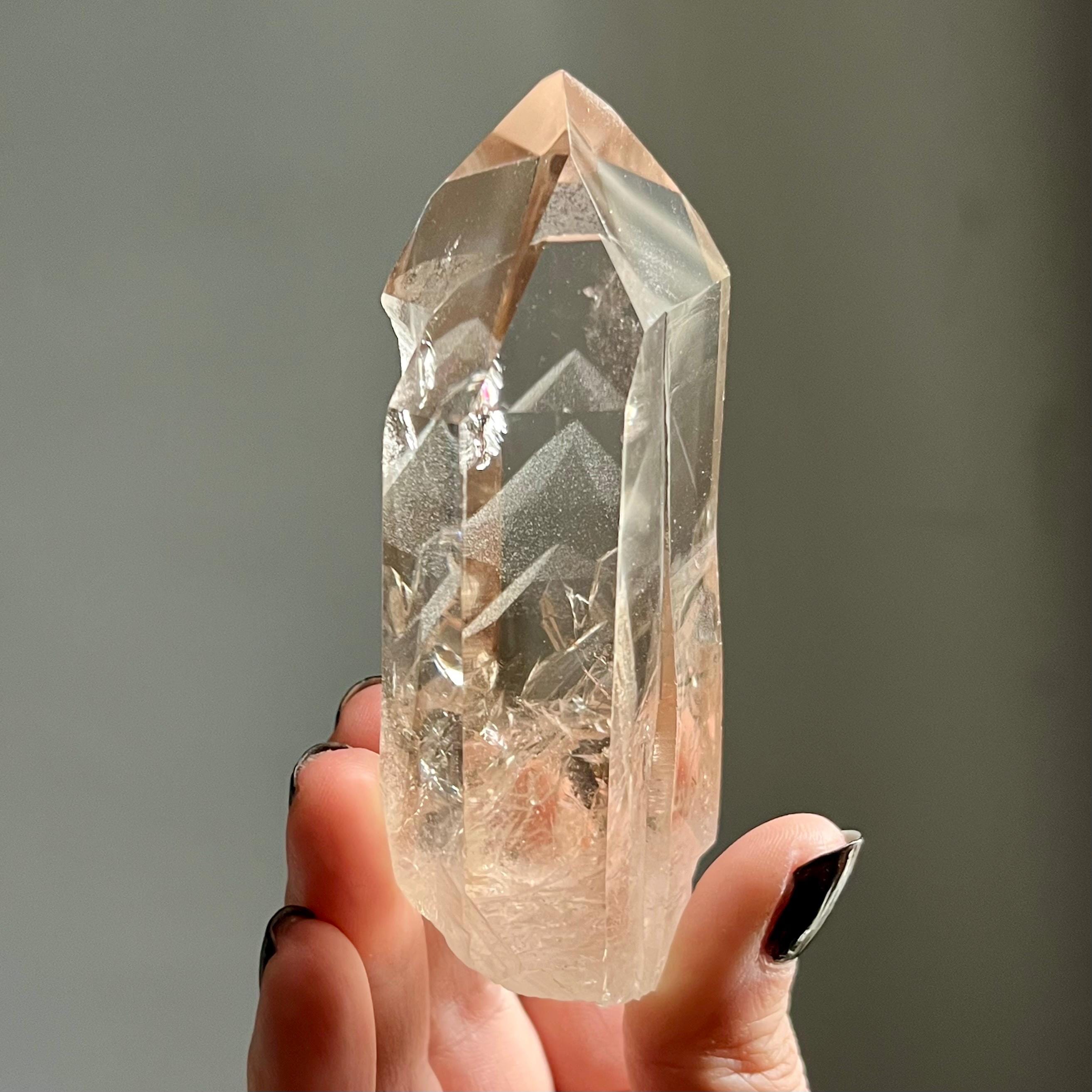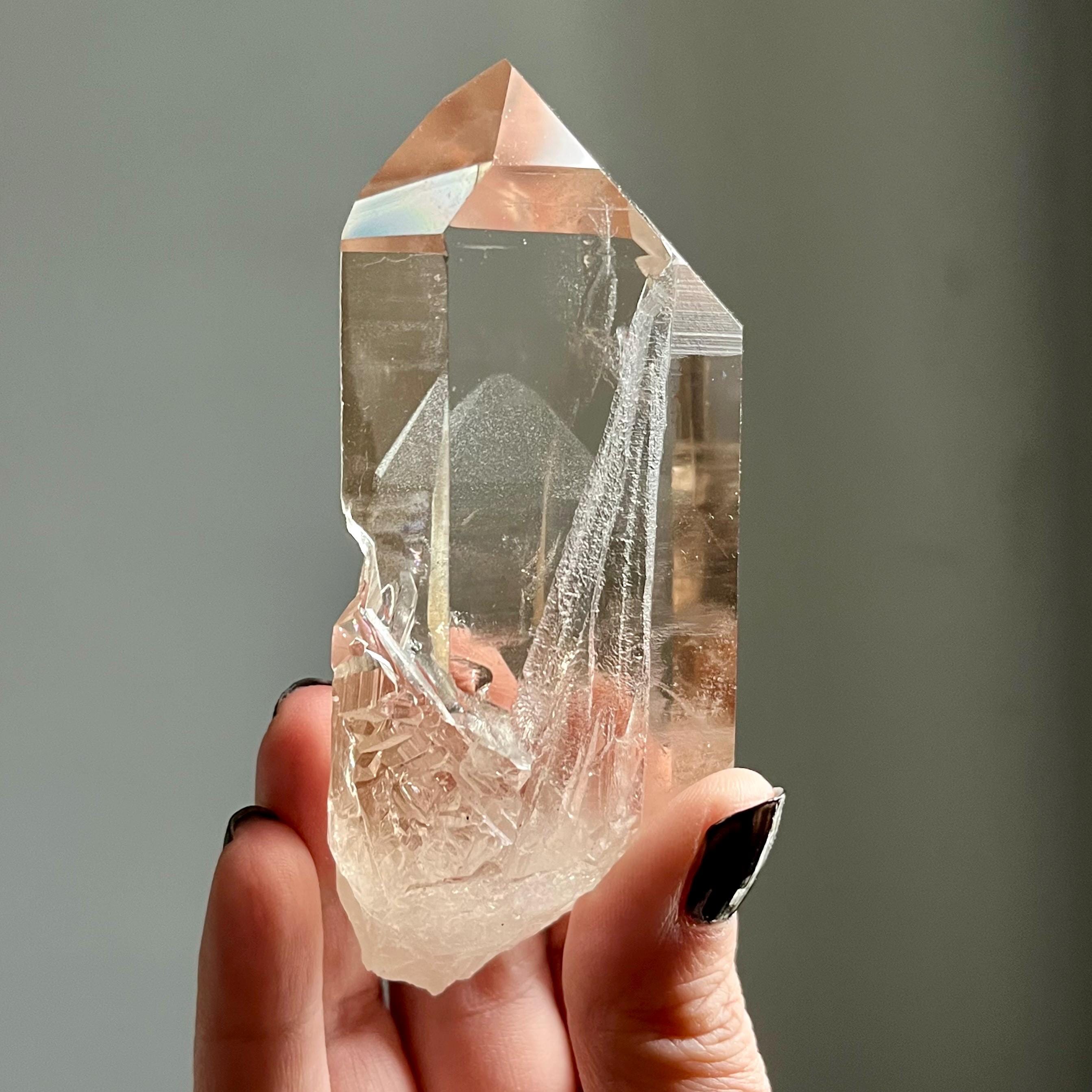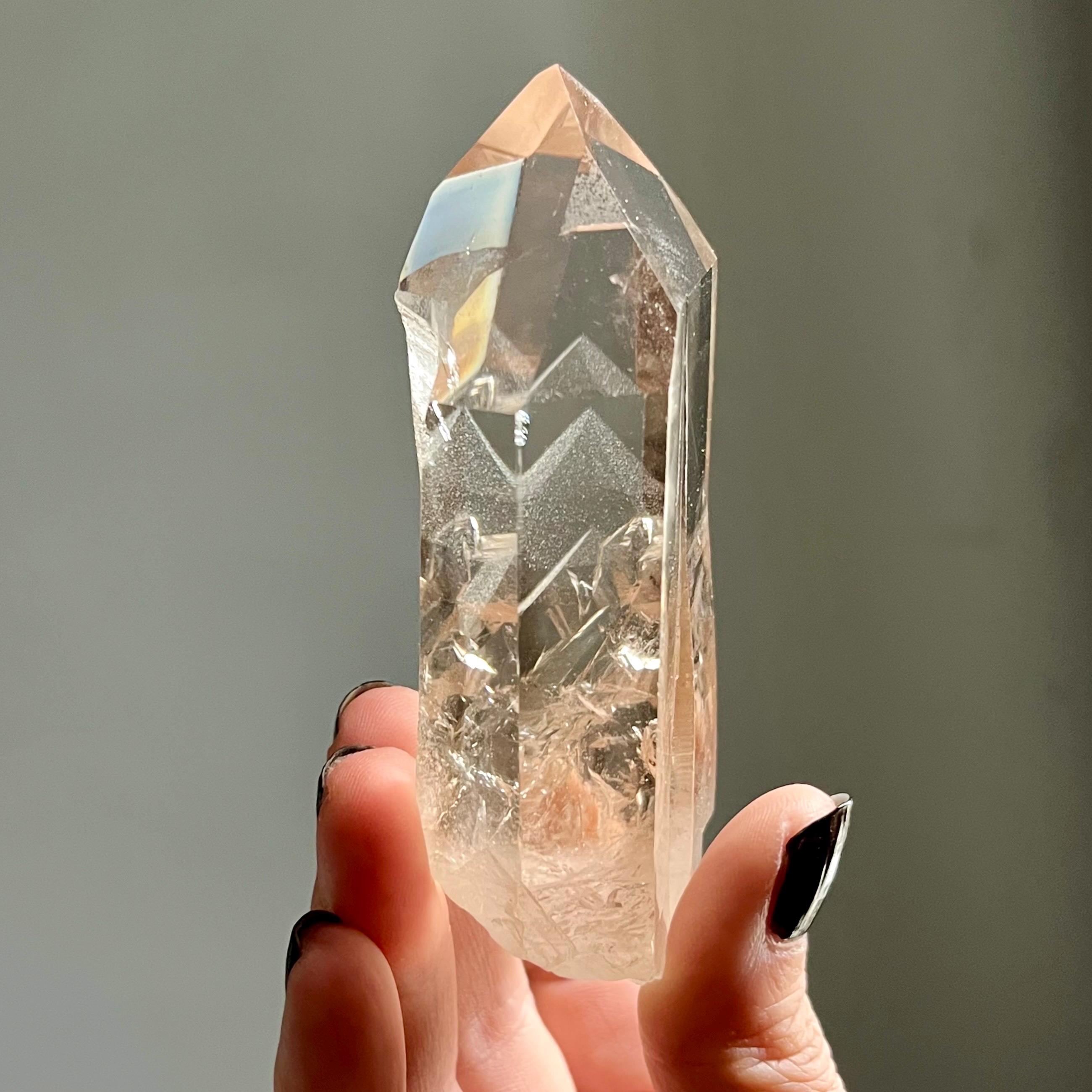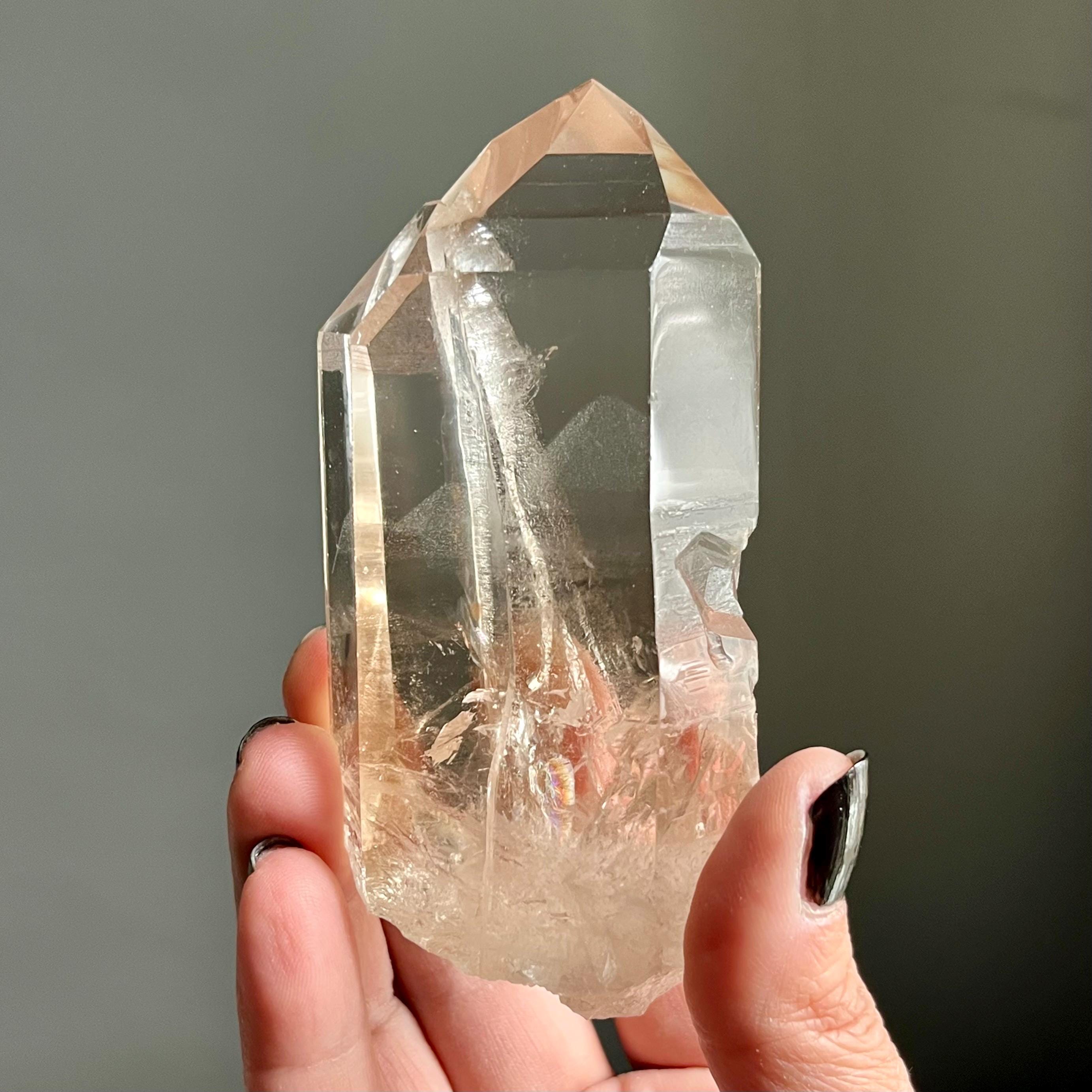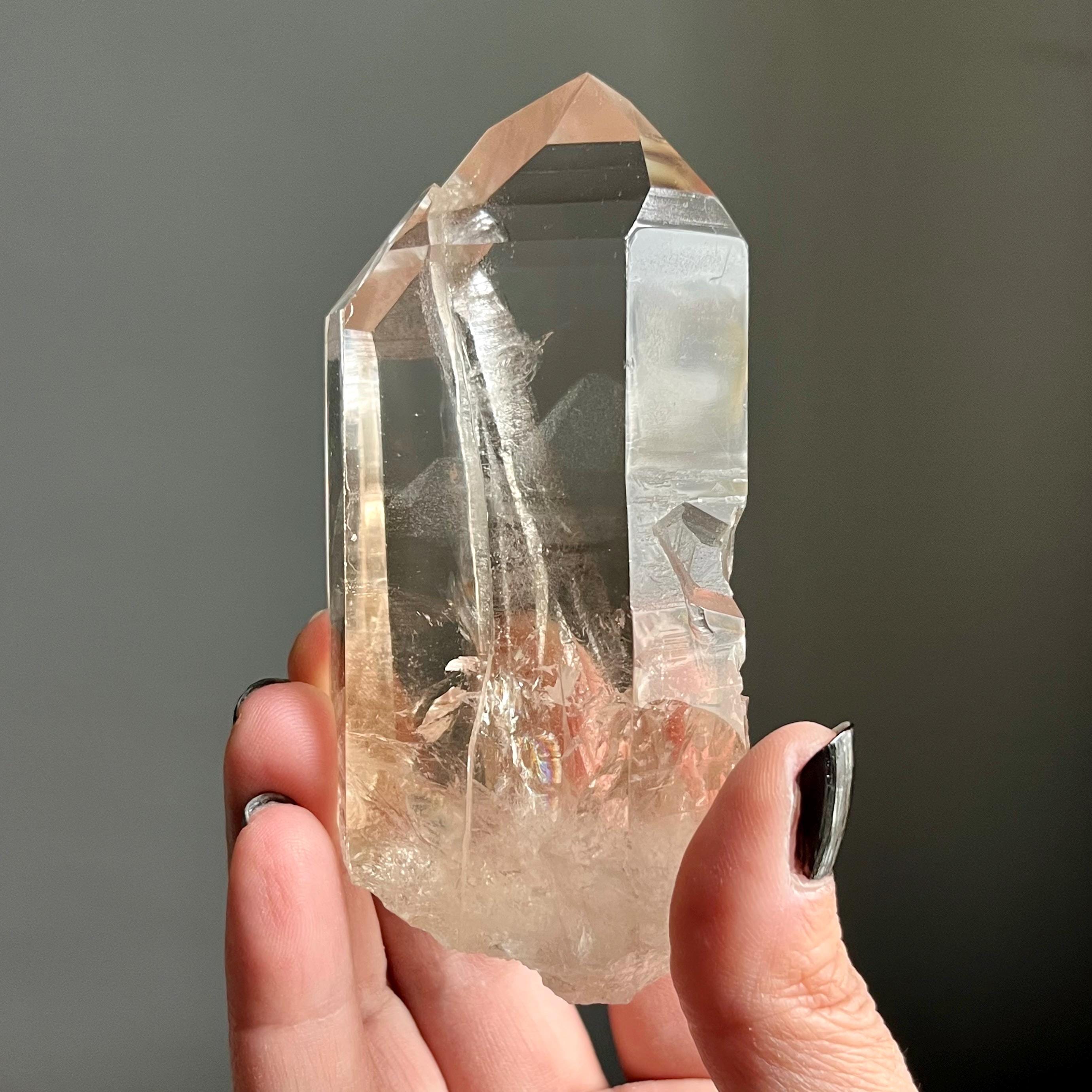 Natural prism quartz bends the light, breaks it down and then breaks it wide open. Calls in the full spectrum of prismatix color, which speaks to the whole of our energetic self.