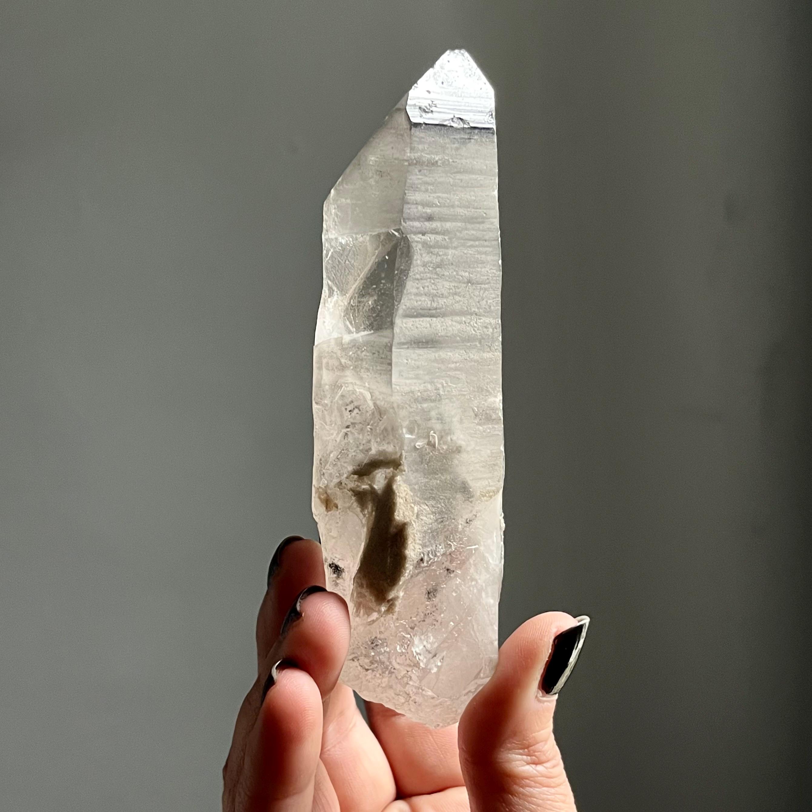 A master teacher, this self healed quartz both supports our journey though the shadows and calls in the energy of light to illuminate any splintered parts of self.