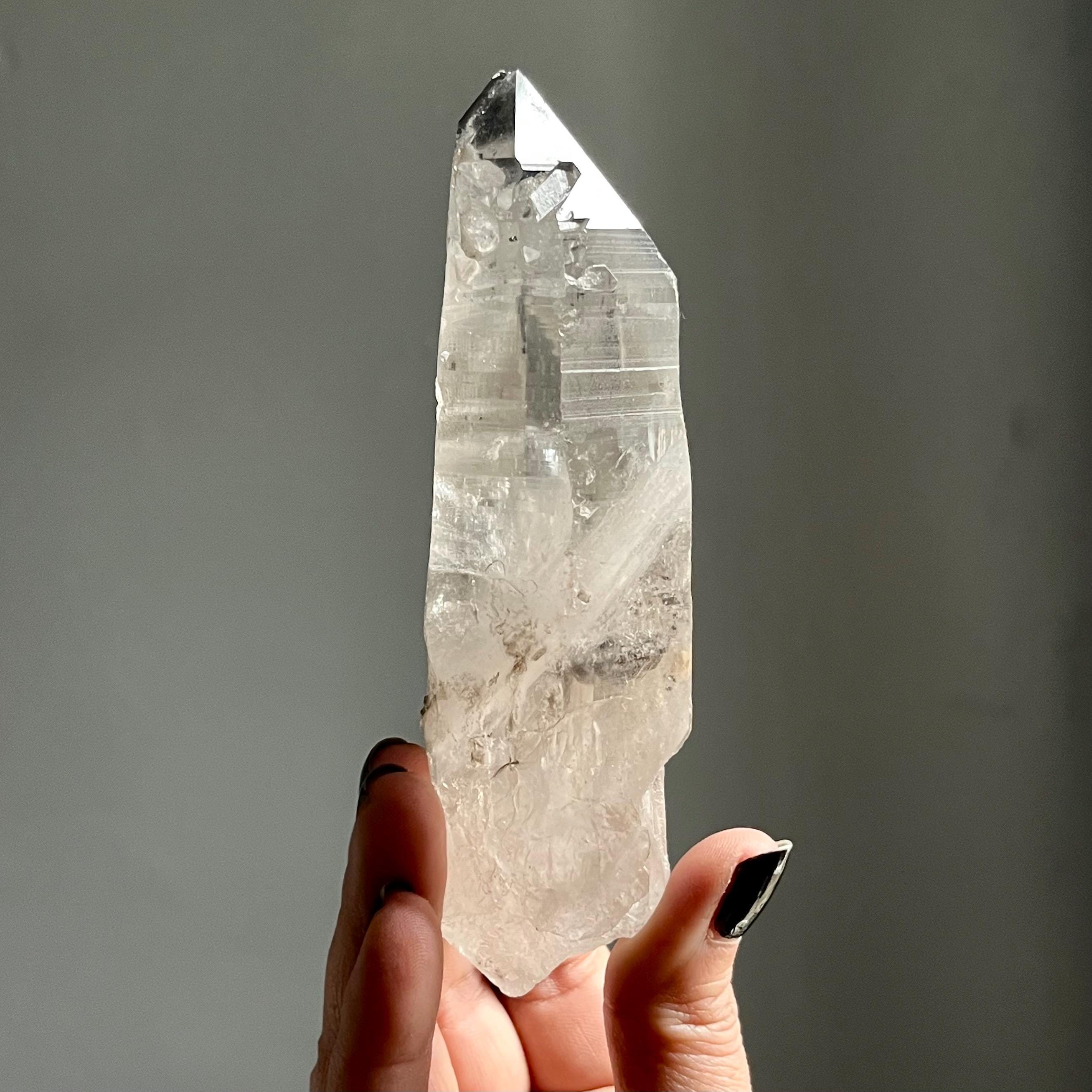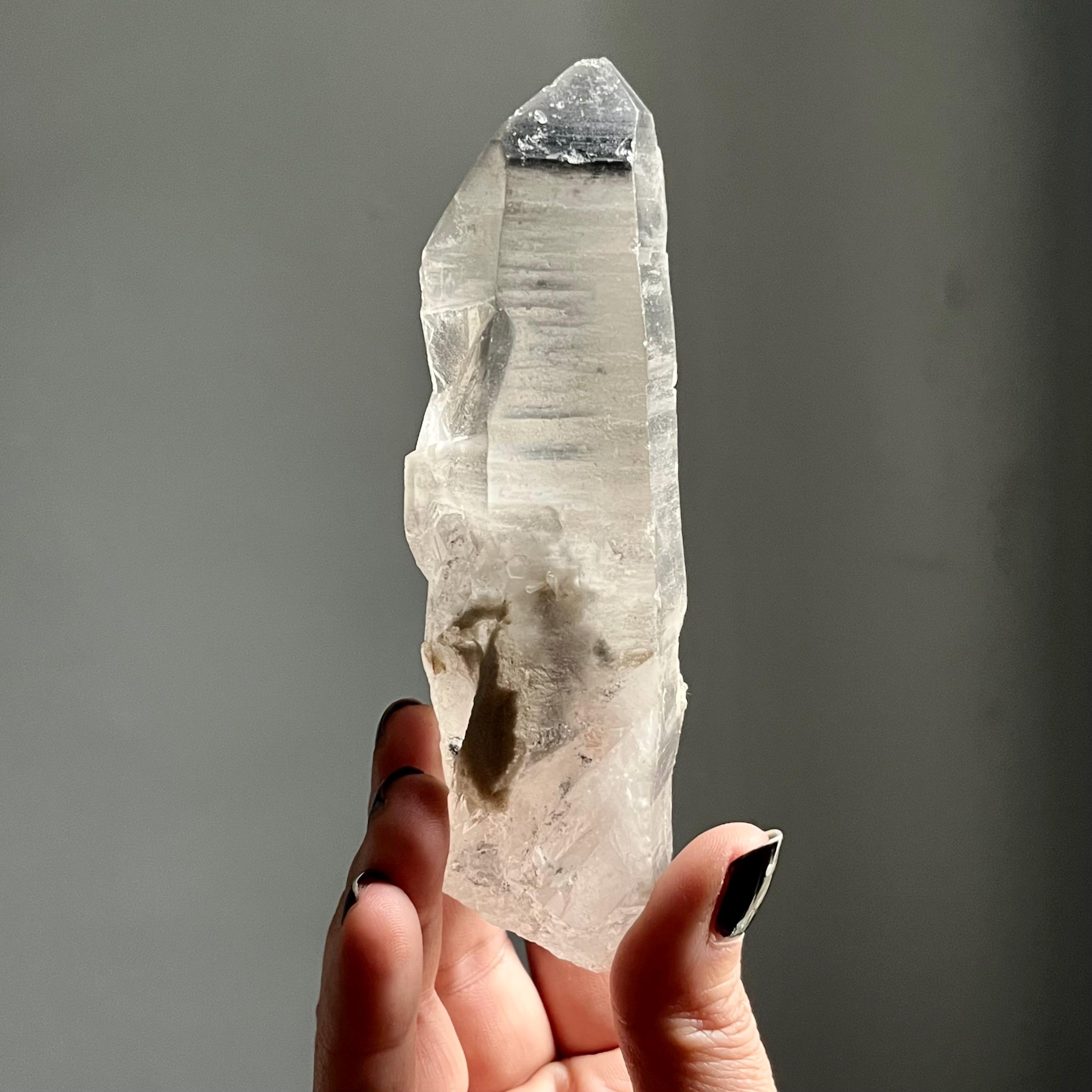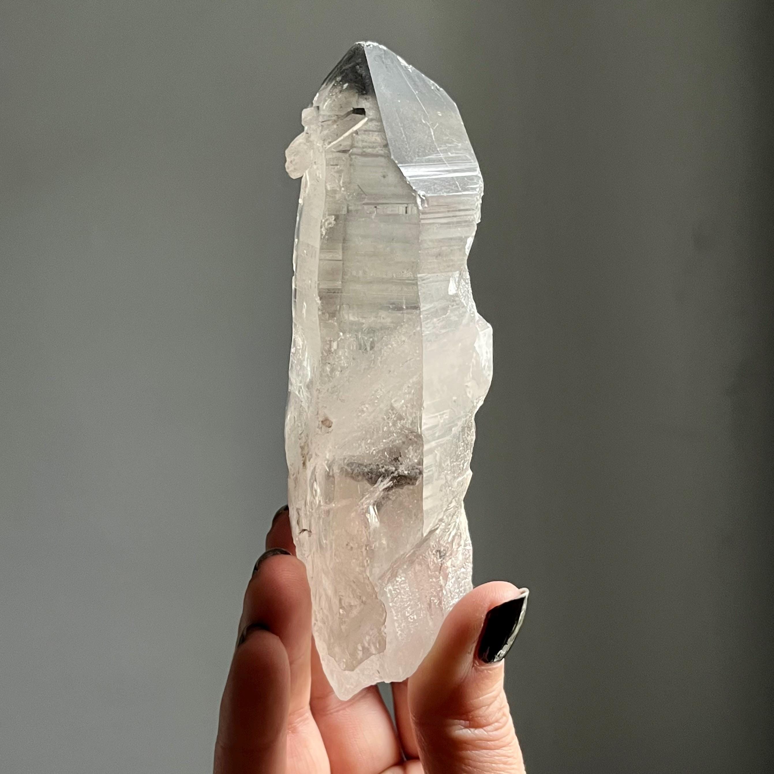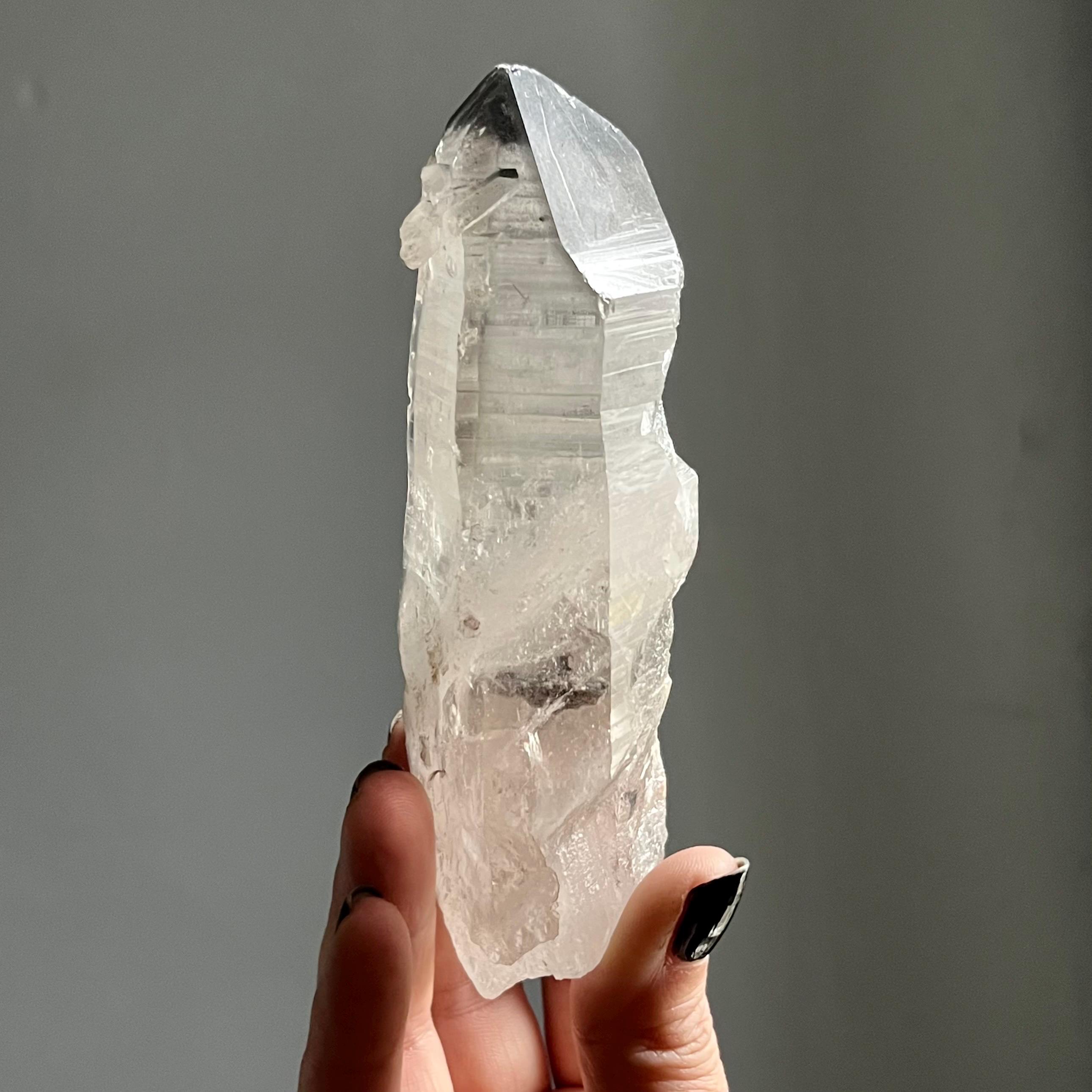 Almost five and a half inches long, this master self healed crystal is naturally curved.