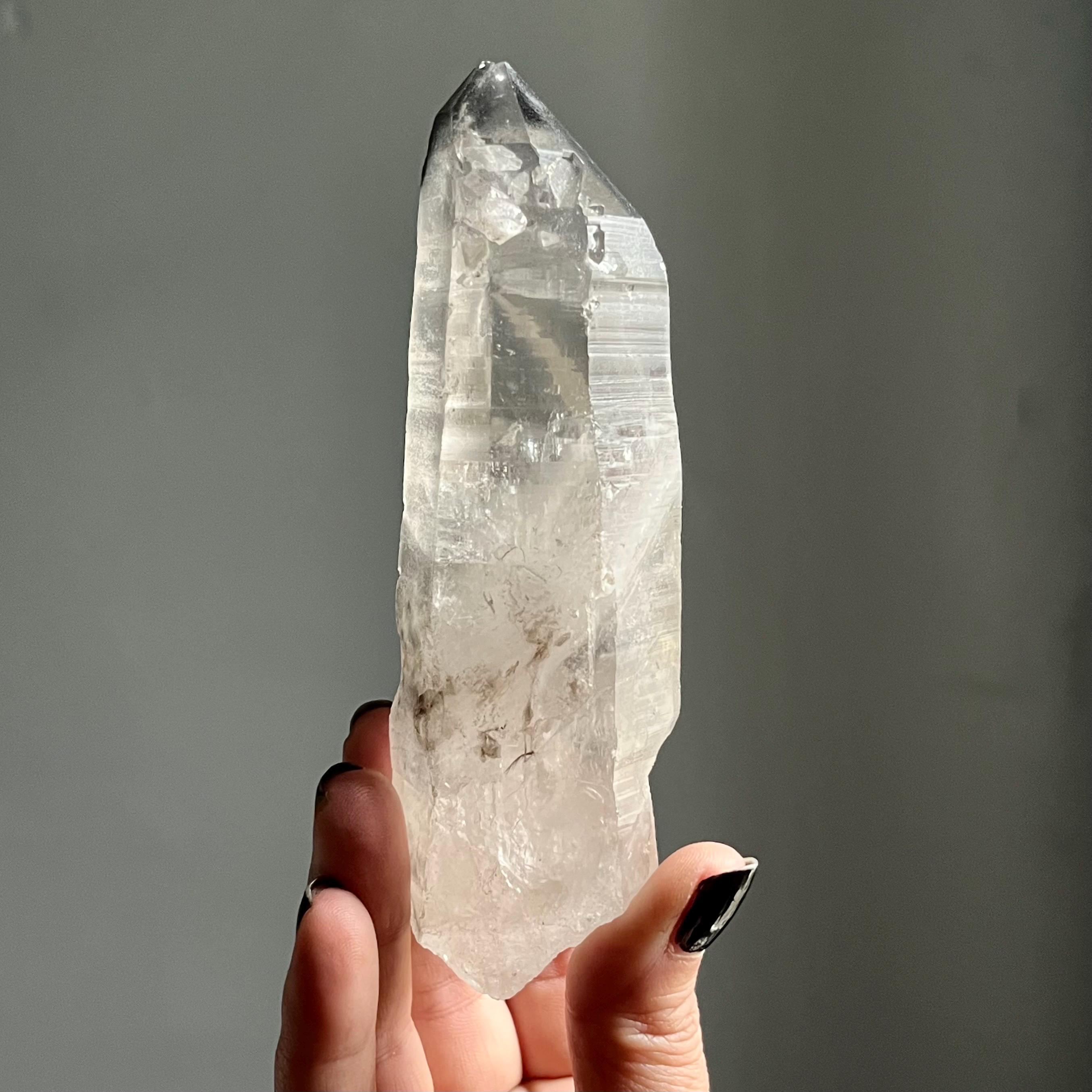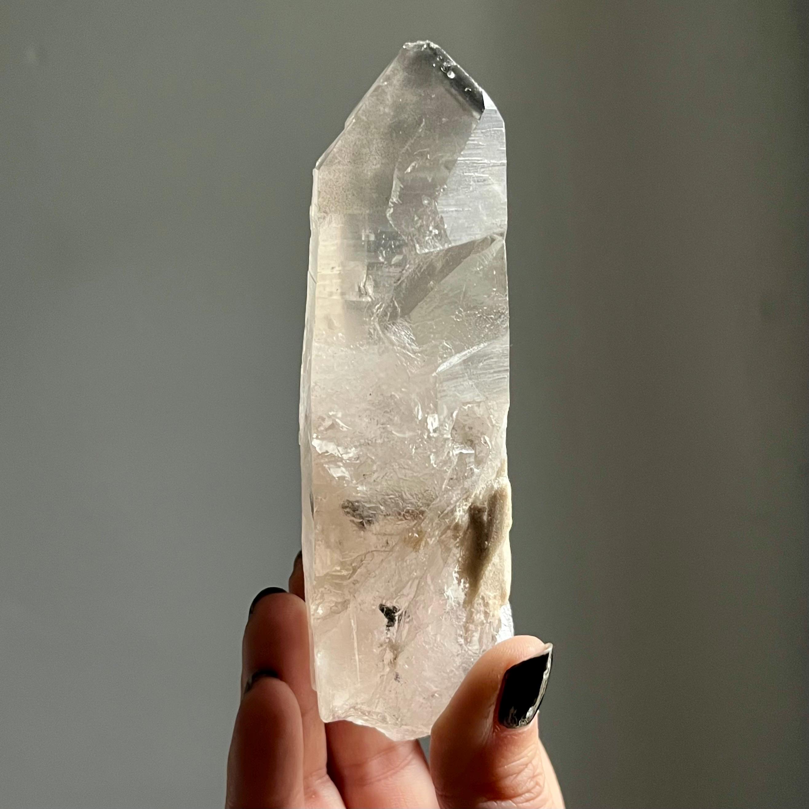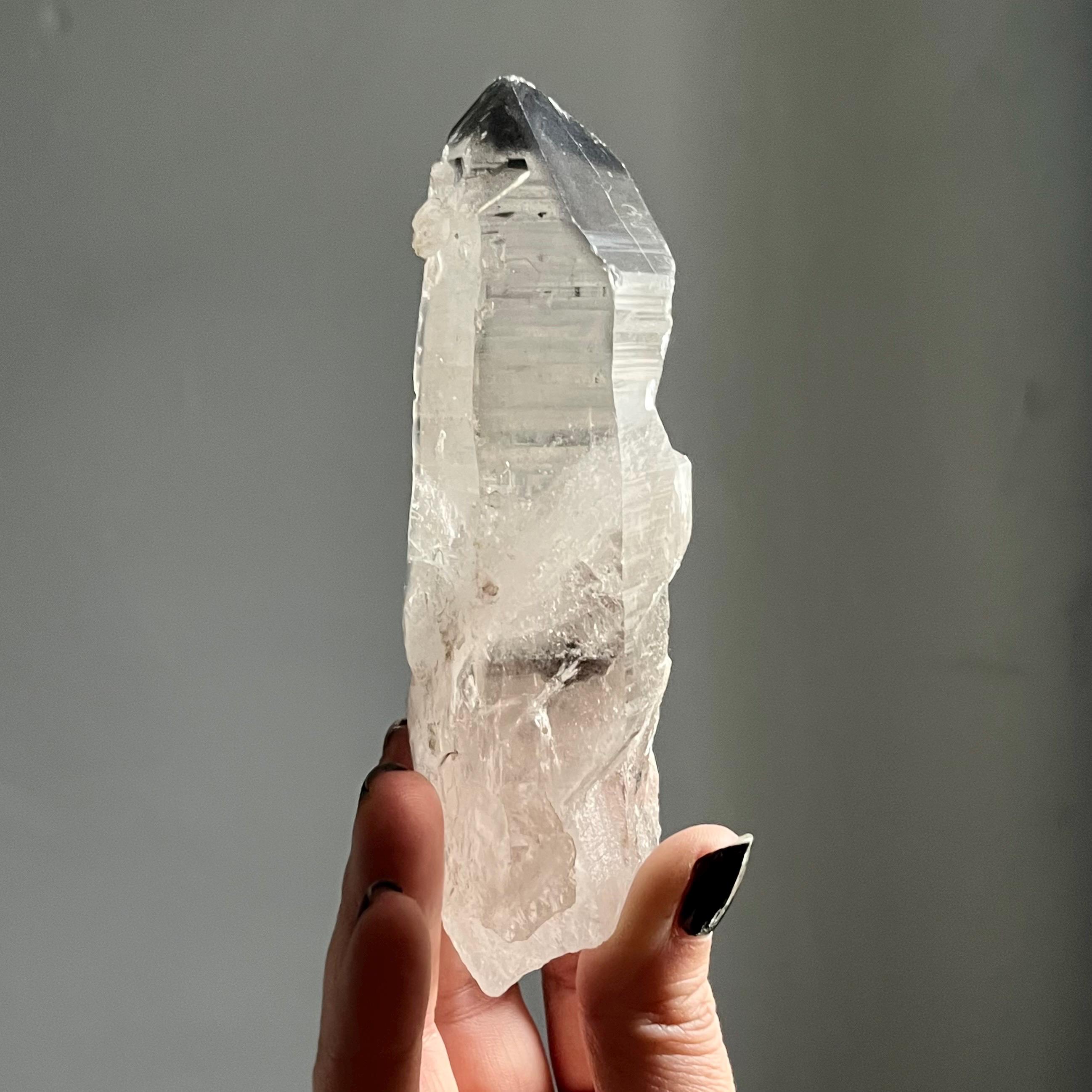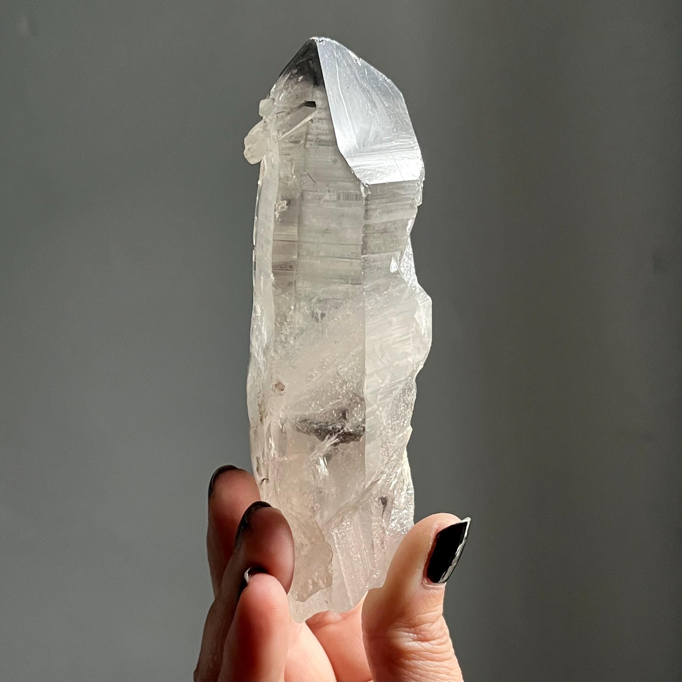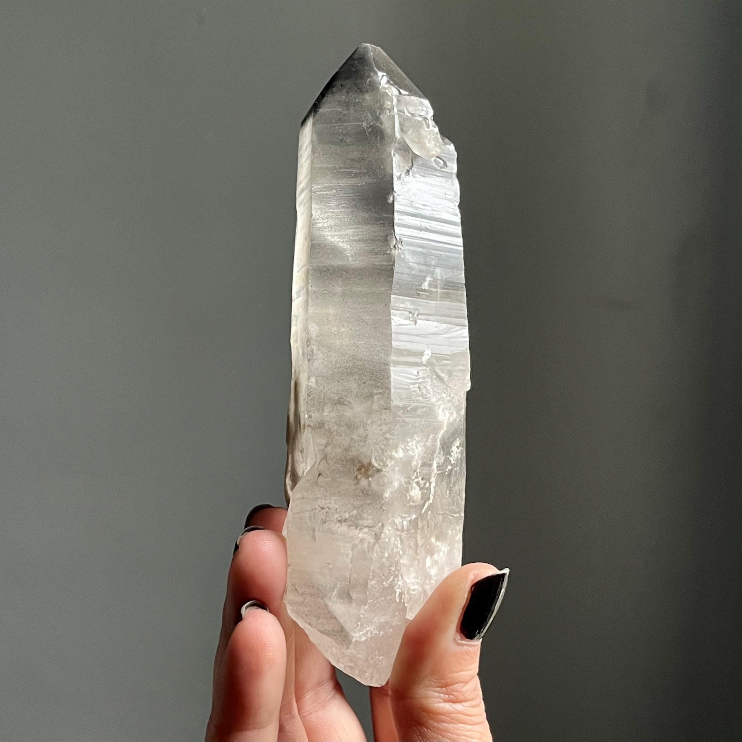 Almost five and a half inches long, this master self healed crystal is naturally curved.